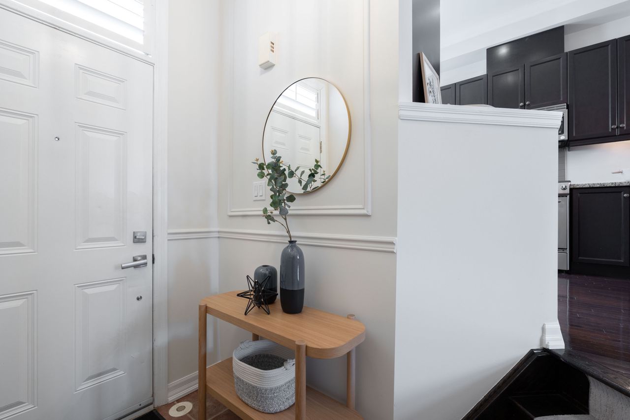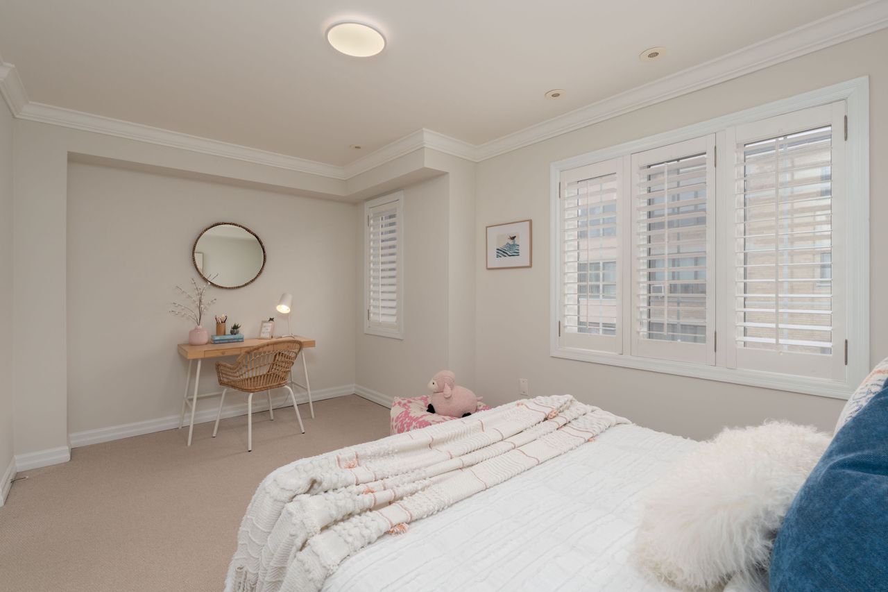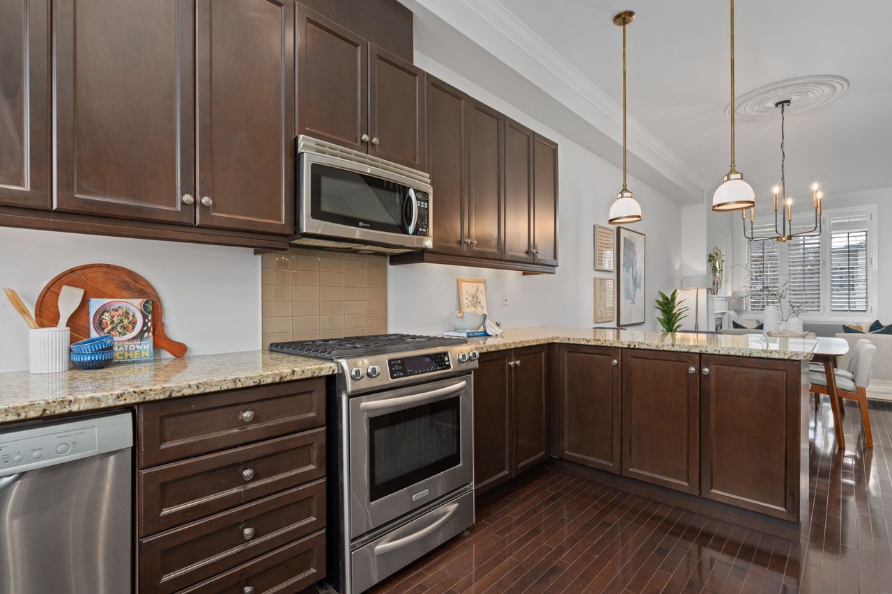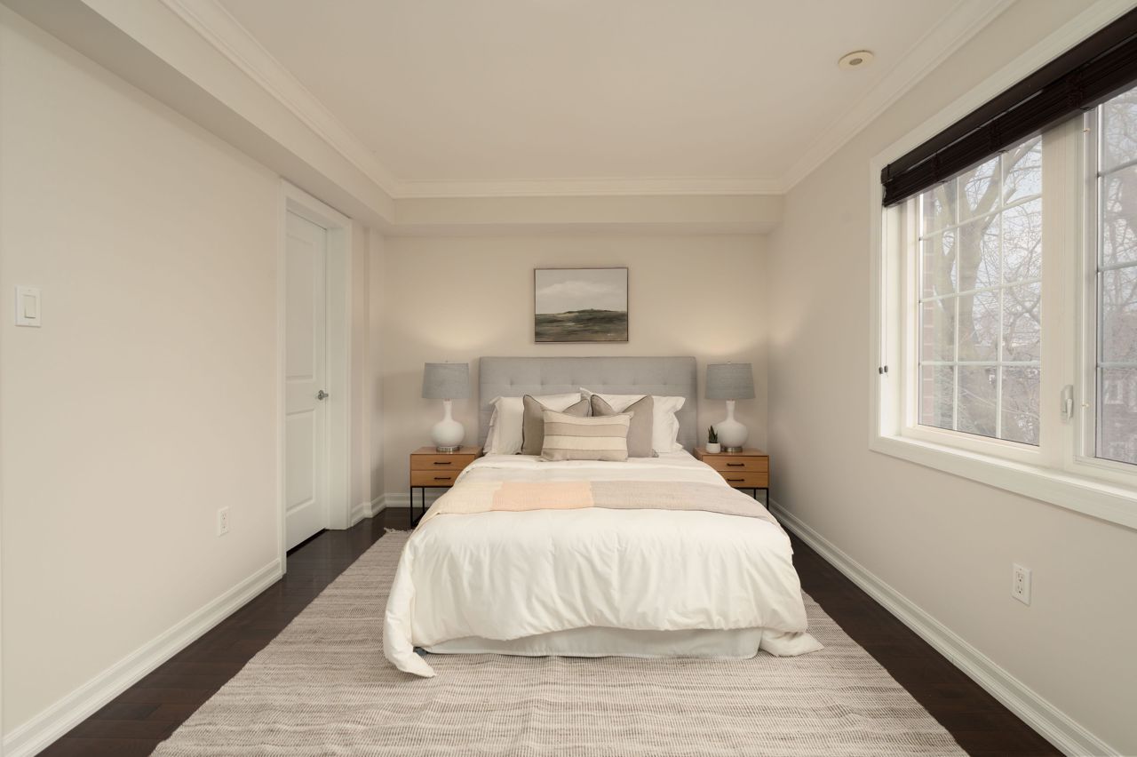 优雅且罕有的乔治亚风格三卧室永久产权联排别墅,隐匿于城市最令人向往的隐秘街区之一。近2000平方英尺的时尚实用生活空间分布于四层,明亮清新的粉刷贯穿始终。主层以10英尺挑高天花板、硬木地板、定制嵌入式家具和沐浴自然光的燃气壁炉尽显惊艳。超大厨房配置齐全:花岗岩台面、不锈钢电器、充足储物空间和实用的早餐吧台。顶层主卧套房是您的私密避世所,配有步入式衣帽间、豪华套间浴室以及可俯瞰树冠的阳台。另有两间宽敞卧室均配备步入式衣帽间,二层另设全套浴室和洗衣区。底层娱乐室、化妆间与直通车库的设计尽显便利。后院?私属露台庭院配有阶梯式娱乐空间和低维护花园。新增即热式热水系统。毗邻皇后东街、公交枢纽、顶尖学府和滨海步道。无虚饰。纯格调。