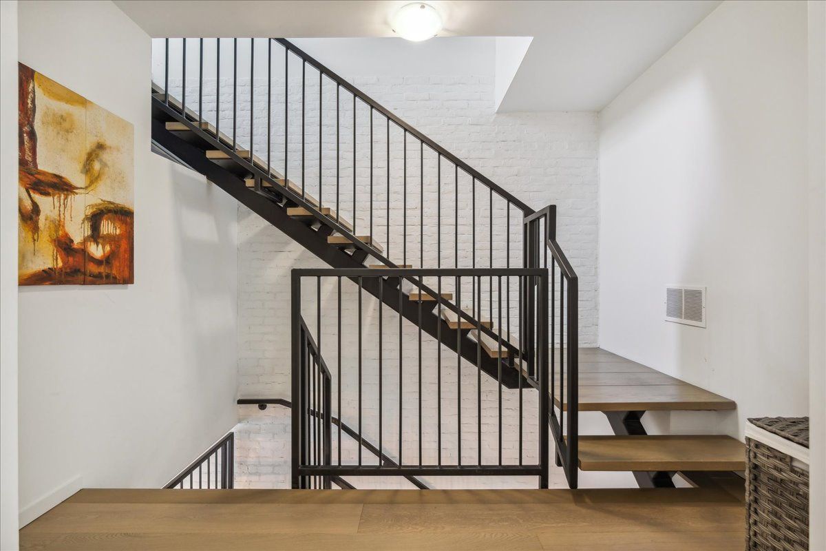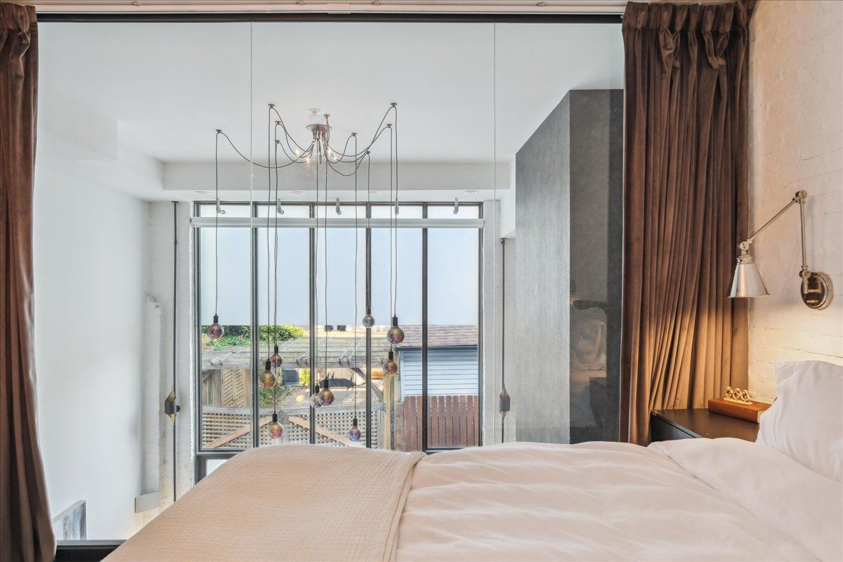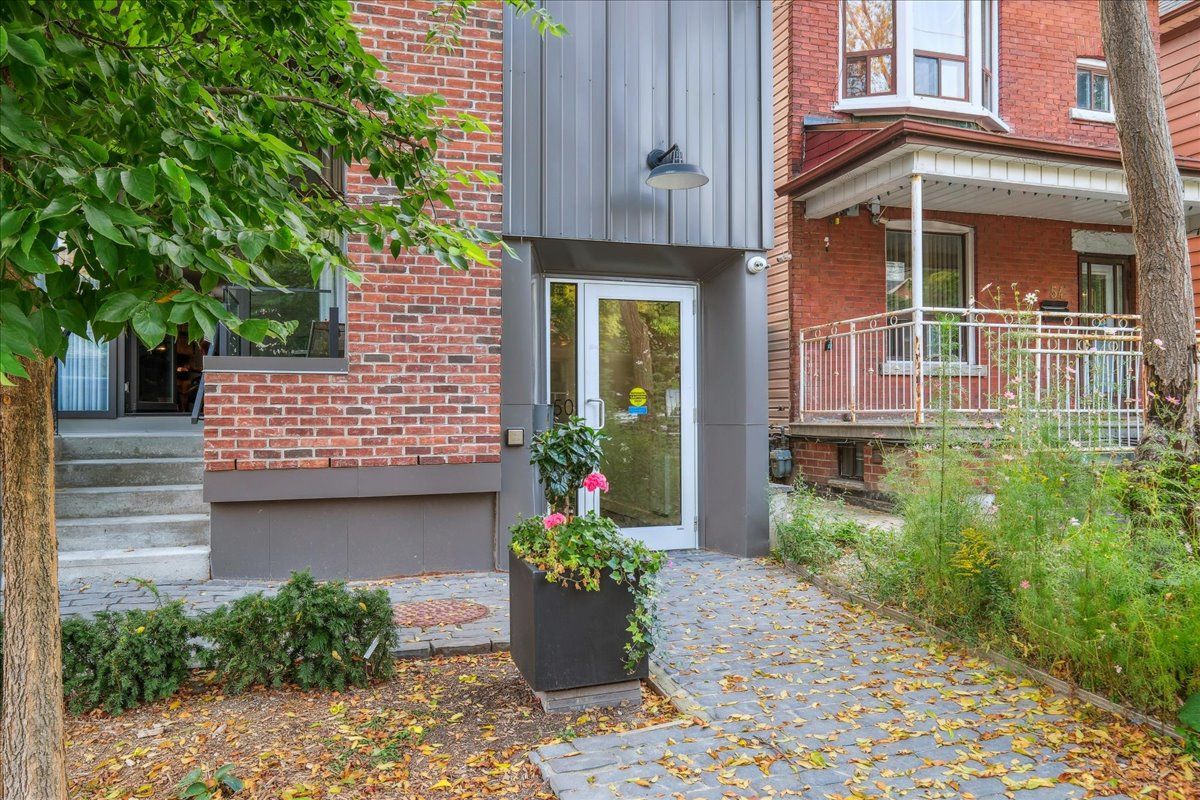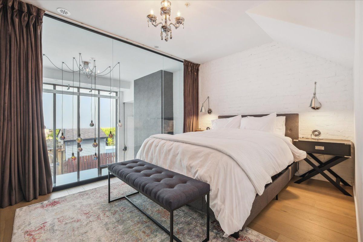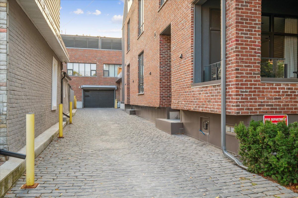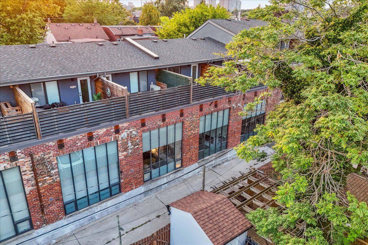 Welcome to the breathtaking and historic Lanehouse on Bartlett Avenue! Originally a yarn factory, this unique building was thoughtfully transformed in 2016 into 13 loft-style townhomes, blending modern luxury with its rich heritage. Lanehouse proudly preserves its industrial roots with an all-brick facade, a charming cobblestone driveway leading to the parking garage, and striking architectural details like 18-foot vaulted ceilings, expansive windows, exposed brick, and skylights. The heated stone floors and glass feature walls further enhance the sense of openness, creating a bright, airy space filled with natural light. Townhouse 8 is an exceptional residence spanning over 1,700 square feet across three levels, featuring soaring 18-foot vaulted ceilings, expansive windows and a striking fireplace - bold and captivating, it features a uniquely textured fabric that adds both visual and tactile interest and is beautifully framed with custom shelves. The open-concept layout showcases a sleek, chef-inspired kitchen with integrated appliances and a central island, seamlessly flowing into the spacious dining area and living room. An impressive staircase leads to the second level, where the entire floor is dedicated to the primary suite, complete with a dramatic glass wall overlooking the living area, a skylight, and beautiful east views. The suite is complemented by custom built-in closets and a luxurious 4-piece spa-like bathroom. On the third level, you'll find a generous queen-sized second bedroom with an ensuite bathroom, built-in closets, and a convenient laundry area, along with direct access to a private deck. This home also includes one stacked parking space, making it an urban oasis perfect for modern living.Steps to Bloor Street, transit, area parks, restaurants and cafes - this is where you want to live!