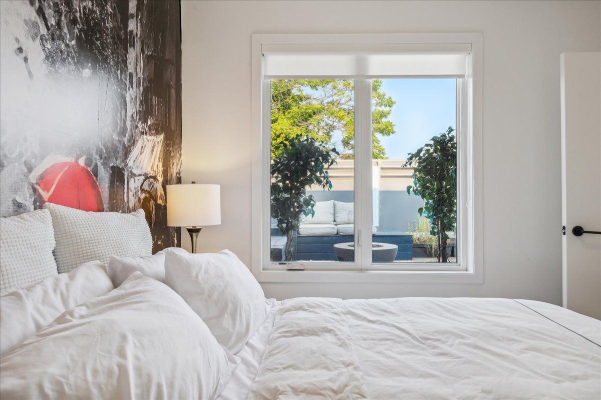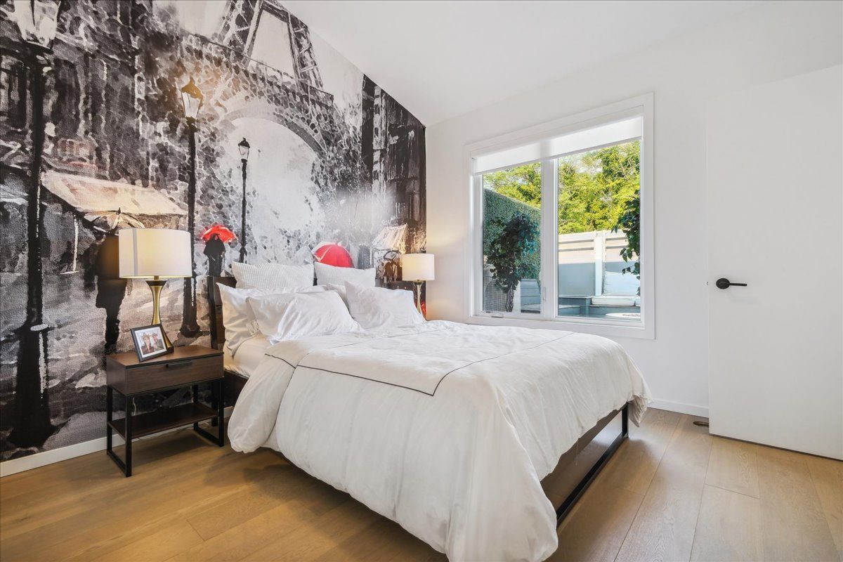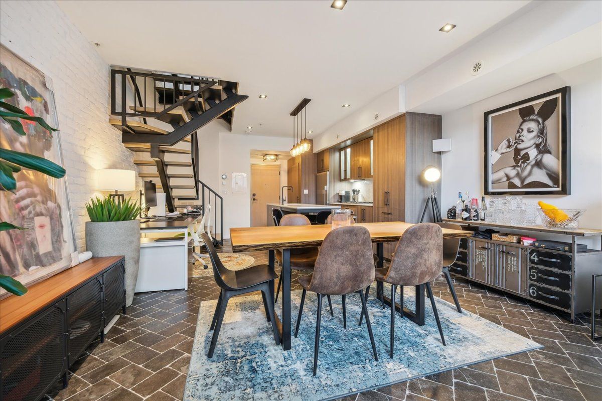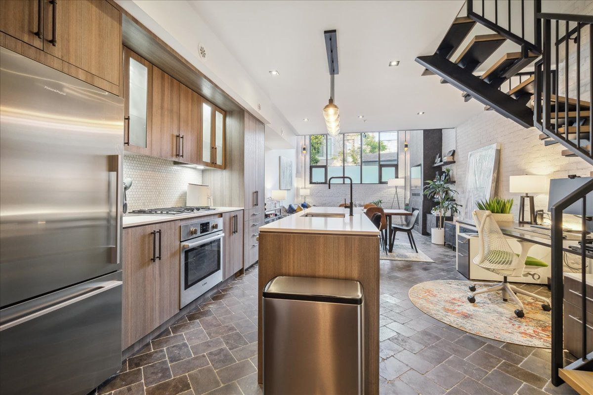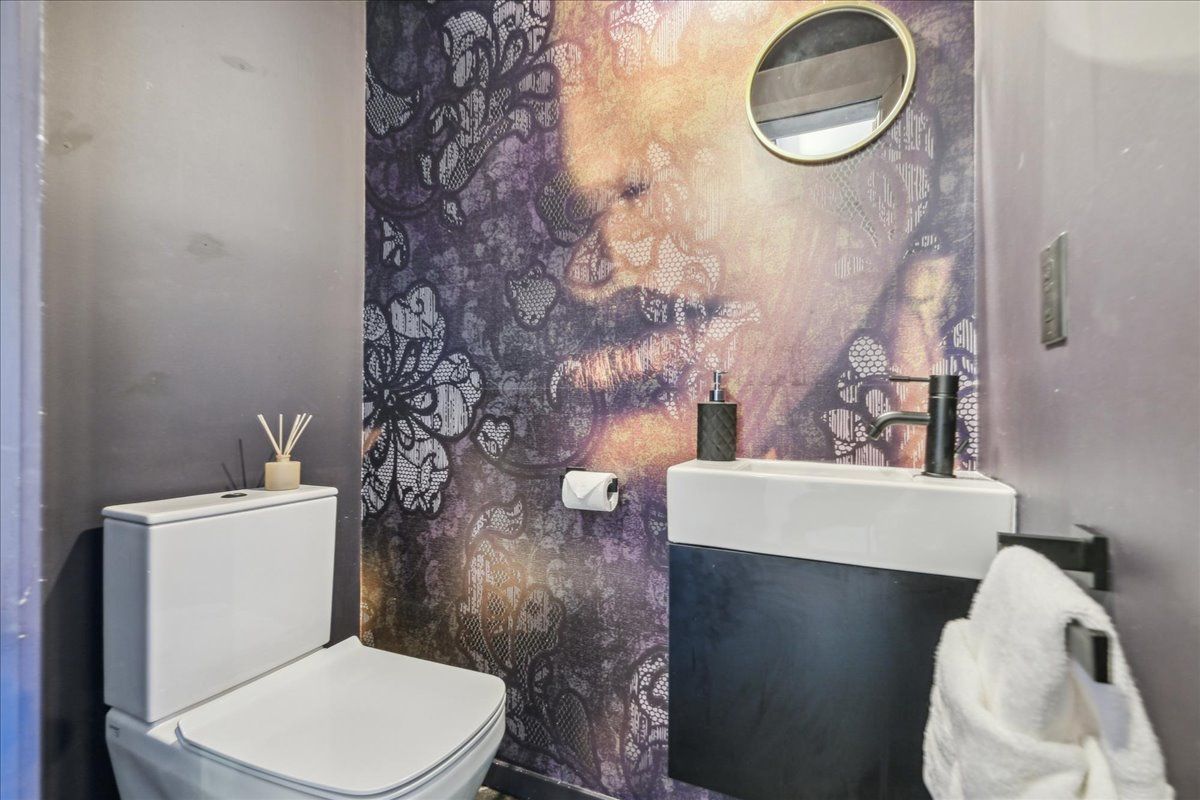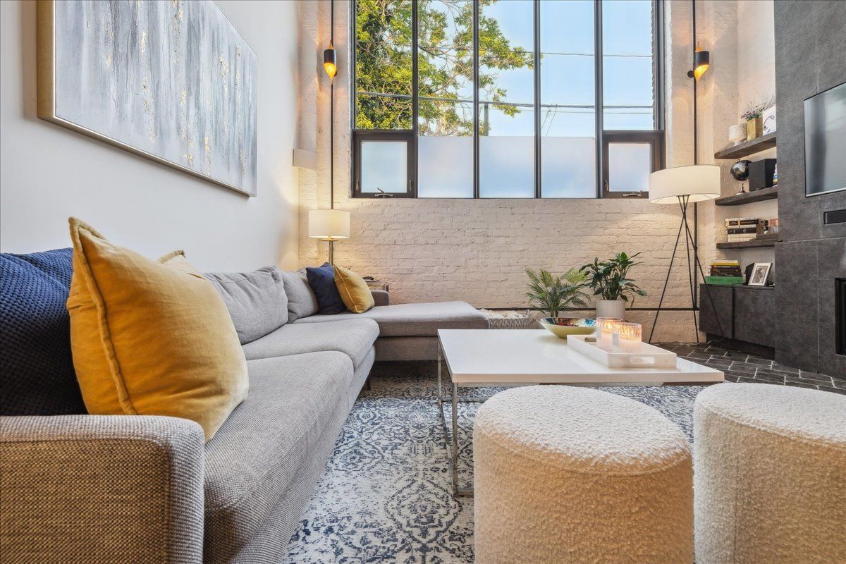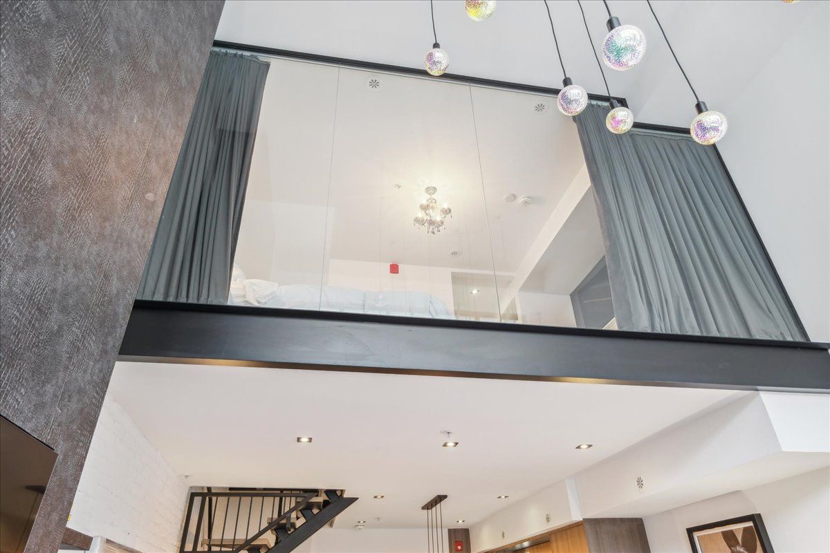 Welcome to the breathtaking and historic Lanehouse on Bartlett Avenue! Originally a yarn factory, this unique building was thoughtfully transformed in 2016 into 13 loft-style townhomes, blending modern luxury with its rich heritage. Lanehouse proudly preserves its industrial roots with an all-brick facade, a charming cobblestone driveway leading to the parking garage, and striking architectural details like 18-foot vaulted ceilings, expansive windows, exposed brick, and skylights. The heated stone floors and glass feature walls further enhance the sense of openness, creating a bright, airy space filled with natural light. Townhouse 8 is an exceptional residence spanning over 1,700 square feet across three levels, featuring soaring 18-foot vaulted ceilings, expansive windows and a striking fireplace - bold and captivating, it features a uniquely textured fabric that adds both visual and tactile interest and is beautifully framed with custom shelves. The open-concept layout showcases a sleek, chef-inspired kitchen with integrated appliances and a central island, seamlessly flowing into the spacious dining area and living room. An impressive staircase leads to the second level, where the entire floor is dedicated to the primary suite, complete with a dramatic glass wall overlooking the living area, a skylight, and beautiful east views. The suite is complemented by custom built-in closets and a luxurious 4-piece spa-like bathroom. On the third level, you'll find a generous queen-sized second bedroom with an ensuite bathroom, built-in closets, and a convenient laundry area, along with direct access to a private deck. This home also includes one stacked parking space, making it an urban oasis perfect for modern living.Steps to Bloor Street, transit, area parks, restaurants and cafes - this is where you want to live!
