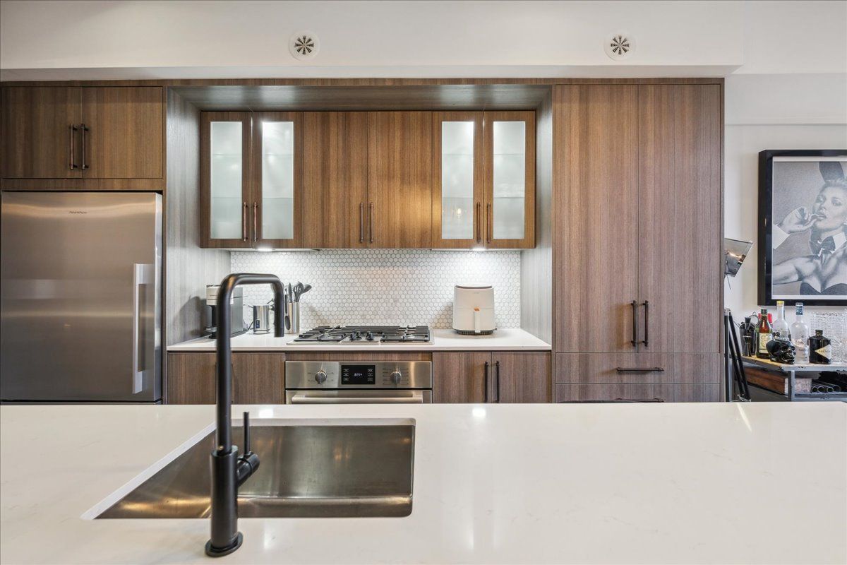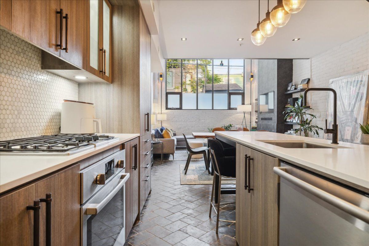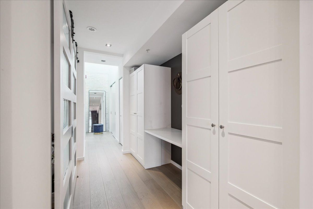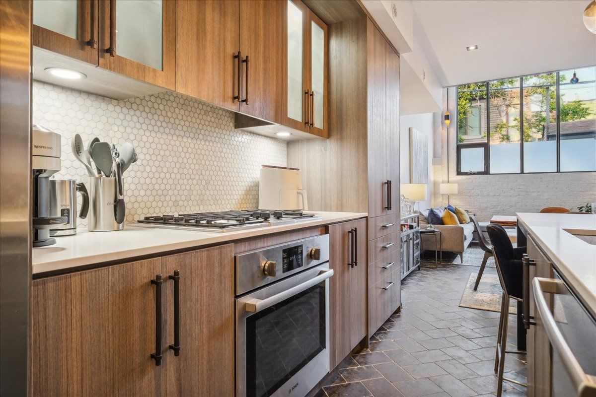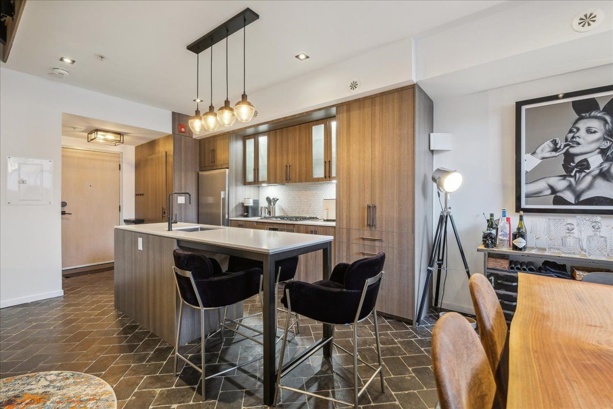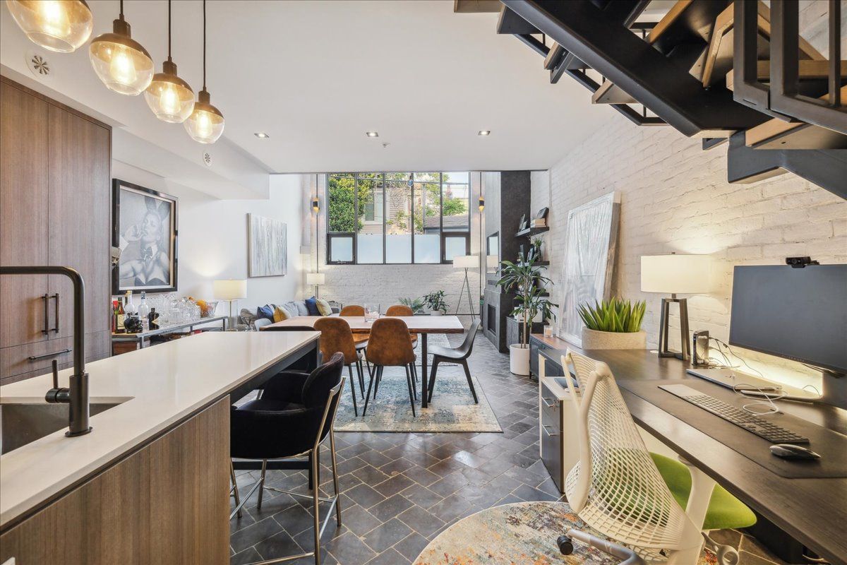 Welcome to the breathtaking and historic Lanehouse on Bartlett Avenue! Originally a yarn factory, this unique building was thoughtfully transformed in 2016 into 13 loft-style townhomes, blending modern luxury with its rich heritage. Lanehouse proudly preserves its industrial roots with an all-brick facade, a charming cobblestone driveway leading to the parking garage, and striking architectural details like 18-foot vaulted ceilings, expansive windows, exposed brick, and skylights. The heated stone floors and glass feature walls further enhance the sense of openness, creating a bright, airy space filled with natural light. Townhouse 8 is an exceptional residence spanning over 1,700 square feet across three levels, featuring soaring 18-foot vaulted ceilings, expansive windows and a striking fireplace - bold and captivating, it features a uniquely textured fabric that adds both visual and tactile interest and is beautifully framed with custom shelves. The open-concept layout showcases a sleek, chef-inspired kitchen with integrated appliances and a central island, seamlessly flowing into the spacious dining area and living room. An impressive staircase leads to the second level, where the entire floor is dedicated to the primary suite, complete with a dramatic glass wall overlooking the living area, a skylight, and beautiful east views. The suite is complemented by custom built-in closets and a luxurious 4-piece spa-like bathroom. On the third level, you'll find a generous queen-sized second bedroom with an ensuite bathroom, built-in closets, and a convenient laundry area, along with direct access to a private deck. This home also includes one stacked parking space, making it an urban oasis perfect for modern living.Steps to Bloor Street, transit, area parks, restaurants and cafes - this is where you want to live!