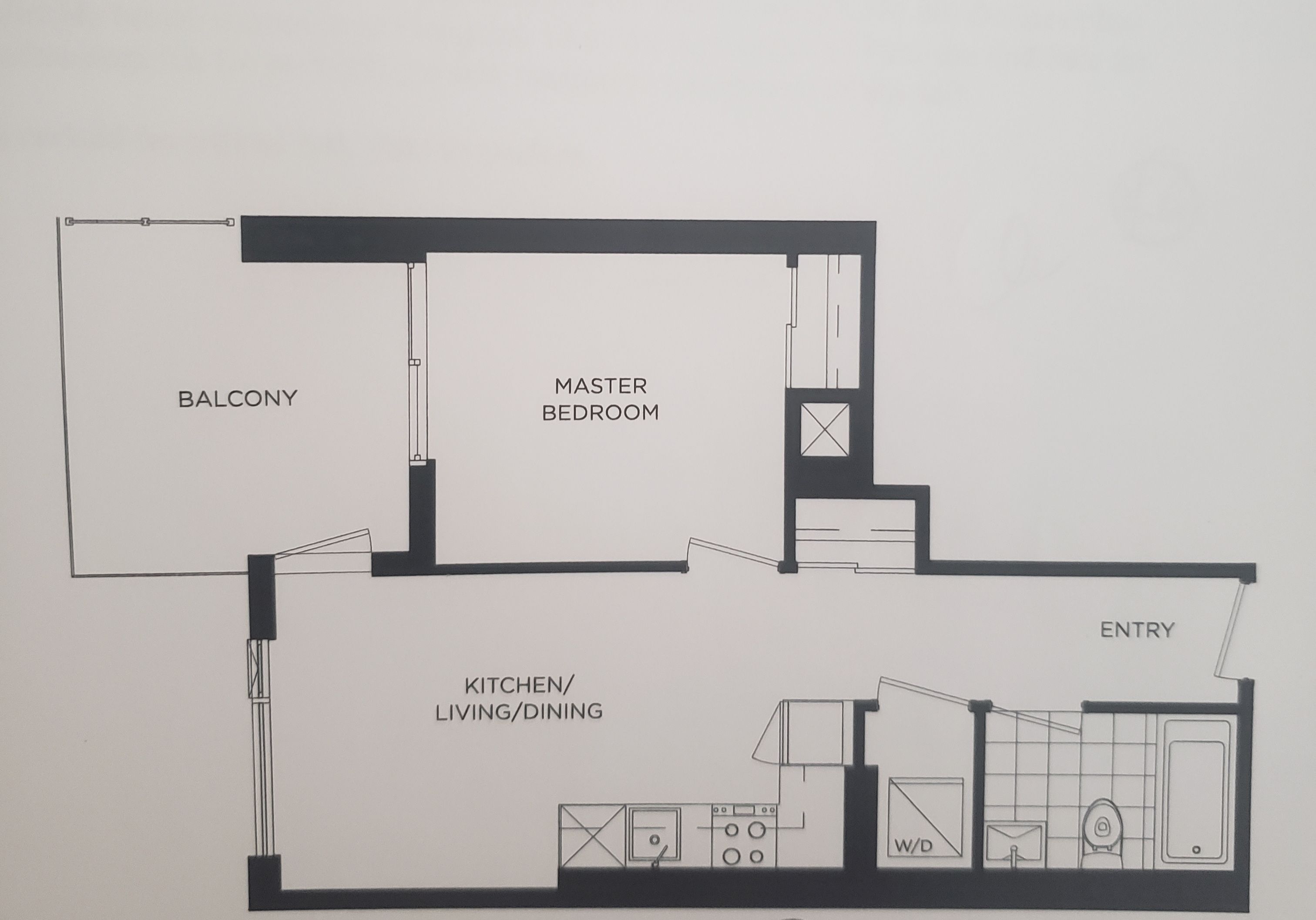 Rent from floorplan sunny west facing Clark Model one bedroom 487 sq ft per builders plan plus balcony. One parking spot and one locker included Shops at Don Mills condos phase 1, building and amenities under construction. Builder keys to landlord October 6, ready for tenant occupancy Oct 15 - Nov 1, overlooks the park from the balcony looking south, new never lived in unit with walkouts from the living and bedroom.Roller blinds, fridge, stove cooktop, dishwasher, microwave, washer and dryer, one parking spot and one locker. ( Tenant pays hydro ).