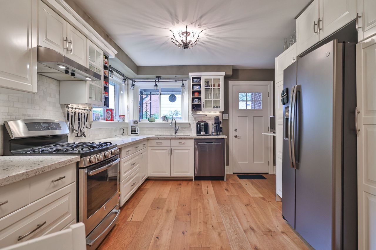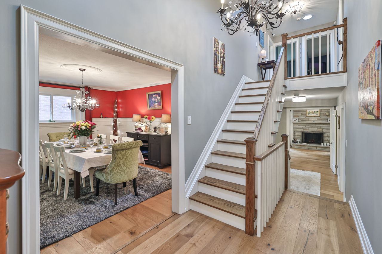 Must See. Surprising unique updated enormous 4 level backsplit home.Possible multi-family home. 4-separate entrances. Main hallway to 2nd Fl w/ 4- skylight tubes, abundance of natural light & energy savings. Oak staircase, hardwood floor thru out. Heated floors in three bathrooms. Family room features Sound insulation ceiling, Built-In Wet Bar, & W/O to Yard, perfect for entertaining. Electric fireplace in Family room, can be converted to gas fire place. Lot of storage thru out the home. Lower Floor Laundry & bsmt laundry rough in. Many upgrades too much to list.. pool size Beautifully landscape back yard oasis, cottage feel in the city. Newer attic blown insulation, roof (2020), force air furnace (2015). 65 Gallons High Efficiency Gas Hot Water Tank Owned (2015). Updated electrical wiring & Pot Lights through-out bsmt (2015). Garage has huge storage loft. Hard wired security system w/ 3-panels monitor, rough in for extra panel. Lots of storage space thru out . SECUITY SYSTEM monitoredLG Gas Stove, Black Stainless Steel Double Door Fridge, Built-In Dishwasher, LG Washer & Dryer, Two Existing Fan In Family Room, One Existing Fan In 4th Bedroom, All Existing Window Coverings, All Existing Electrical Light Fixtures