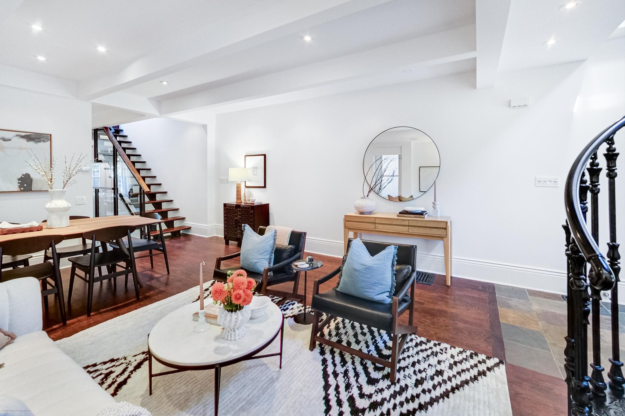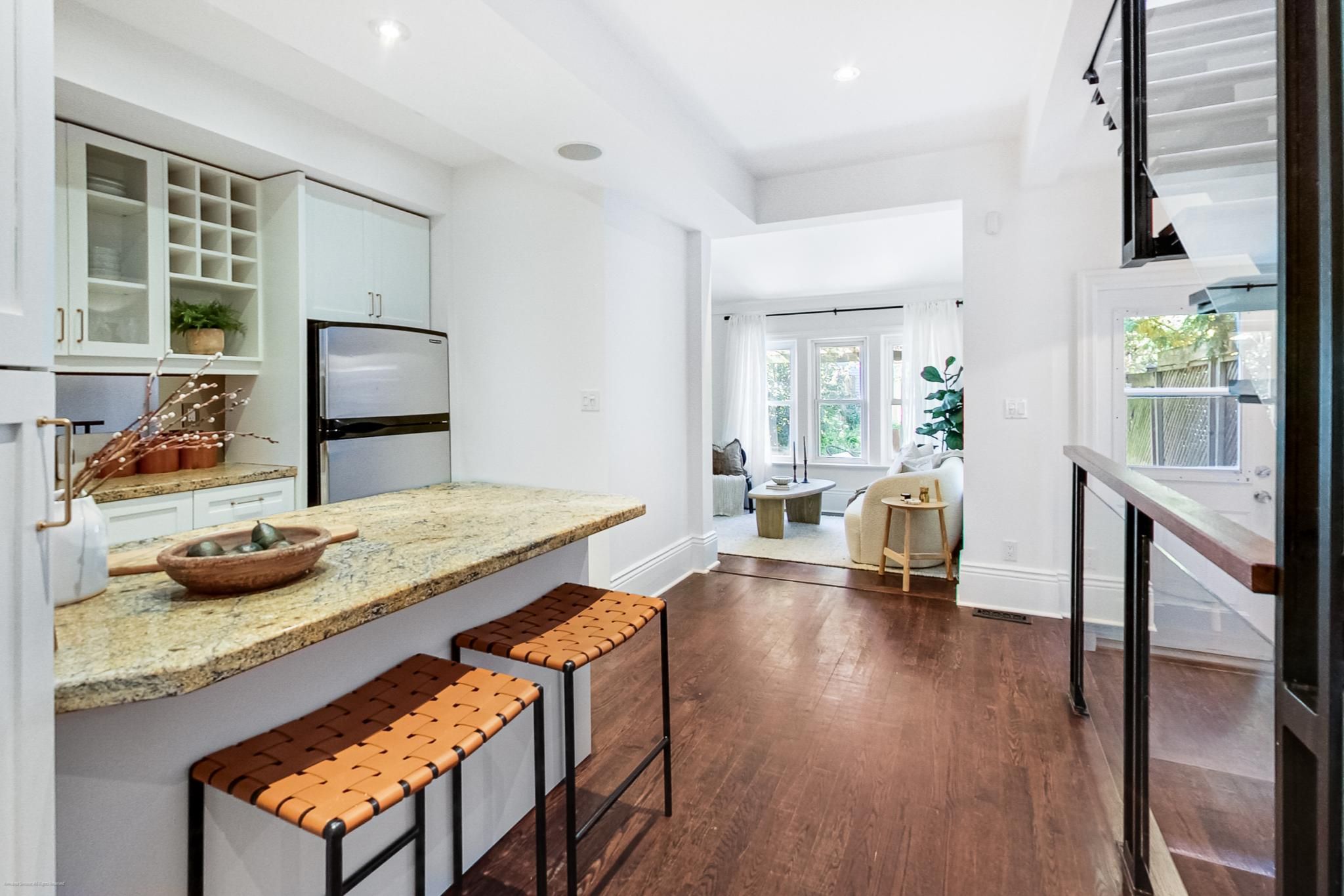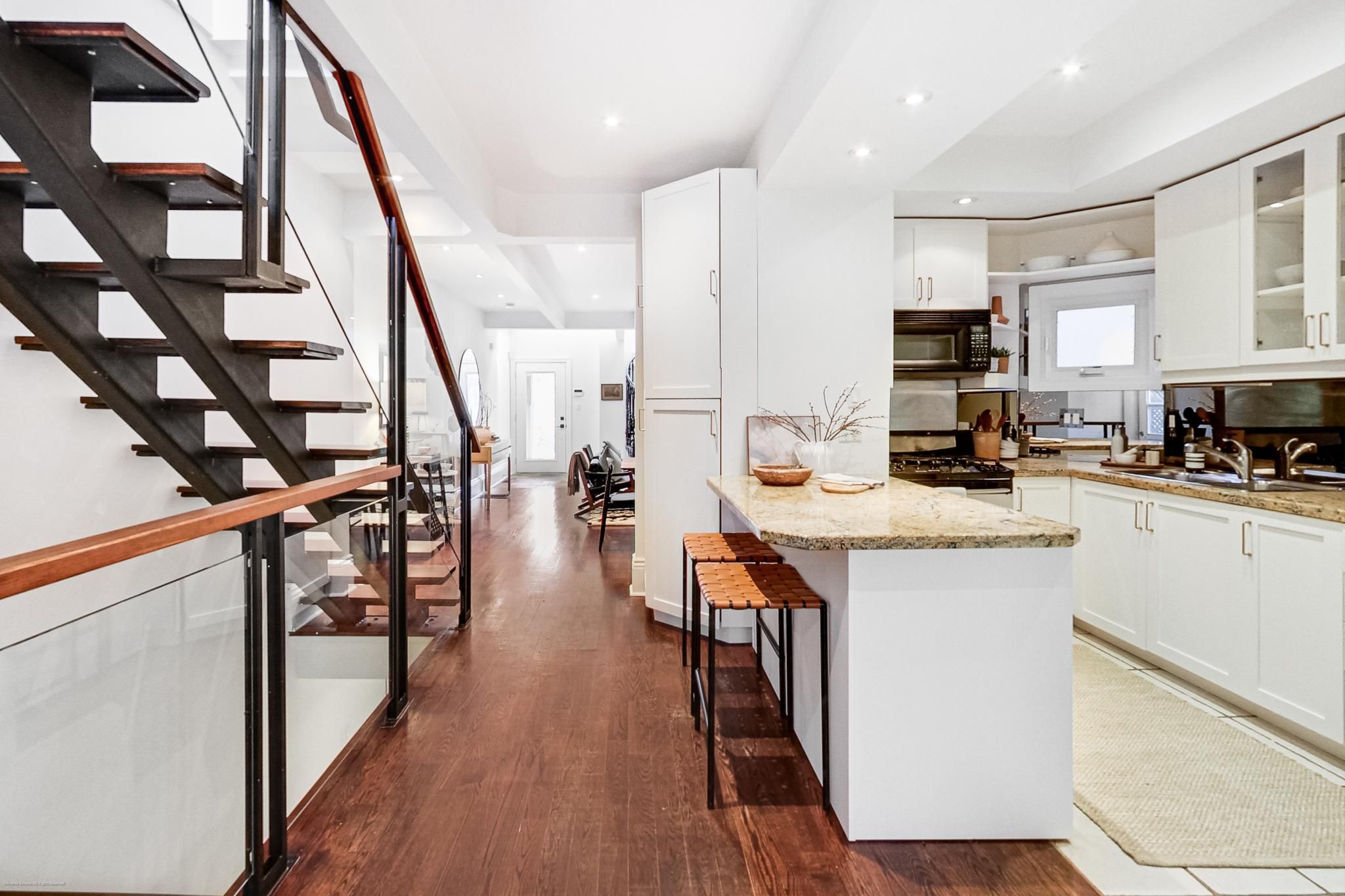 When ordinary simply won't do! - Eaton just can't be beaten! The epitome of Danforth living awaits - Super hip, ultra cool - finally something unique and different! It's hard to say what you will love the most - the open concept living and dining rooms, the family room overlooking the back garden with built-ins, the main floor powder room (!), the coolest iron spiral staircase (there's another one too) to the second floor, huge primary bedroom with walk-in closet, built-ins and semi-ensuite bathroom or the vaulted ceilings in the second bedroom (the one with the spiral staircase). Wait there's more....The separate entrance (from the front) to the finished basement creates loads of possibilities - in-law bachelor suite/work from home space complete with 3 piece bathroom and a brand new high efficiency furnace? Relax and escape the city vibes for a while in the lush, super deep (125 feet) back garden perfect for BBQ's and entertaining - complete with garden shed. Literally steps to the Pape Subway and future Ontario Line (currently being built) - soak up everything the Danforth has to offer - restaurants, shopping, easy access to downtown, great schools and parks. This is 'the one'!Offers welcome anytime! New high efficiency gas furnace (Sept. 2024), Internal Basement Waterproofing (Sept. 2024), New basement door (Oct. 2024) Roof (Oct. 2020)