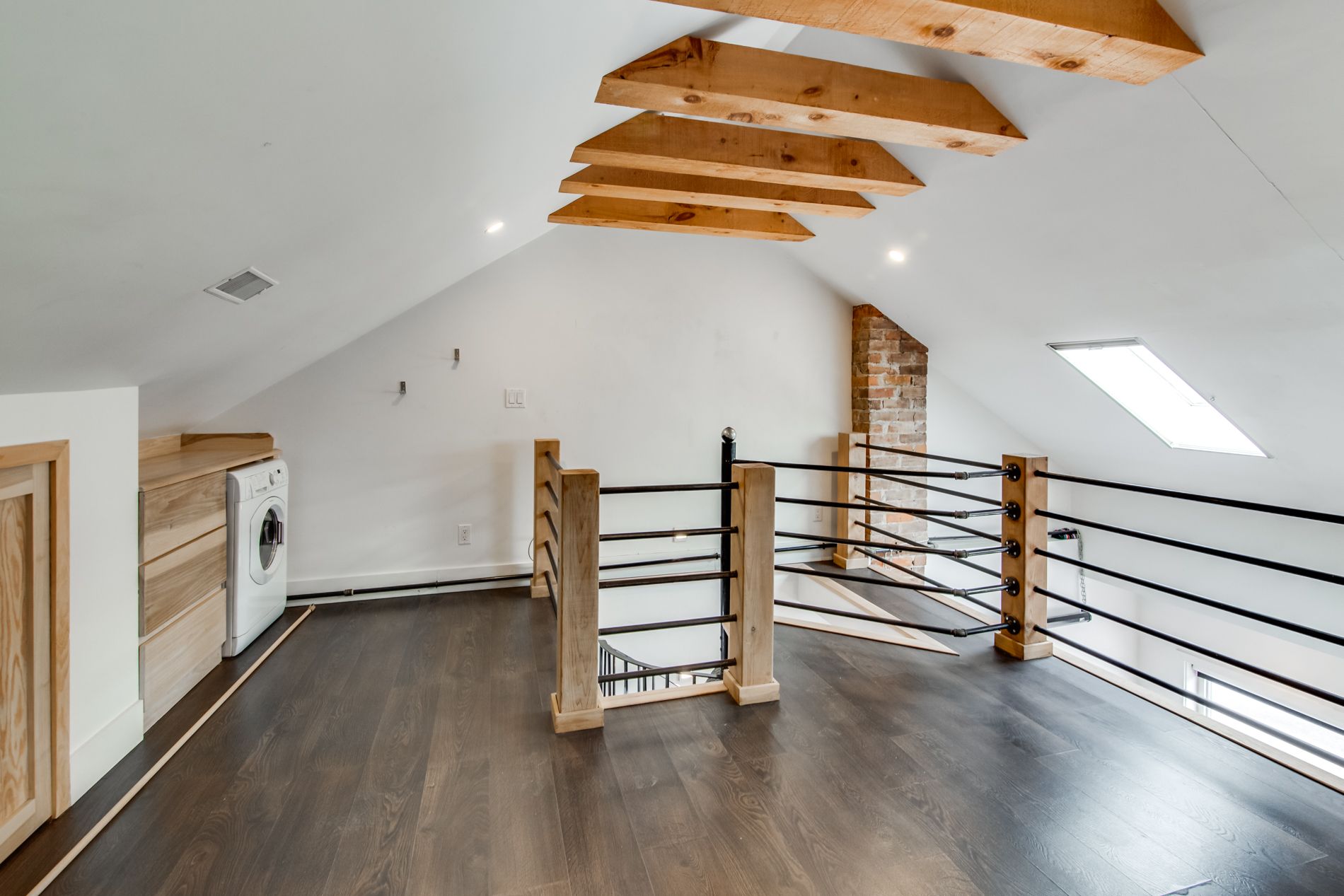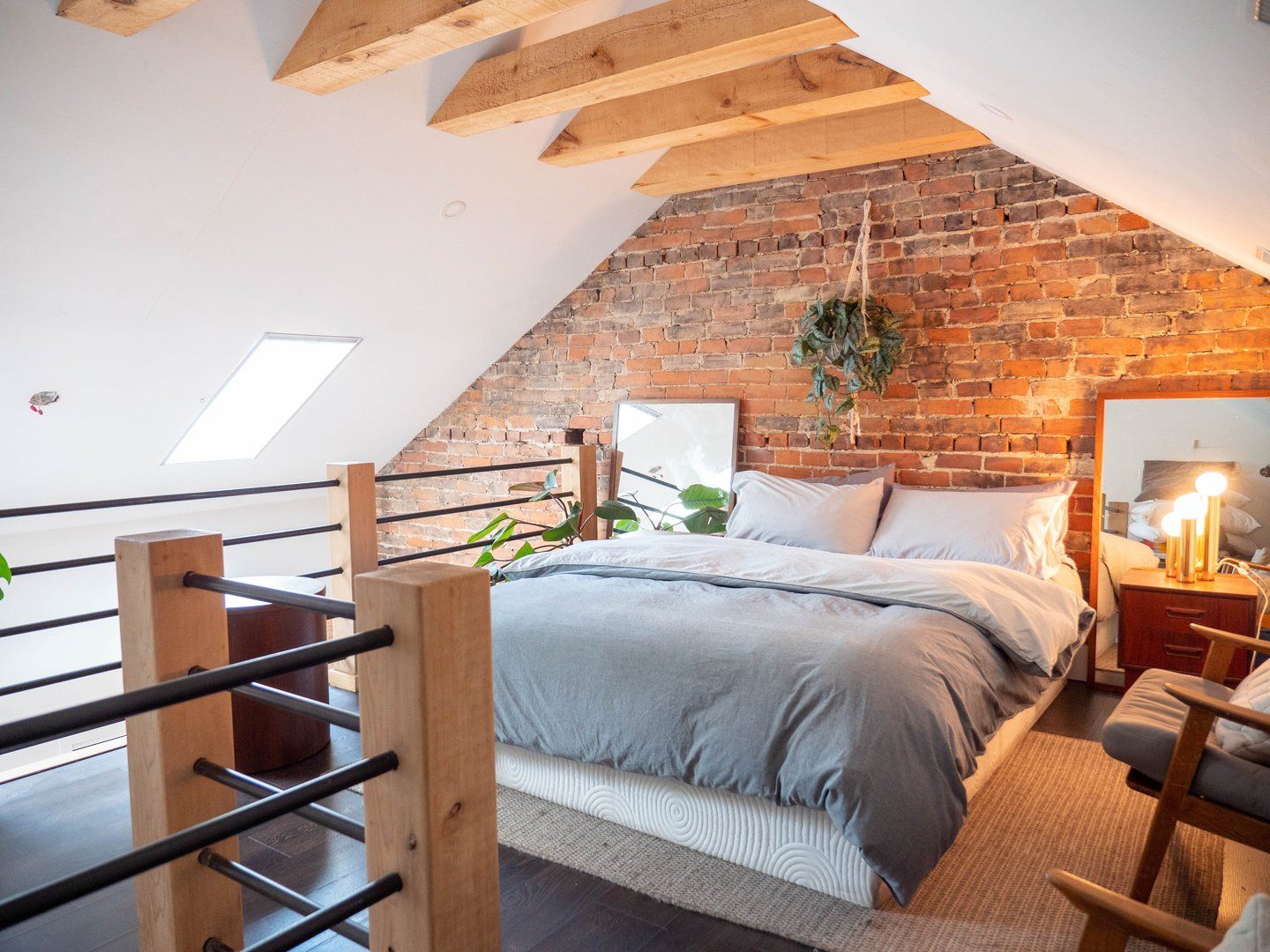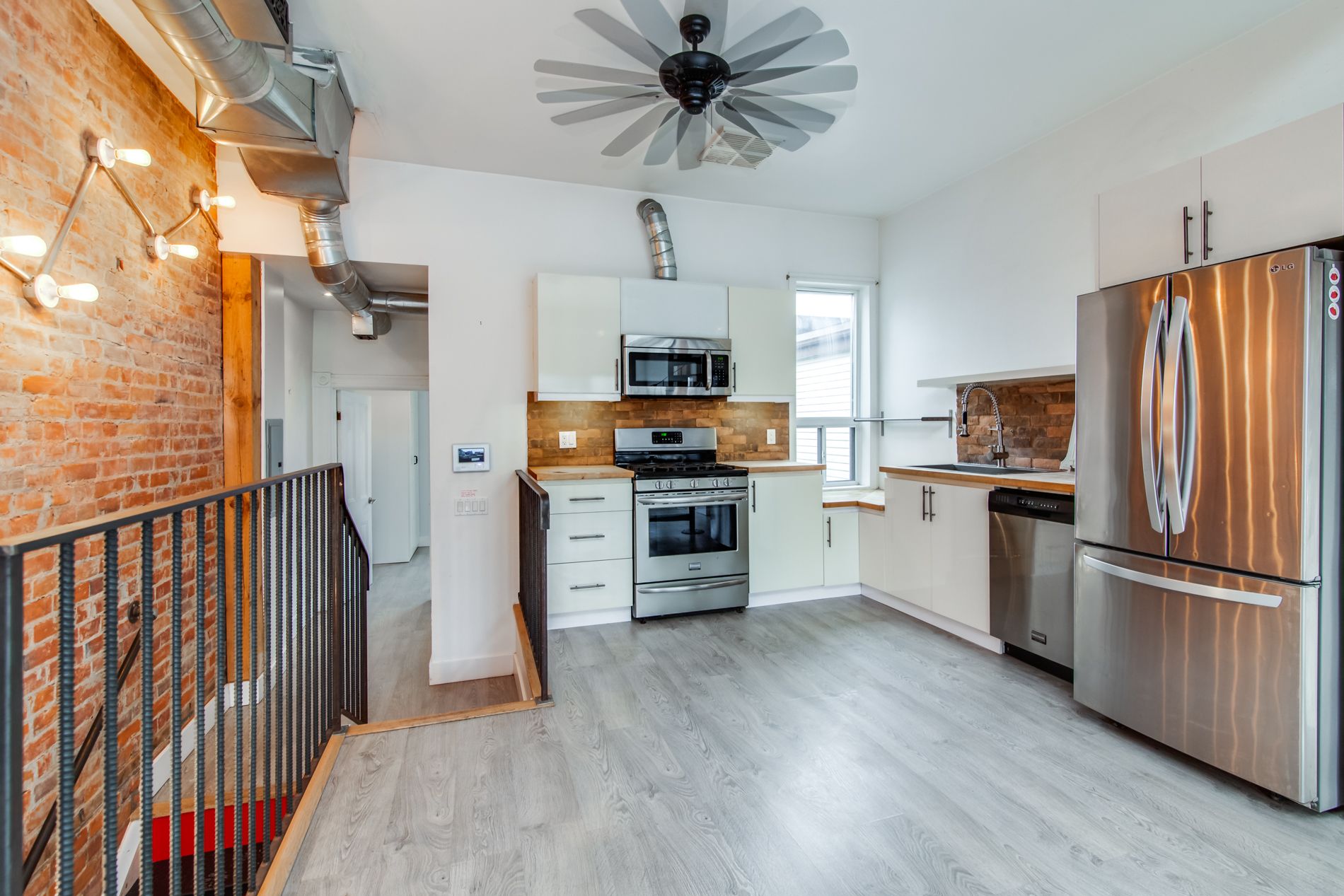 时尚 Queen West 地段的阁楼式顶层公寓。这个横跨二/三层的宽敞布局拥有 2 间卧室和 1 间浴室。内部装修升级,包括现代开放式厨房,配有 WS/S 电器和美丽的裸露砖墙。起居空间宽敞,天花板高度,配有双窗和 2 个天窗。开放式餐厅区配有螺旋楼梯,通往主卧室 + 私人洗衣房。包含 1 个私人车库停车位和额外的储物空间。靠近 Queen St,公共交通,食品店,公园,娱乐中心等等。