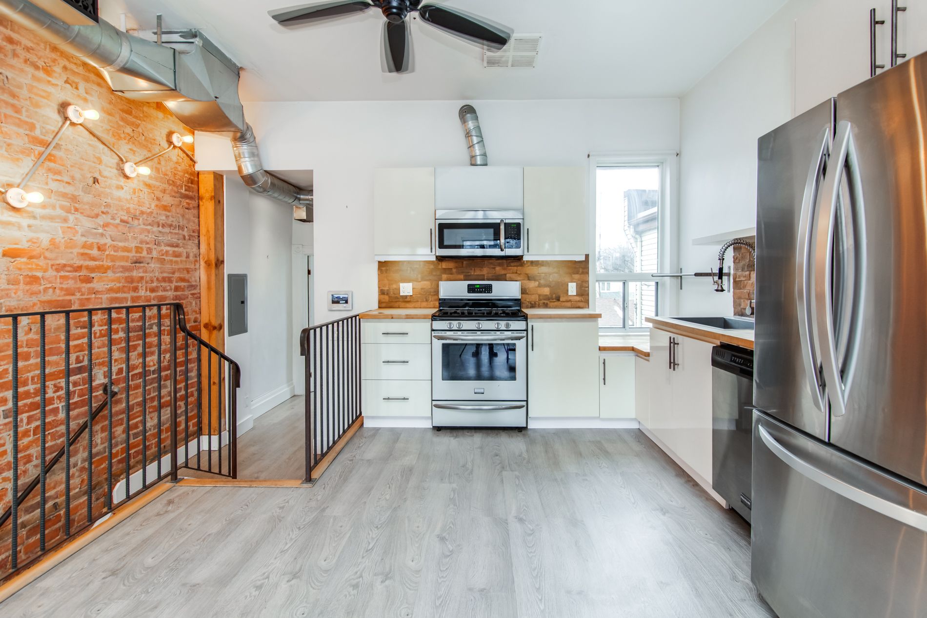Loft Style Upper Unit In Trendy Queen West. This Spacious Layout Across The 2nd/3rd Floors Features 2 Bedrooms & 1 Bathroom. Updated Interior Including A Modern Open Concept Kitchen WS/S Appliances & Beautiful Exposed Brick. Large Living Area With High Ceilings, Double Windows & 2 Skylights. Open Dining Area With Spiral Staircase Leading Up To Primary Bedroom + Ensuite Laundry. 1 Private Garage Parking Spot Included With Additional Storage Space. Steps To Queen St, Public Transit, Grocery Stores, Parks, Rec Centres & Much More.