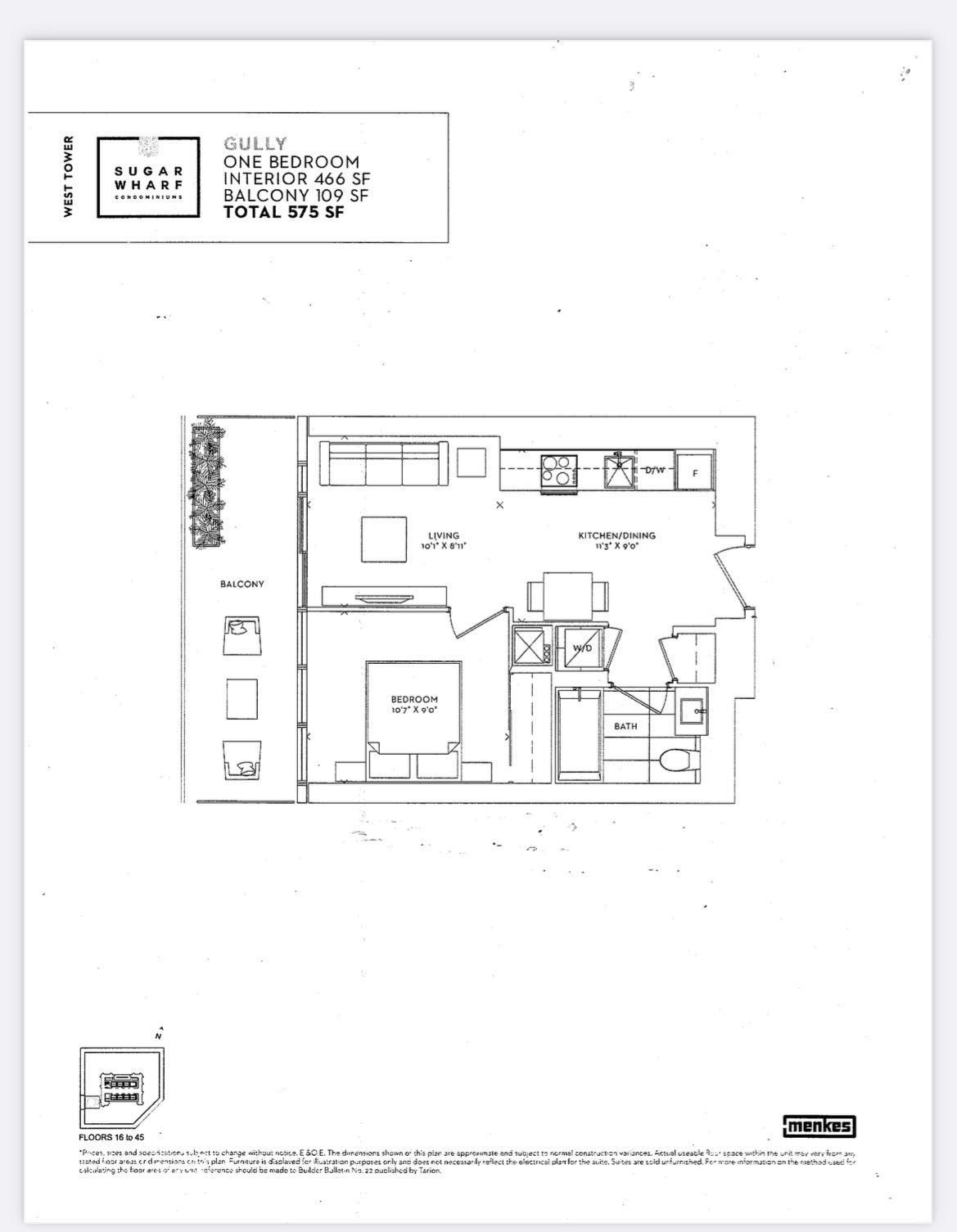 Welcome to Sugar Wharf West Tower where luxury meets lifestyle. 1 Bedroom And 1 Bathroom. 466Sf With 109 Sf Balcony Per Builder Floorplan. Open Concept Kitchen, Stainless Steel Kitchen Appliances, With amenities such as 24-hour concierge, state of the art fitness centre, kids play area, and expansive outdoor landscaped terrace with BBQ and dining areas. Conveniently Close to all amenities, from public transit to the beautiful sugar beach, St. Lawrence Market, Restaurants, Farm Boy and Loblaws, LCBO, Union Station, Scotia Plaza, George Brown College, Toronto Metropolitan University, UofT and the entire Downtown Core.Fridge, Cooktop, B/I Oven, Rangerhood, Dishwasher, Microwave, Stacked Washer & Dryer. Tenant must have tenant insurance and pay for hydro, heat, cooling and water.