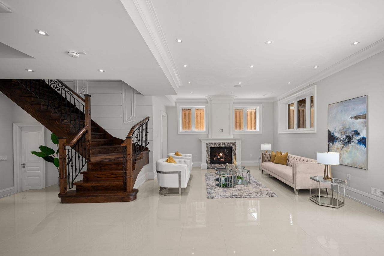 This Transitional Classy Custom Residence Built In 2018, ** Presents Like A New Home **! Quiet & Convenient Location, Steps Away From Finch Subway Station & Ravine! Artful Interior Design with Lots of Innovative Millwork! Advanced Smart Home! Coveted Exterior Pre-Cast Facade & Beautiful Mix Of Pre-Cast & Bricks In Sides and Back. This Beauty Features: Chef Inspired Kitchen with Hi-End Wolf/Sub-Zero Appliances and Natural Stone Countertop, Custom Designer Panelled Walls, 4 Gas Fireplaces with Natural Stone Slab, Heated Floor In Basement & All Washrooms, Coffered Ceiling and Ropelights, Hardwood Flooring Thru-Out Main&2nd Flr. Soaring Ceiling Height:10' in Basement, 10' In Main,9' in 2nd Flr, 13.75' in Foyer&Library, Fully Mahogany Charming Library, Open Rising Staircase with Huge Skylight above, Marble Flr with Border & Chevron Design in Foyer and Main Hallway, Long Interlocked Driveway & No Sidewalk in Front, Functional Layout, Prof Finished W/O Basement including Large Rec Rm with Wetbar,Winecellar,Fireplace, Bedrm &4Pc Bath,R/I Laundry! Deck, Patio & Firepit in Fully Fenced Backyard!All Existing Light Fixtures and Chandeliers are included, only some electrical light fixtures have been replaced and are not the same as photos.