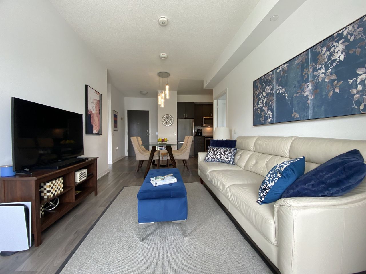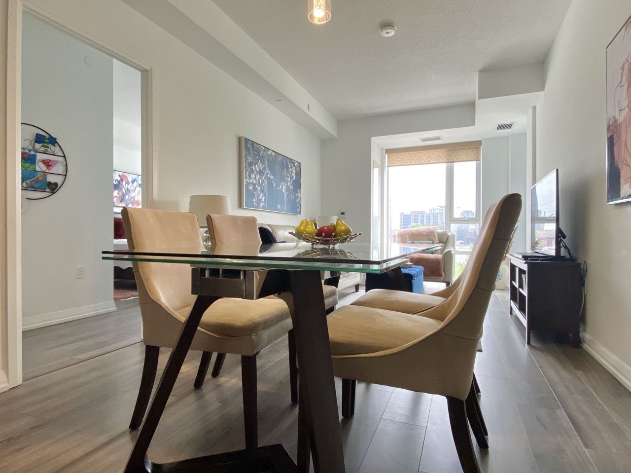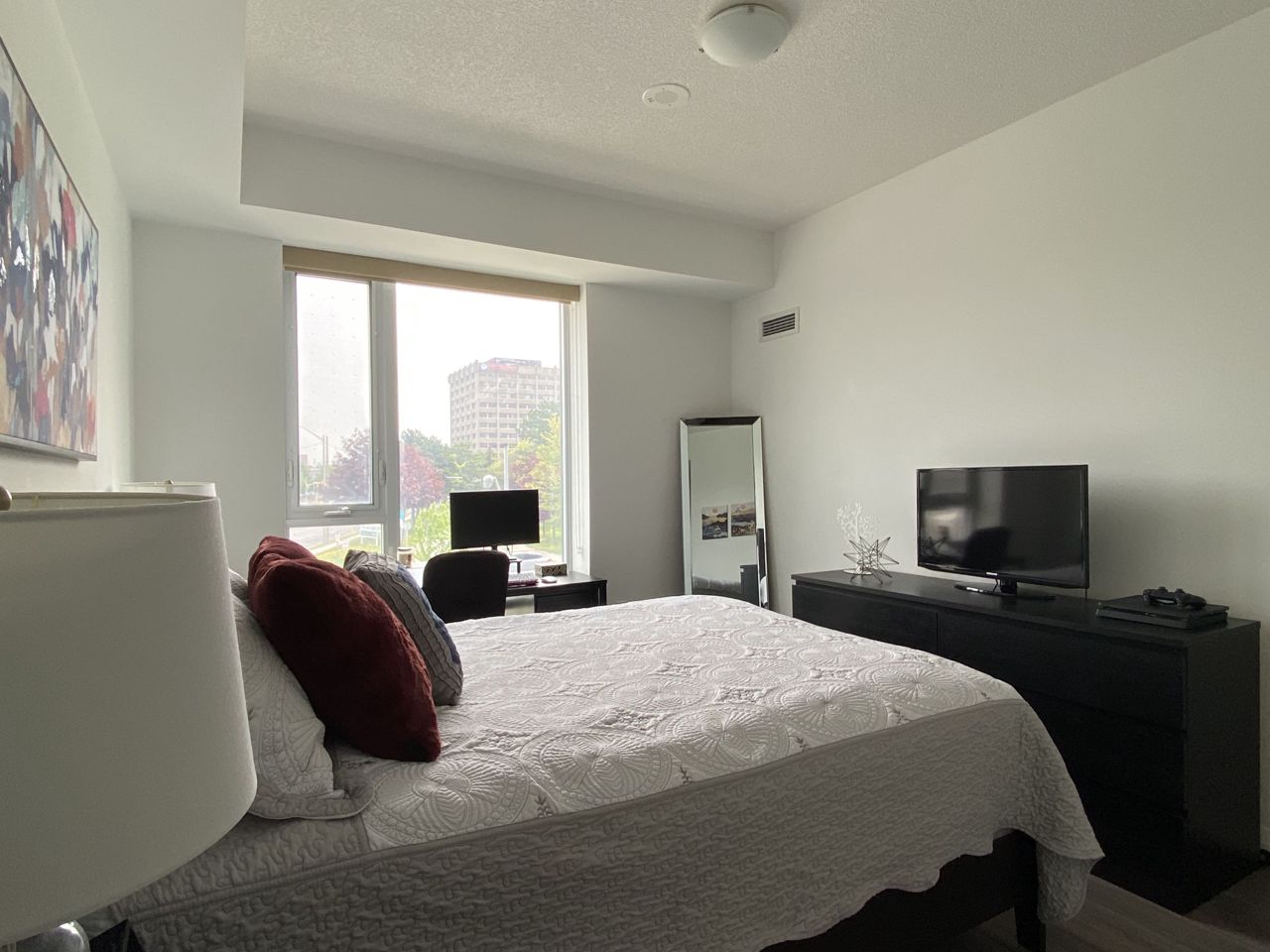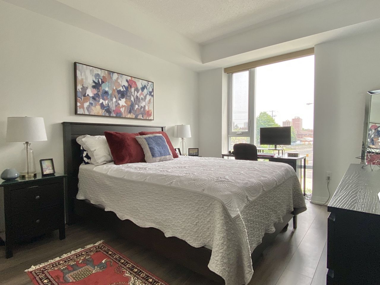 Welcome to this fabulous two bedroom suite at Parfait by Tridel on a tree lined street alongside lush green space perfectly connected to everything you could need. 845 Sq Ft of neatly designed spaces with high ceilings for your comfort. Principal room with w/i closet & 3-pc ensuite. Fantastic building amenities: 24/7 Concierge, state of the art gym, yoga, steam, training pool, second to none recreation/party, bbq, private dining, prep kitchen, theater, billiards, boardroom, fantastic roof top terrace, visitor parking. Close to Subway, shopping malls, HWY 404 & 401Stainelss Steel Fridge, Stove, Microwave, Dishwasher, Washer/Dryer, Elf's, Window coverings. Maintenance also includes Basic Rogers Internet and cold water.