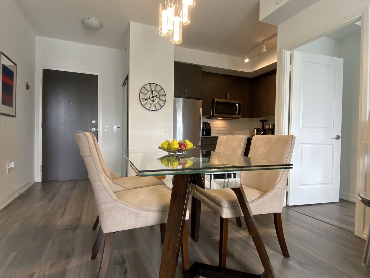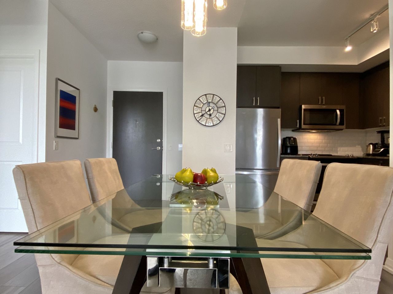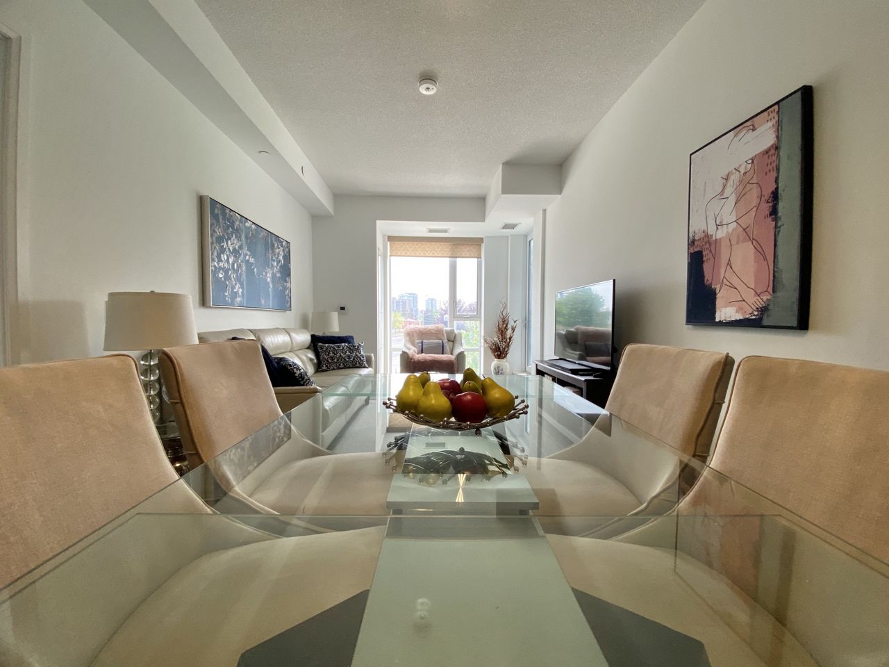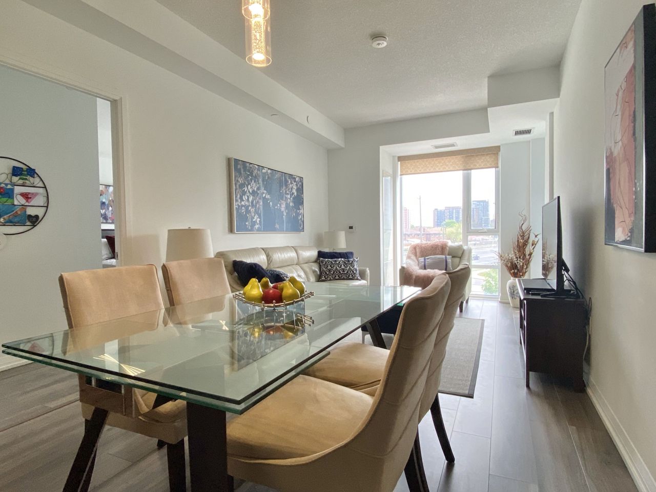 Welcome to this fabulous two bedroom suite at Parfait by Tridel on a tree lined street alongside lush green space perfectly connected to everything you could need. 845 Sq Ft of neatly designed spaces with high ceilings for your comfort. Principal room with w/i closet & 3-pc ensuite. Fantastic building amenities: 24/7 Concierge, state of the art gym, yoga, steam, training pool, second to none recreation/party, bbq, private dining, prep kitchen, theater, billiards, boardroom, fantastic roof top terrace, visitor parking. Close to Subway, shopping malls, HWY 404 & 401Stainelss Steel Fridge, Stove, Microwave, Dishwasher, Washer/Dryer, Elf's, Window coverings. Maintenance also includes Basic Rogers Internet and cold water.