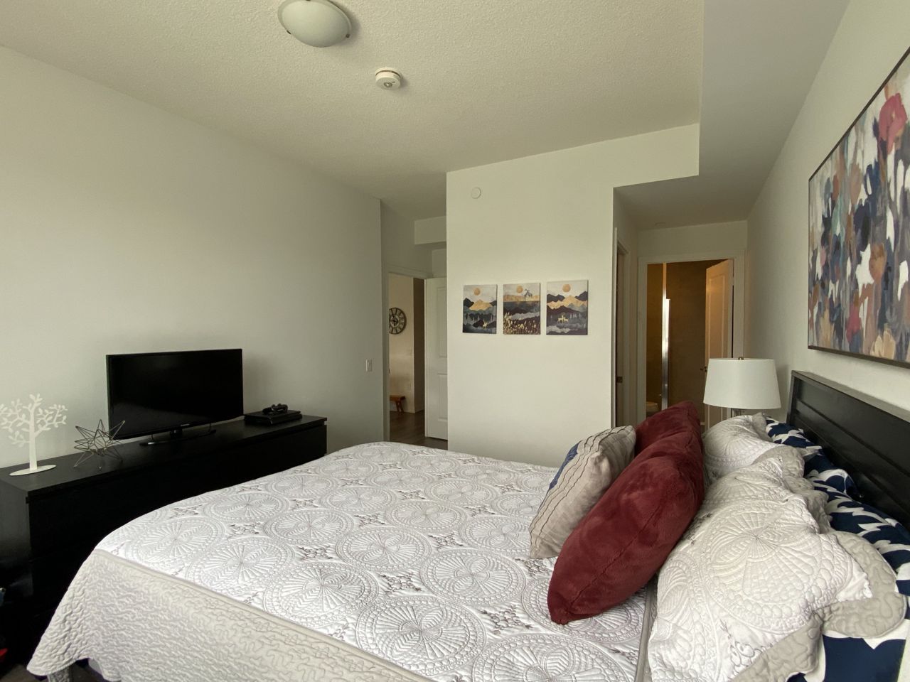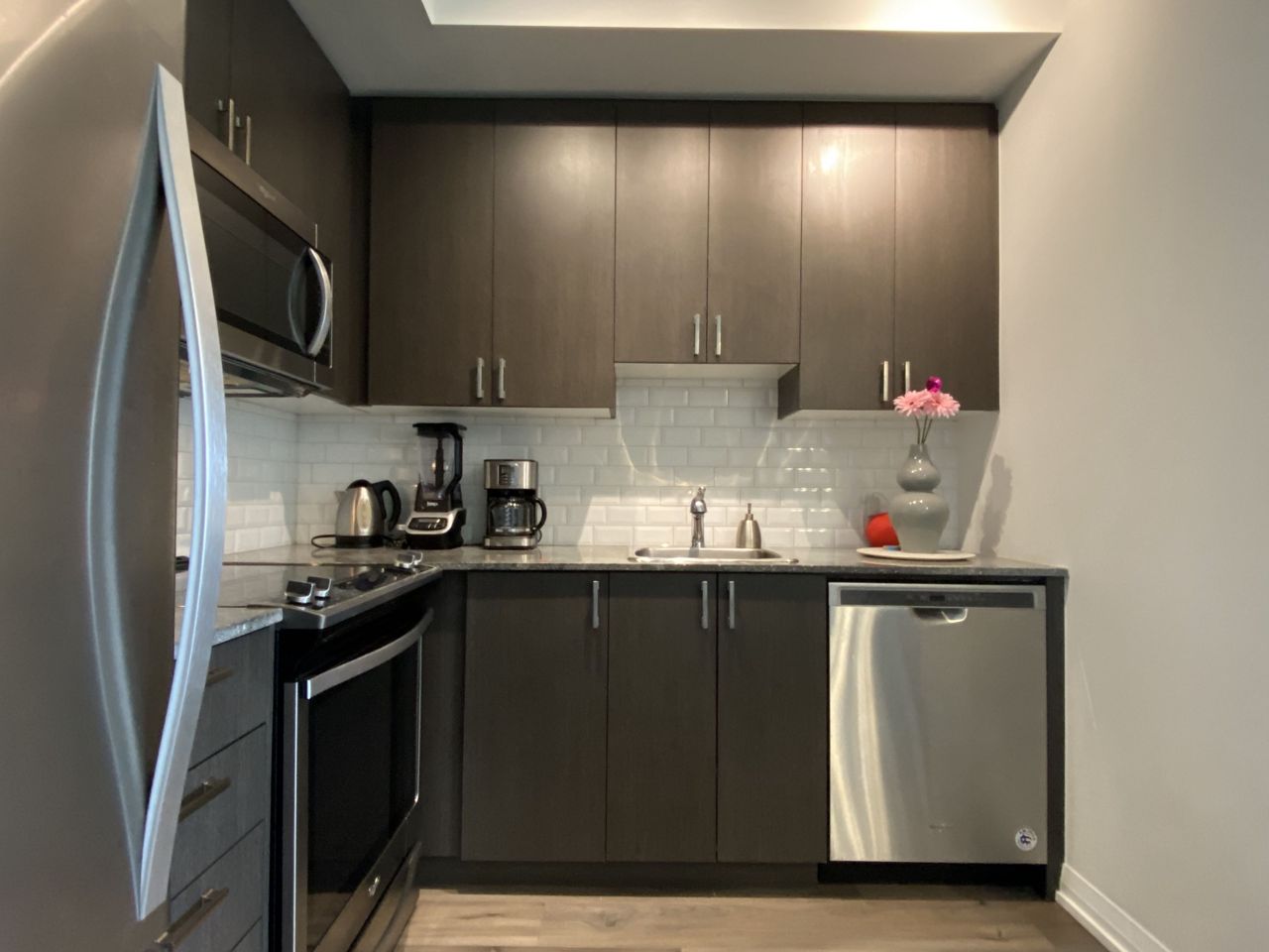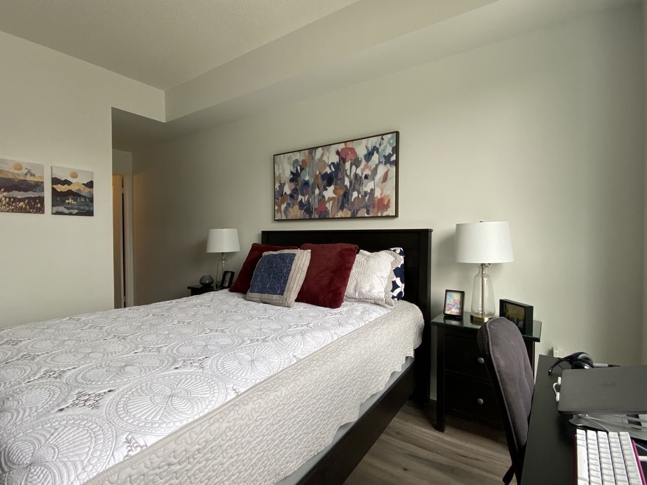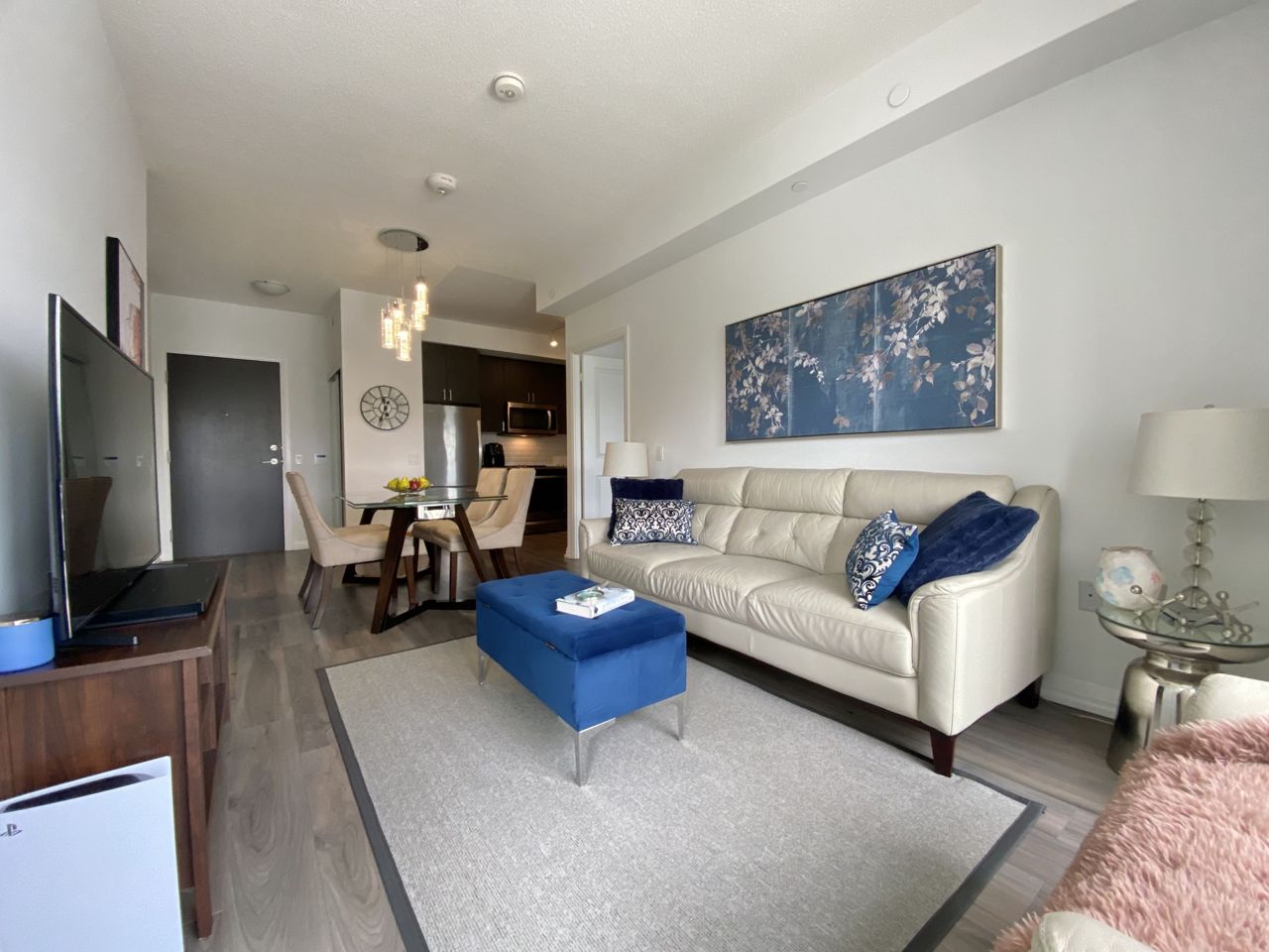 Welcome to this fabulous two bedroom suite at Parfait by Tridel on a tree lined street alongside lush green space perfectly connected to everything you could need. 845 Sq Ft of neatly designed spaces with high ceilings for your comfort. Principal room with w/i closet & 3-pc ensuite. Fantastic building amenities: 24/7 Concierge, state of the art gym, yoga, steam, training pool, second to none recreation/party, bbq, private dining, prep kitchen, theater, billiards, boardroom, fantastic roof top terrace, visitor parking. Close to Subway, shopping malls, HWY 404 & 401Stainelss Steel Fridge, Stove, Microwave, Dishwasher, Washer/Dryer, Elf's, Window coverings. Maintenance also includes Basic Rogers Internet and cold water.