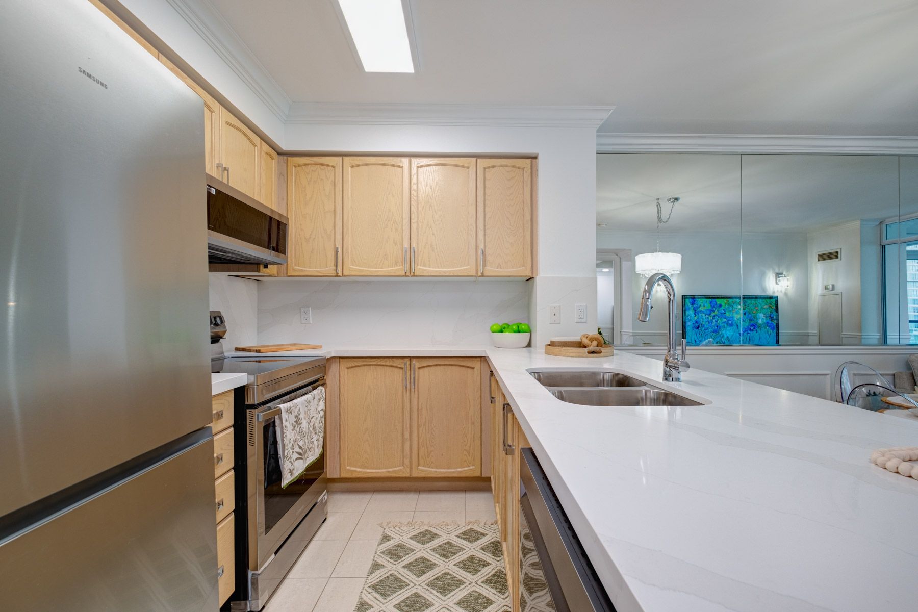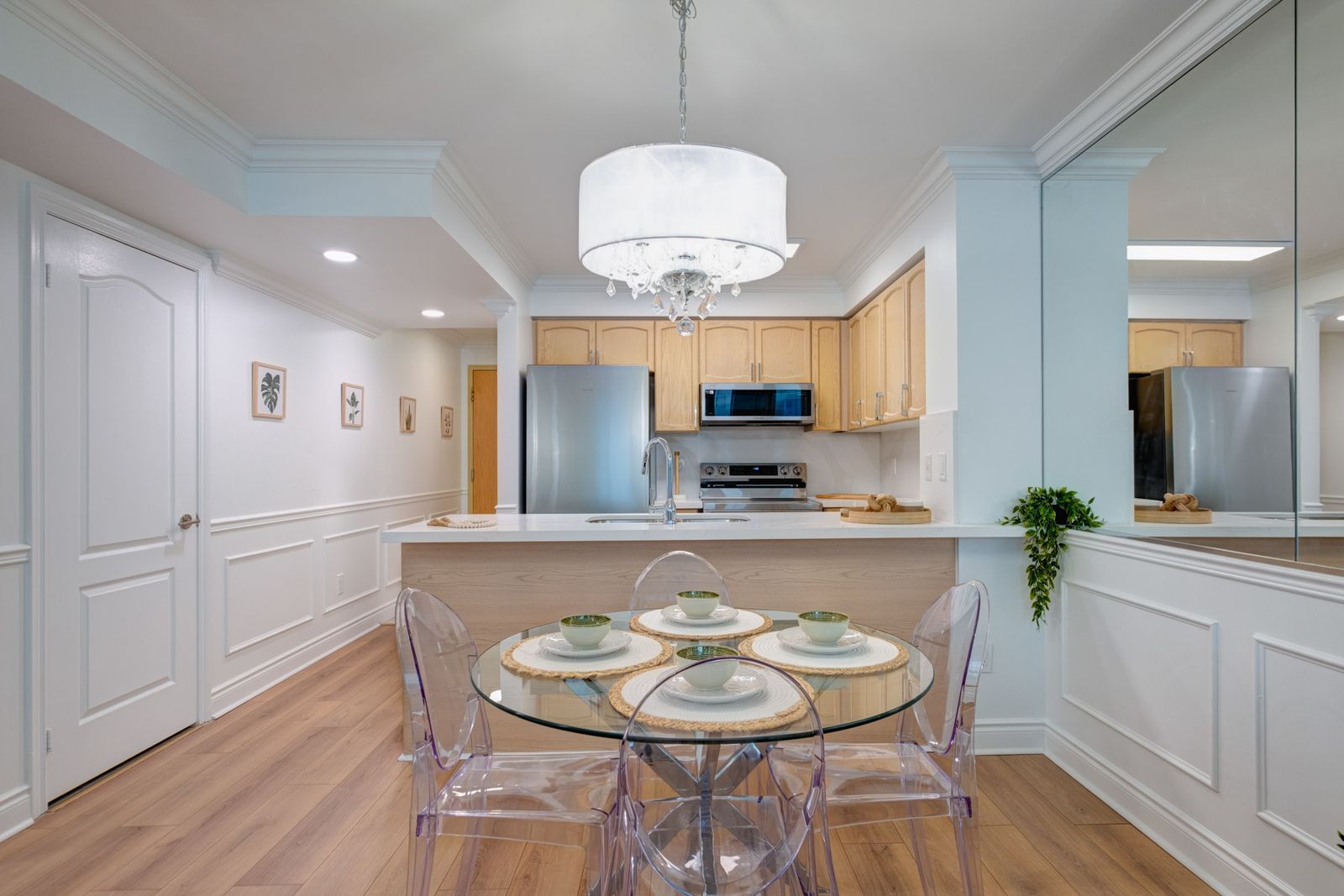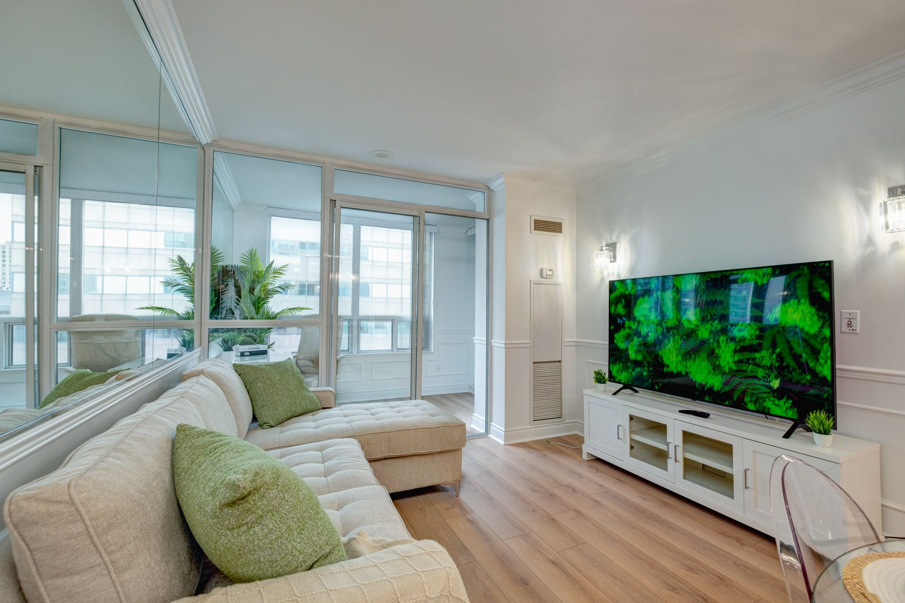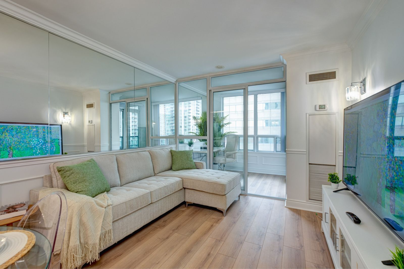 Location! Location! Location! Beautifully renovated 1 bedroom plus den condo, located in the heart of Scarborough. Direct access 30 seconds from TTC station and 40 seconds to Scarborough Town Center. Minutes from 401. Southeast facing balcony with artificial turf overlooking albert Campbell square and Scarborough town center. Recent upgrades include new flooring, smooth ceilings, crown moulding, wainscotting, quartz counters and backsplash, crystal chandeliers, mirrored wall, wall scones, USB outlets, and all 4000k LED lighting. Brand new Samsung stainless steel kitchen appliances. Ensuite laundry, Bright and spacious den is perfect for a home office. 1 underground parking spot and storage locker included! 24hrs concierge, indoor swimming pool, hot tub, table tennis room, card room, mini theatre, sauna, party room, virtual golf room, library, car washing station & visitors parking. Don't miss this opportunity.