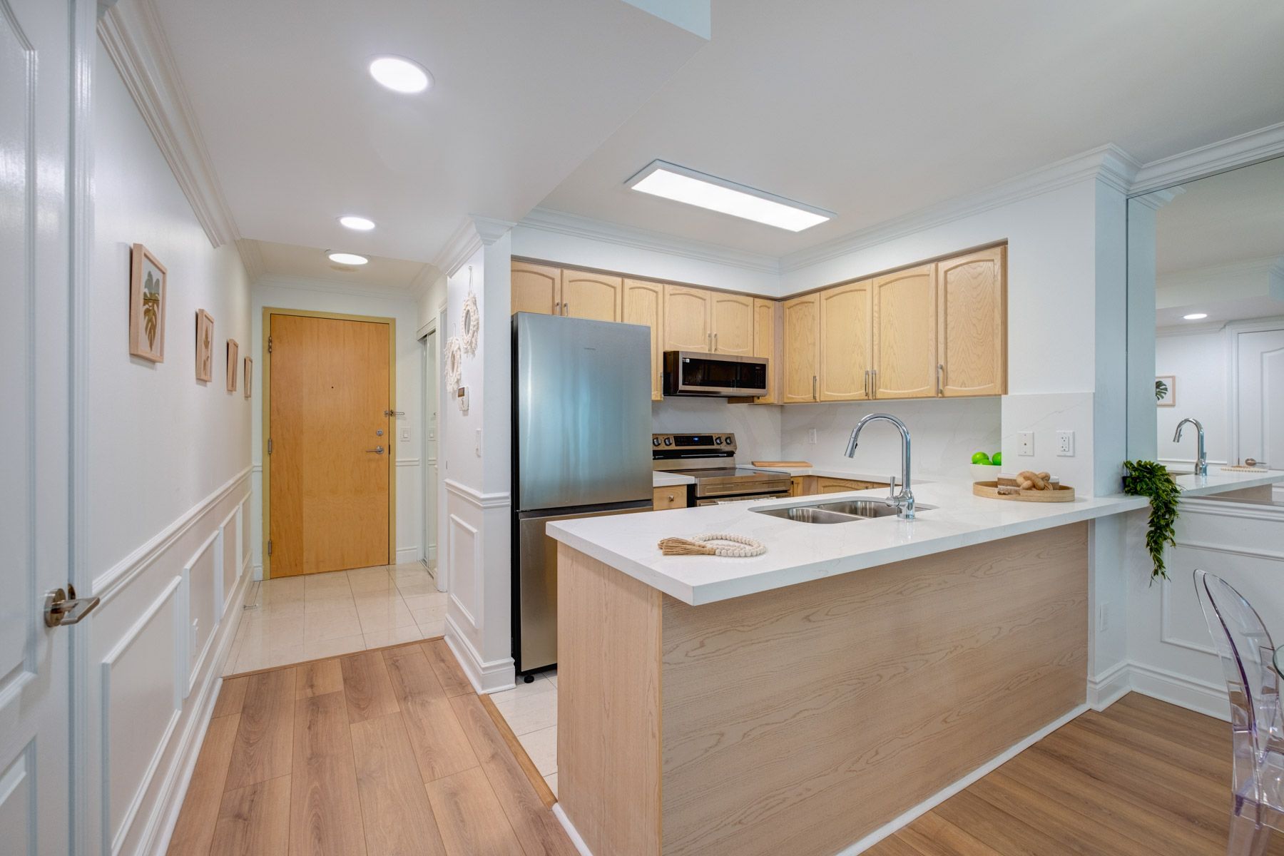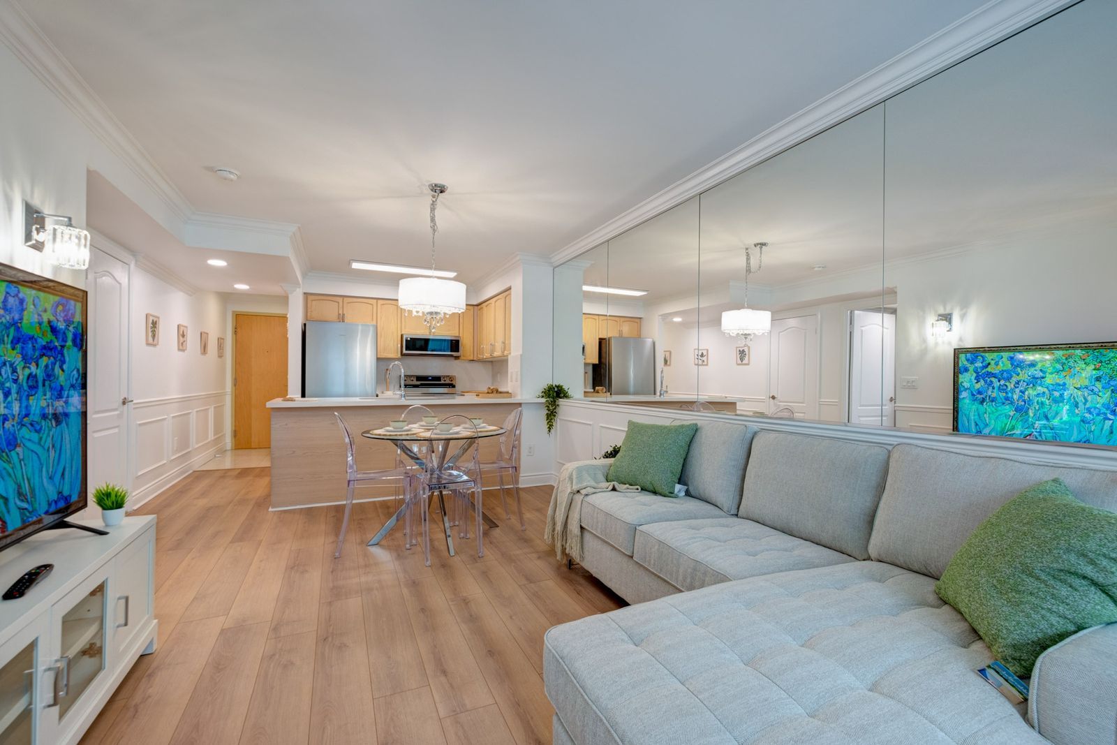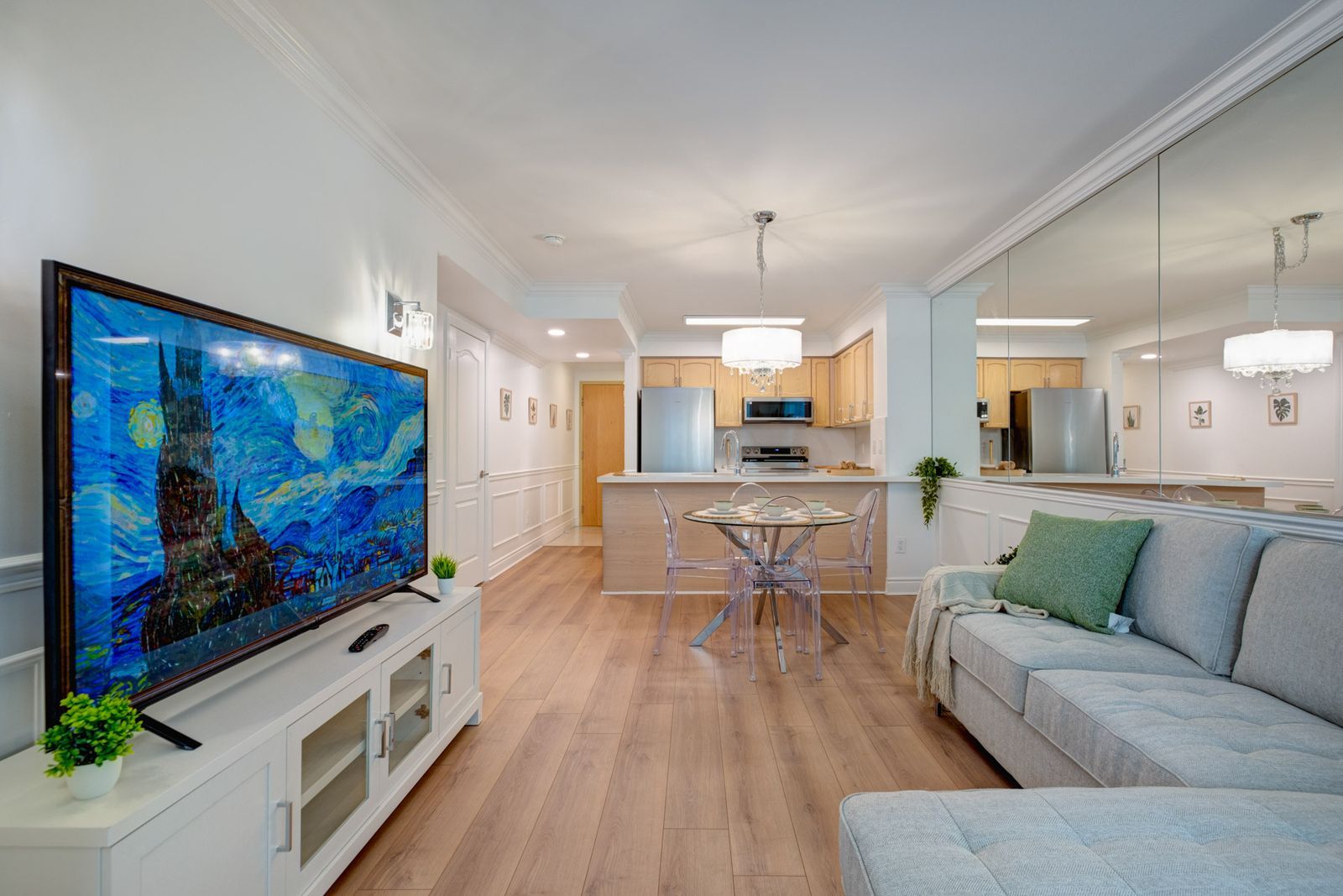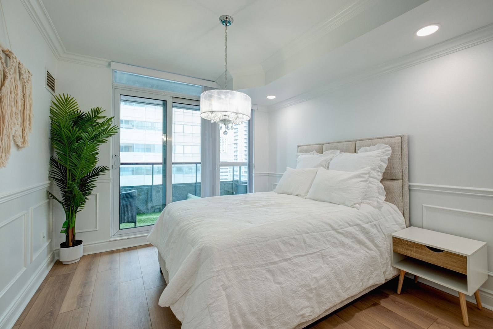 Location! Location! Location! Beautifully renovated 1 bedroom plus den condo, located in the heart of Scarborough. Direct access 30 seconds from TTC station and 40 seconds to Scarborough Town Center. Minutes from 401. Southeast facing balcony with artificial turf overlooking albert Campbell square and Scarborough town center. Recent upgrades include new flooring, smooth ceilings, crown moulding, wainscotting, quartz counters and backsplash, crystal chandeliers, mirrored wall, wall scones, USB outlets, and all 4000k LED lighting. Brand new Samsung stainless steel kitchen appliances. Ensuite laundry, Bright and spacious den is perfect for a home office. 1 underground parking spot and storage locker included! 24hrs concierge, indoor swimming pool, hot tub, table tennis room, card room, mini theatre, sauna, party room, virtual golf room, library, car washing station & visitors parking. Don't miss this opportunity.