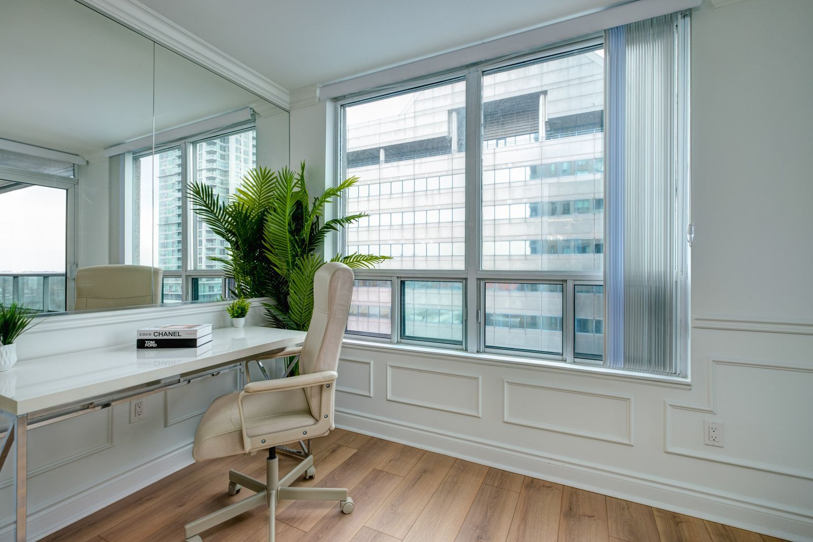 地段!地段!地段!位于Scarborough中心地带,装修精美的1卧室加书房公寓。距离TTC站仅30秒,距离Scarborough Town Centre仅40秒。距401公路数分钟。朝东南的阳台铺设人造草坪,可俯瞰Albert Campbell Square和Scarborough Town Centre。近期升级包括新地板、平滑天花板、皇冠线脚、护墙板、石英台面和后挡板、水晶吊灯、镜面墙、墙壁壁灯、USB插座以及所有4000K LED照明。全新的Samsung不锈钢厨房电器。室内洗衣设施,明亮宽敞的书房非常适合家庭办公室。包含1个地下停车位和储物柜!24小时礼宾服务,室内游泳池,热水浴缸,乒乓球室,牌室,迷你影院,桑拿房,派对房,虚拟高尔夫室,图书馆,洗车场和访客停车位。不要错过这个机会。