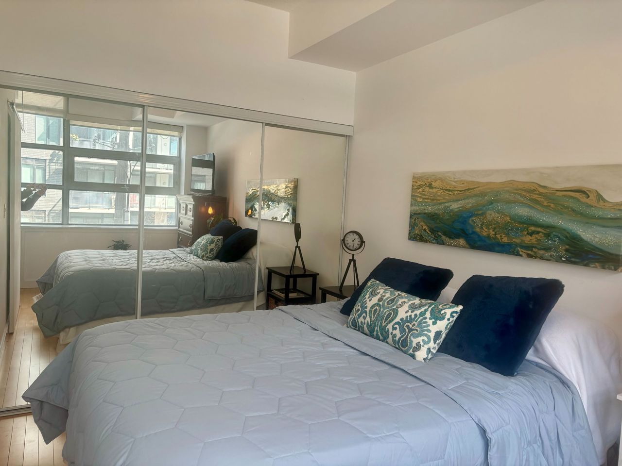 This Bright & Charming Condo nestled in the Vibrant Beach Community has it all. Downtown Toronto is only a 15 minute Drive away, creating the perfect balance of city living with a touch of leisure. Expansive windows and 9' Ceilings provide an abundance of natural light, and ventilation, and the functional open layout is ideal for Entertaining and Relaxing. Ample Kitchen Cabinets and Closet Space with Organizers , Full size Appliances, Moveable Island/Breakfast Bar & Ensuite Laundry. TTC, Schools, YMCA, Big Carrot, Library, Tennis Courts, and Glen Stewart Park/Ravine right at your doorstep. Walking distance to Subway or Danforth Go, & all the Quaint Shops and Eateries of Queen St E. There's always an outdoor adventure or something to explore on the Boardwalk and Lake Ontario. Your Sanctuary in the City is Here!