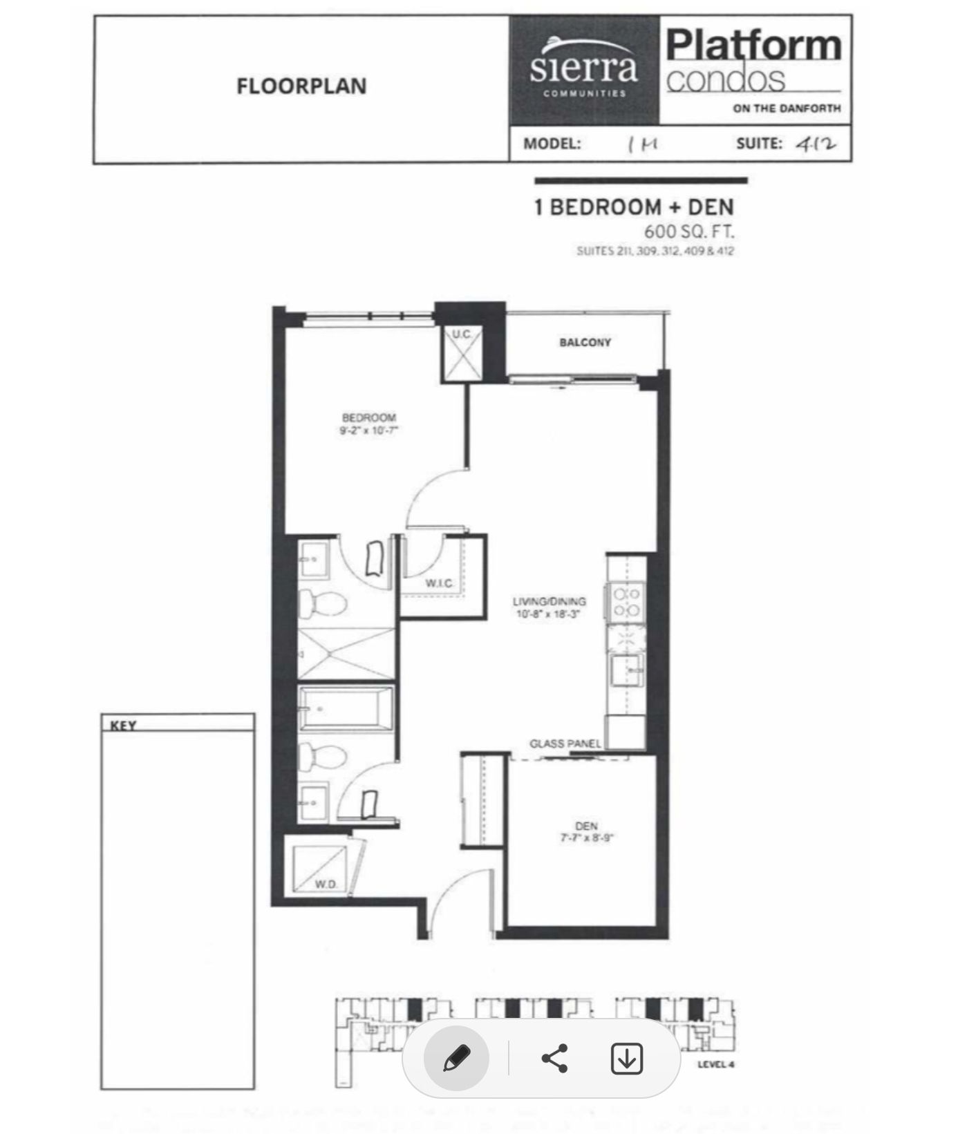 Just Three Year New Boutique Condo in Desirable Danforth! Features Spacious, Airy Layout With Maximized Windows for Natural Light. Laminate Flooring Throughout, Smooth Ceilings, Den is Seperate Room with Sliding Door. Subway is Just Steps Away, Amenities - Gym & Yoga Studio, Party/Meeting Rm, Games Rm & Rooftop Deck/Garden, Etc. Close To Grocery Stores, Restaurants. Must See!!!Fully Sized Stainless Steel Kitchen Appliances : Fridge, Stove/Oven, B/I Microwave, Washer & Dryer. Window Covering.