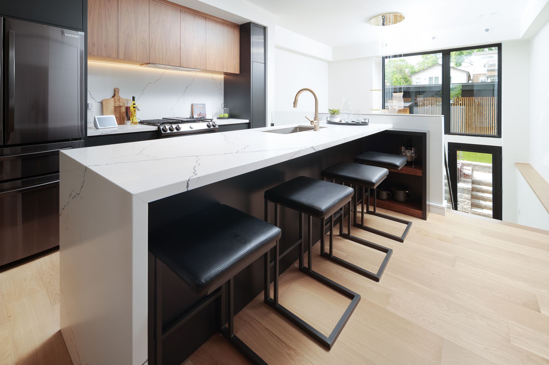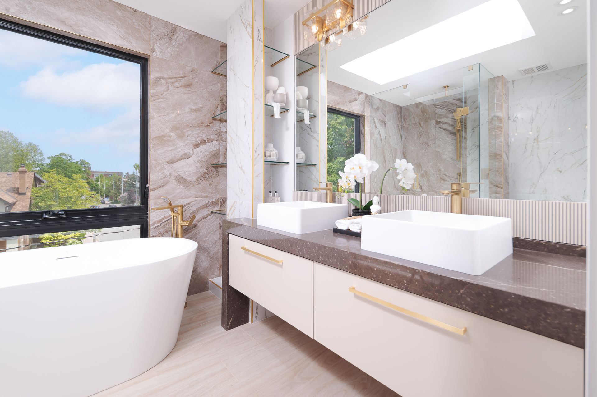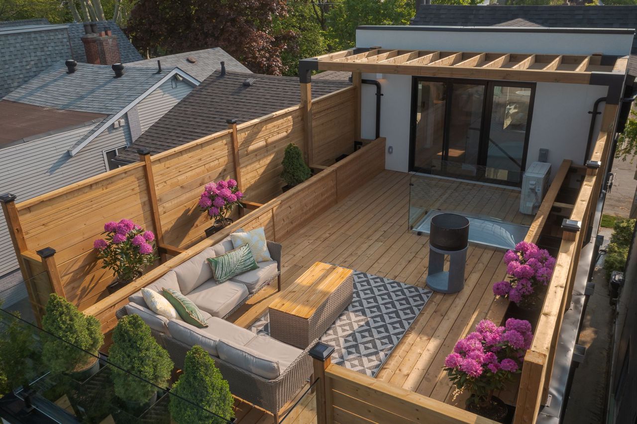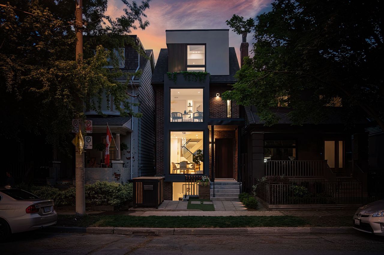 Impeccable Modern Design defines this 3-storey, 4-Bdrm 5-Bathroom detached home in a coveted East York community. A perfect blend of functionality & Style creating an inviting comfortable family home. Main lvl features an elegant dining area & spacious living room seamlessly flowing into an open-concept gourmet kitchen with stylish cabinetry. Ascending to 2nd lvl you will find 3 Generously sized bdrms and a cozy Den with a built-in desk. On 3rd lvl, the opulent prime bdrm offers access to a private sunny rooftop patio w/unobstructed views. Built-in his/her closets & custom shelving enhance the comfort of this loft suite, while the 5-piece En-suite features a walk-in shower /freestanding tub w/picture window. lower level with heated floor and lots of natural light, accessible through separate entrance walk up to Langford Ave, features a wet bar W/Sink and 3-piece bathroom, ideal as home office, guest suite or an extended family member. Access to 2 car Carport &Laneway from the backyard.exterior design imbues this house with a unique character that stands out in neighborhood. Enjoy the tranquility of a quiet street, steps away from authentic shops & restaurants on Danforth Ave. Short Drive To Downtown Toronto,Beaches & DVP