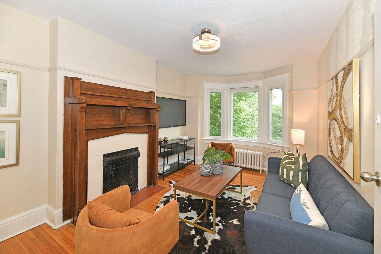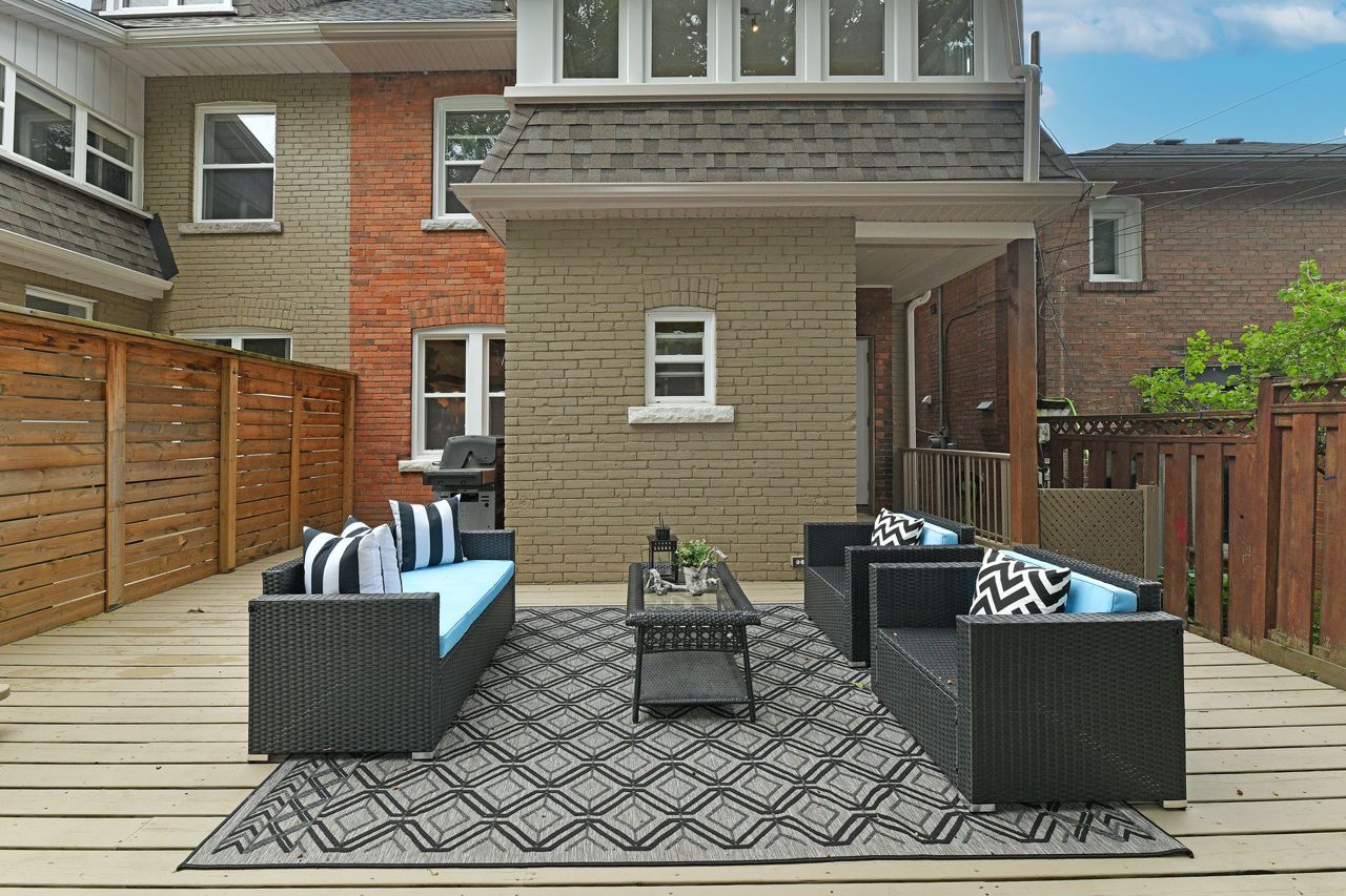 **DON'T MISS THIS ONE!!** Exquisite home in the prestigious Wychwood/Hillcrest Village area! This beautiful solid brick 3-storey WIDE semi (feels like detached!) boasts 5 bedrooms plus second floor office/sunroom. The generous rooms are perfect for a single family, but can also be divided into separate units or offer potential multigenerational living arrangement. Third floor can be converted to Primary Suite oasis! A large basement with separate side entrance is ready for your special touch. Main Floor W/O to deck, huge backyard with gas BBQ and hookup. Steps to excellent schools, TTC, shopping, all within a dynamic, desirable, highly walkable community. The home is infused with original charm and character, inc. solid wood accents throughout. Perched high to offer country-like streetscapes, magnificent trees and overlooking Mt. Royal parkette,