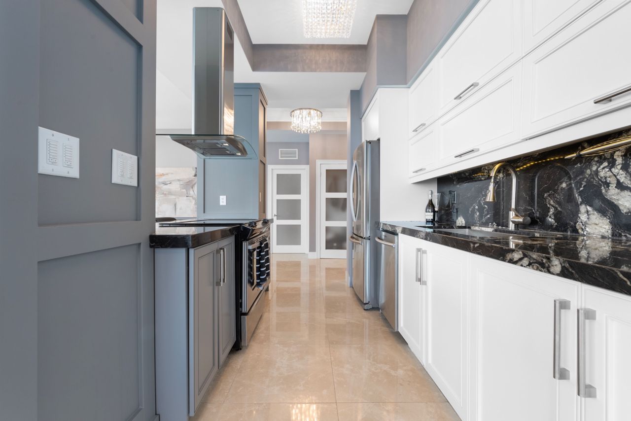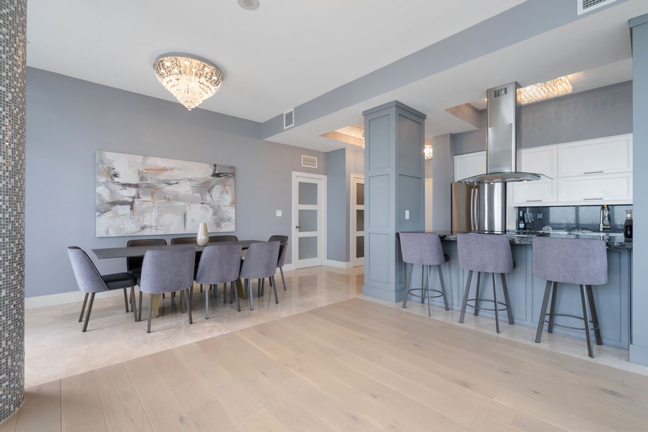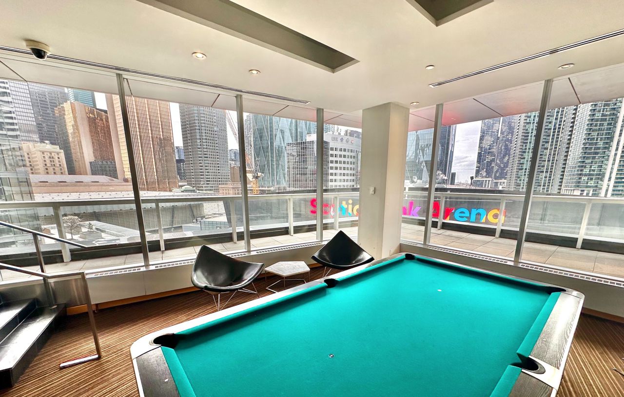 绝美私密顶层公寓,坐拥全景湖景。欢迎来到本市最令人向往的豪华住宅之一 Maple Leaf Sq。这座令人惊叹的 2+1 卧室、2 浴室的顶层公寓转角单位,重新定义了精致与优雅。这件建筑杰作拥有 1,424 平方英尺精心设计的居住空间,真正与众不同。步入一个精致设计和尊贵的境界,10 英尺的层高和环绕式窗户让空间充满自然光,展现东部和南部景观,包括 Lake Ont 的全景。从日出到日落,美景无与伦比。厨师厨房是一个现代化的展示空间,配有定制橱柜、不锈钢电器、早餐吧和华丽的异国情调黑色星系花岗岩台面,在柔和的重点照明下闪耀。丰富的 7 1/4 英寸加拿大白橡木硬木地板与天然白色大理石地板优雅对比,营造出温暖与奢华的无缝融合。开放式起居和用餐空间由马赛克瓷砖柱框起。在此款待客人是一件绝对的乐事。两个阳台提供充足的户外空间,是感受湖畔微风和城市景观的完美休憩之所。主套房是奢华的庇护所,装饰有嵌入真正施华洛世奇水晶的墙纸,为每一刻增添微妙的光彩,并设有一个水疗风格的套间浴室,配有巨大的淋浴间、双雨淋式淋浴头、白色玛瑙台面和一个为实用优雅而定制的步入式衣橱。两间卧室均提供私密性、充裕的空间和宁静的景色。其他特色包括定制电动窗帘、设计师灯具和整个区域无可挑剔的工艺。这座享有盛誉的 LEED 认证建筑提供直接通往 Scotiabk Arena、Union Station、PATH、LONGOs、LCBO、TD Bk、餐厅、零售店和 LeGermain Hotel 的通道。设施:屋顶泳池、日光浴平台、室内泳池、热水浴缸、健身中心、天空大堂休息室、影院室、商务中心、24 小时礼宾服务。靠近 Rogers Ctr、公园、海滨步道和娱乐场所。