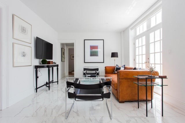 Hardwood Floor Marble Fireplace W/O To Sunroom