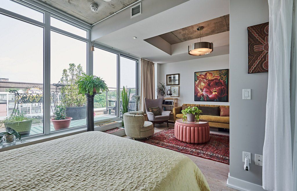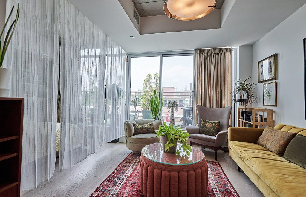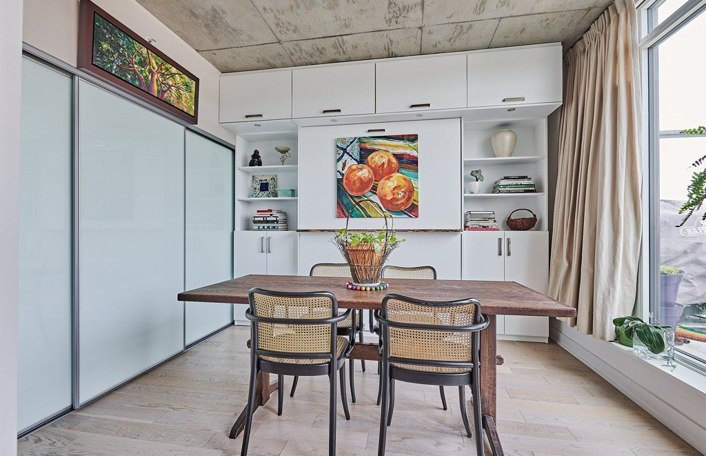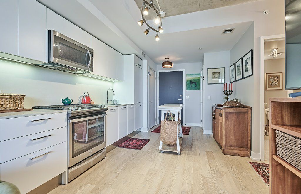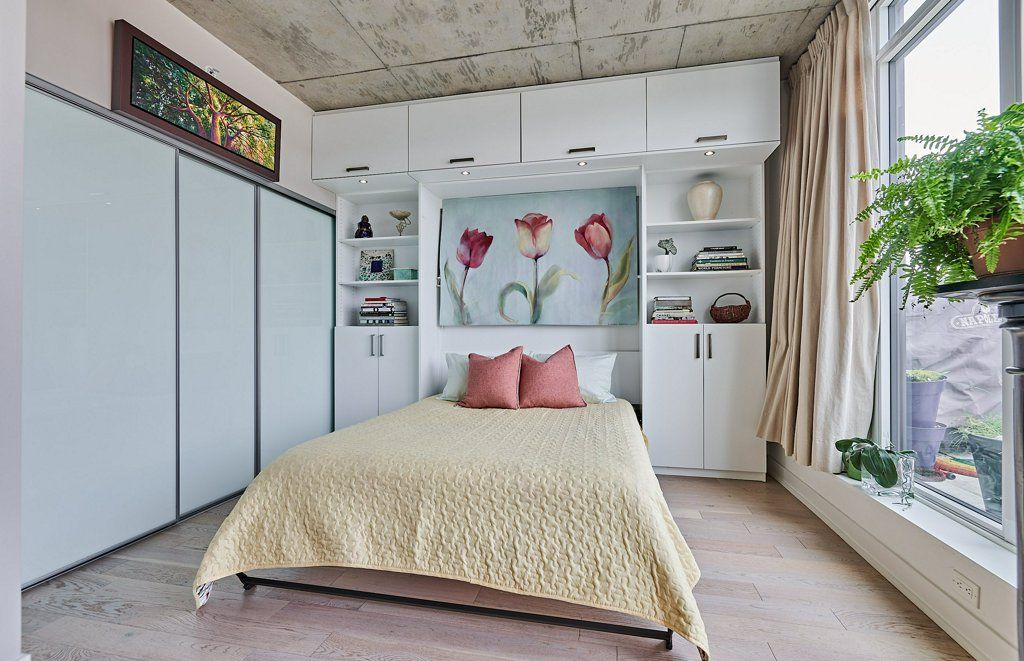 Welcome to the sought after Southwood. This suite is the perfect blend of loft inspired space & condo living built by Street Car Developments. A great place to call home or use as a Pied de Terre with so many options & flexibility in this well designed & thought out space. The bedroom wall has been removed & features a convenient Murphy Bed, maximizing the living & dining area that easily converts into your sleeping space at night. The den is currently fitted with useful storage & could also be used as a great home office. Modern finishes including engineered hardwood floors, integrated kitchen appliances, concrete ceilings, gas stove & more. You will love the light from your oversized balcony that is perfect for entertaining & is equipped with a gas BBQ line & no neighbours above. This suite includes parking & a locker, providing you with extra convenience and storage options. Murphy bed can be removed and fit Queen sized bed within the built-ins.Amenities are all within walking distance, the Big Carrot & TTC at your doorstep, the YMCA and Kingston Road Village up the street & the Lake and Queen Street at the bottom of the street.