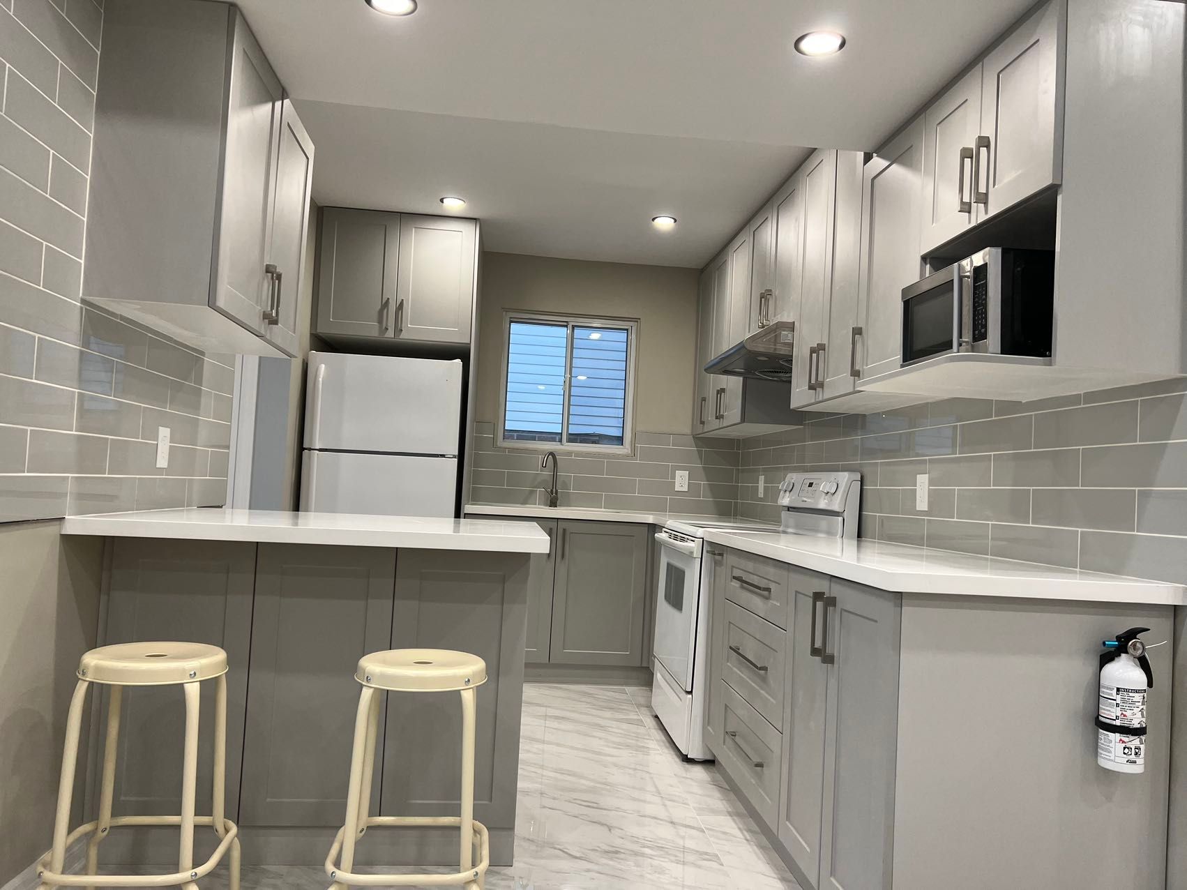 Absolutely Stunning Fully Renovated 3 Bedroom Upper Unit Apartment. Modern Kitchen Open Concept To Spacious Living And And Dinning Area, Master Bedroom With Walk-In Closet And Private Laundry. Close To Transit, School And All Other Amenities.Stove, Fridge, Range-Hood, Washer And Dryer, Light Fixtures And Window Covering.