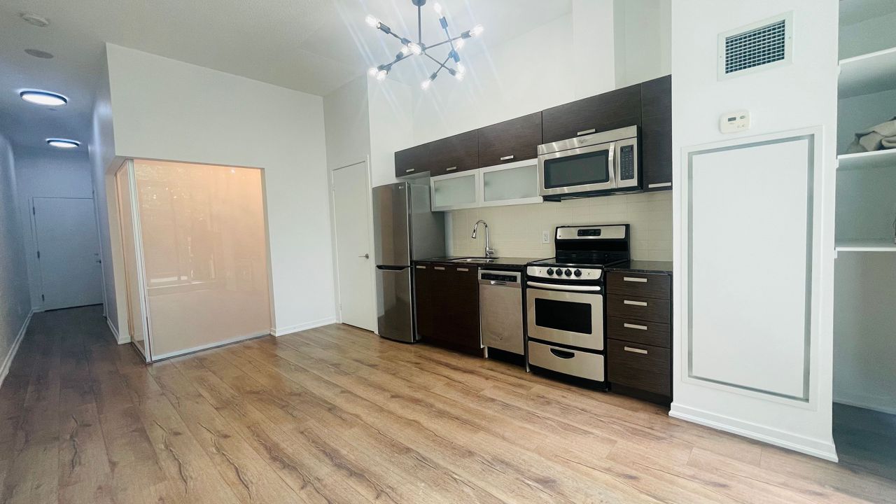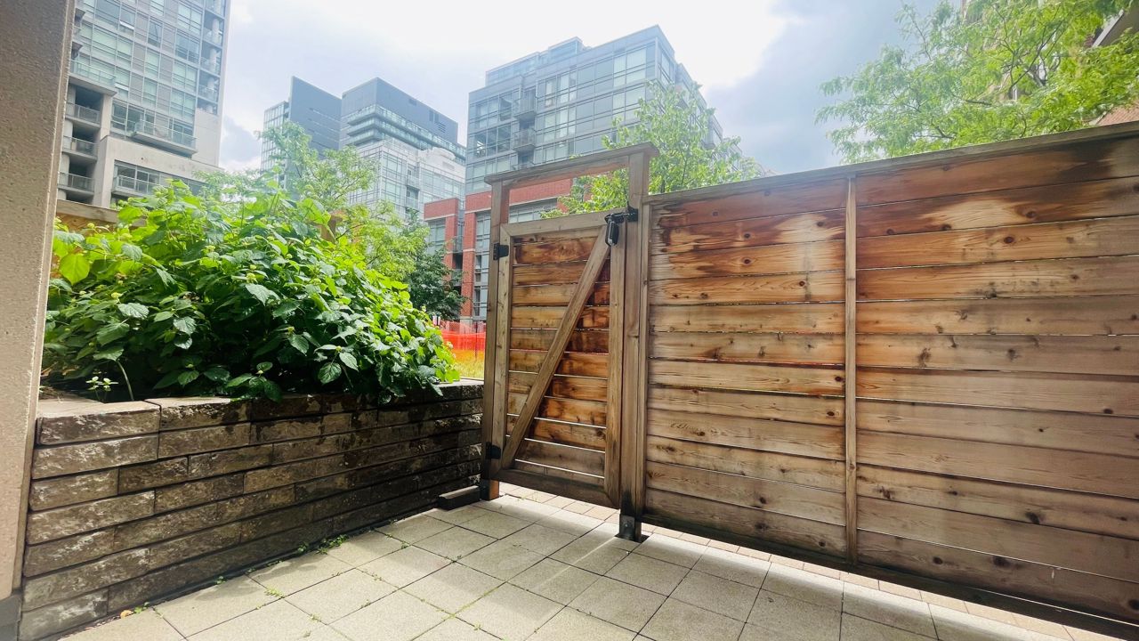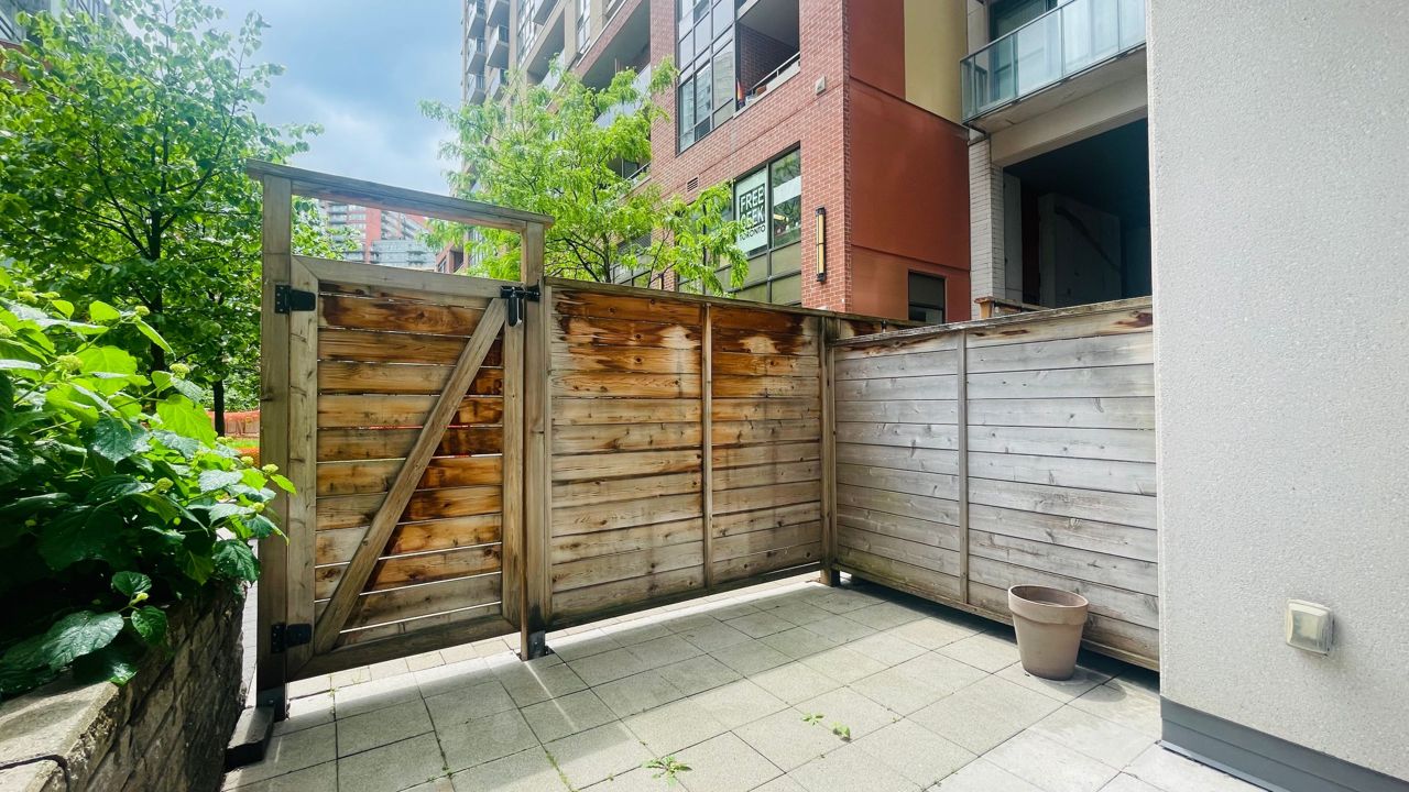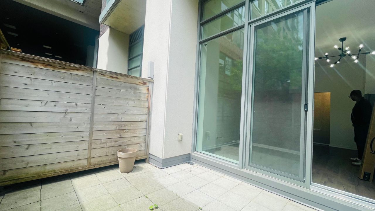 Discover the perfect blend of comfort and style in this stunning 1- bedroom unit. Designed with a keen eye for detail, this property offers everything you need for modern, convenient living in one of Toronto's most vibrant neighbourhoods. Boasting impressive 12 - foot ceilings, this unit feels opn and airy, providing a sense of grandeur and space rarely found in one-bedroom apartments. Step out onto your private terrace with direct access from the courtyard. This secluded oasis is perfect for morning coffees, evening dinners, or simply unwinding in your own backyard sanctuary. Enjoy the lively atmosphere of Toronto's most sought-after area with trendy cafes, boutique stores, and cultural hotspots just a short walk away. Easy access to TTC ensures you're well-connected to the rest of the city, making commuting a breeze. This unit is a rare find and won't last long on the market. Don't miss your chance to call this beautiful space your home. You will be impressed!!Stainless steel (fridge, stove, dishwasher, b/i microwave) washer/dryer, window coverings. 1 Parking spot and Locker Included in price!!