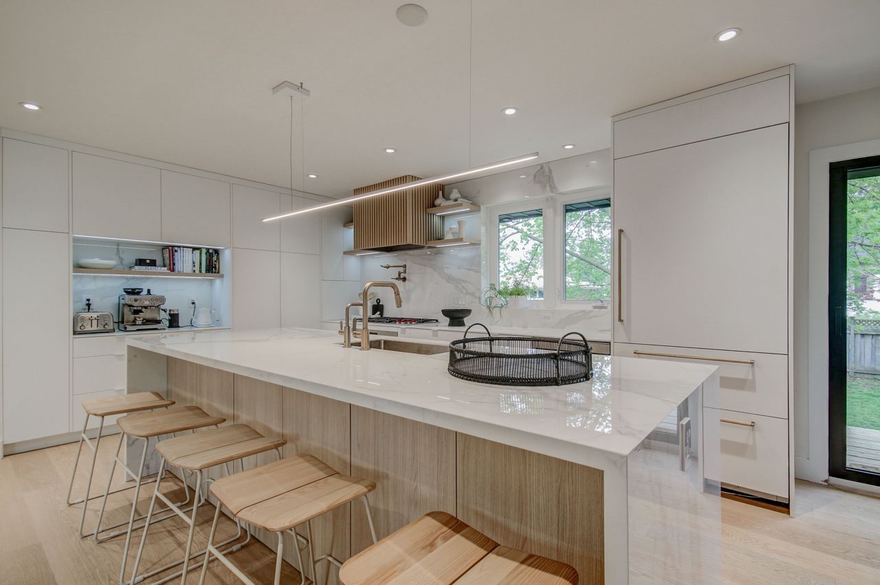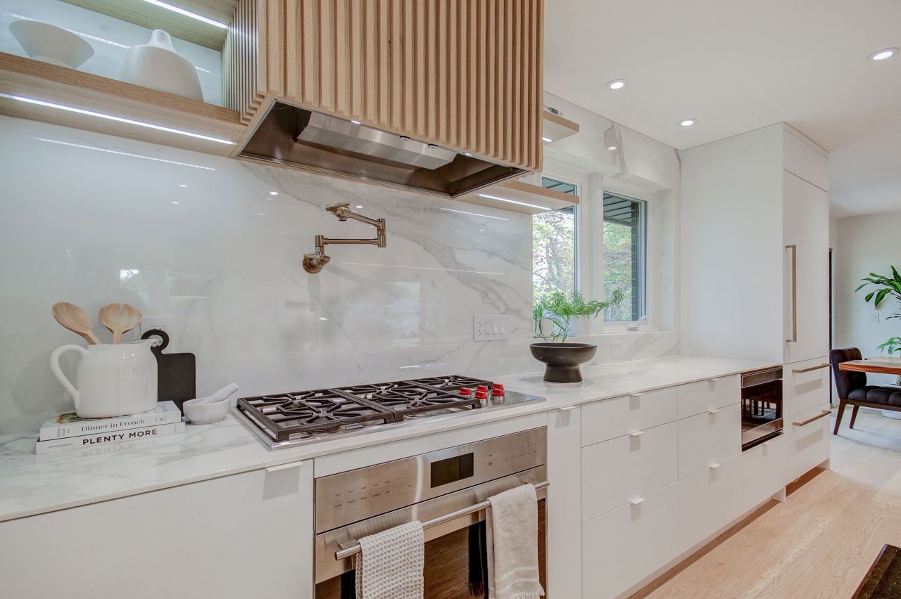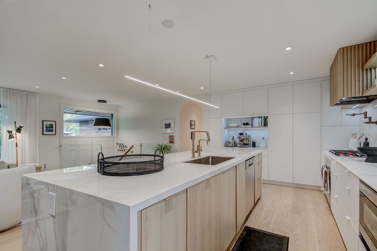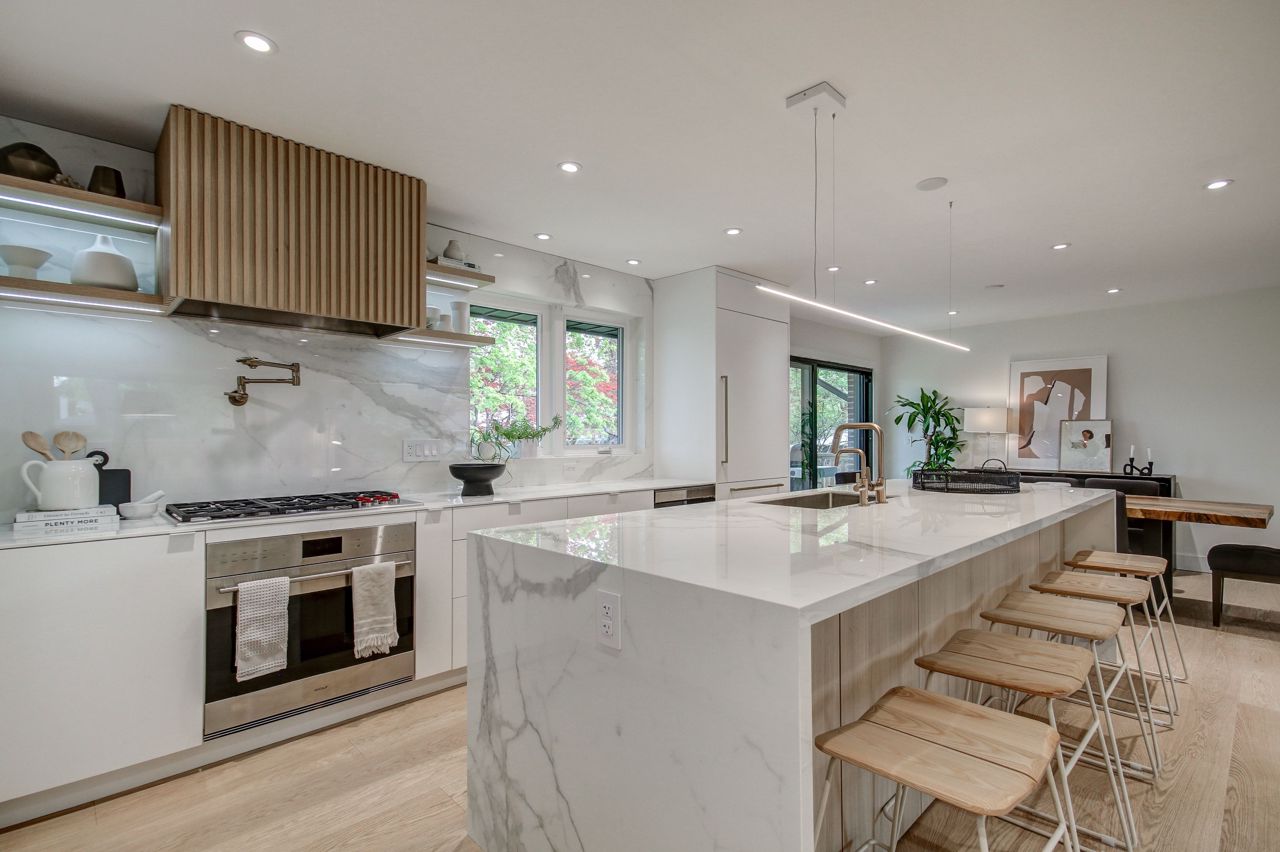 Absolutely Sensational, picture perfect renovation in the heart of the Princess- Rosethorn Neighbourhood. The epitome of "top of the line", this half a million dollar renovation on a picturesque 66 X 120 ft well manicured, pool sized lot needs to be seen to be appreciated. 3 +1 bed, 3 bath with a 2 car garage and oversized windows bathe the entire house in natural light. The open concept living room with new "Fyre" brand open log set gas fireplace is combined with the dining room and an incredible chefs kitchen perfect for entertaining guests. Magazine worthy kitchen featuring a built-in Sub Zero fridge, Wolf gas range, Wolf stove, microwave drawer, built in wine fridge and huge centre island wrapped in gorgeous stone. White plank Austrian white oak floors throughout the top level. Principle bedroom with spectacular new ensuite bathroom and walk out to back deck. Cozy lower level with 4th bedroom, wood burning fireplace and wet bar. Fantastic location close to great schools and parks.Kitchen appliance package was just under $50k. Stone counters and backsplash, kitchen Faucets from Brizo, bathroom faucets from Aqua Brass and Rubinet. Floors are unknotted Austrian white oak. Designer light fixtures.