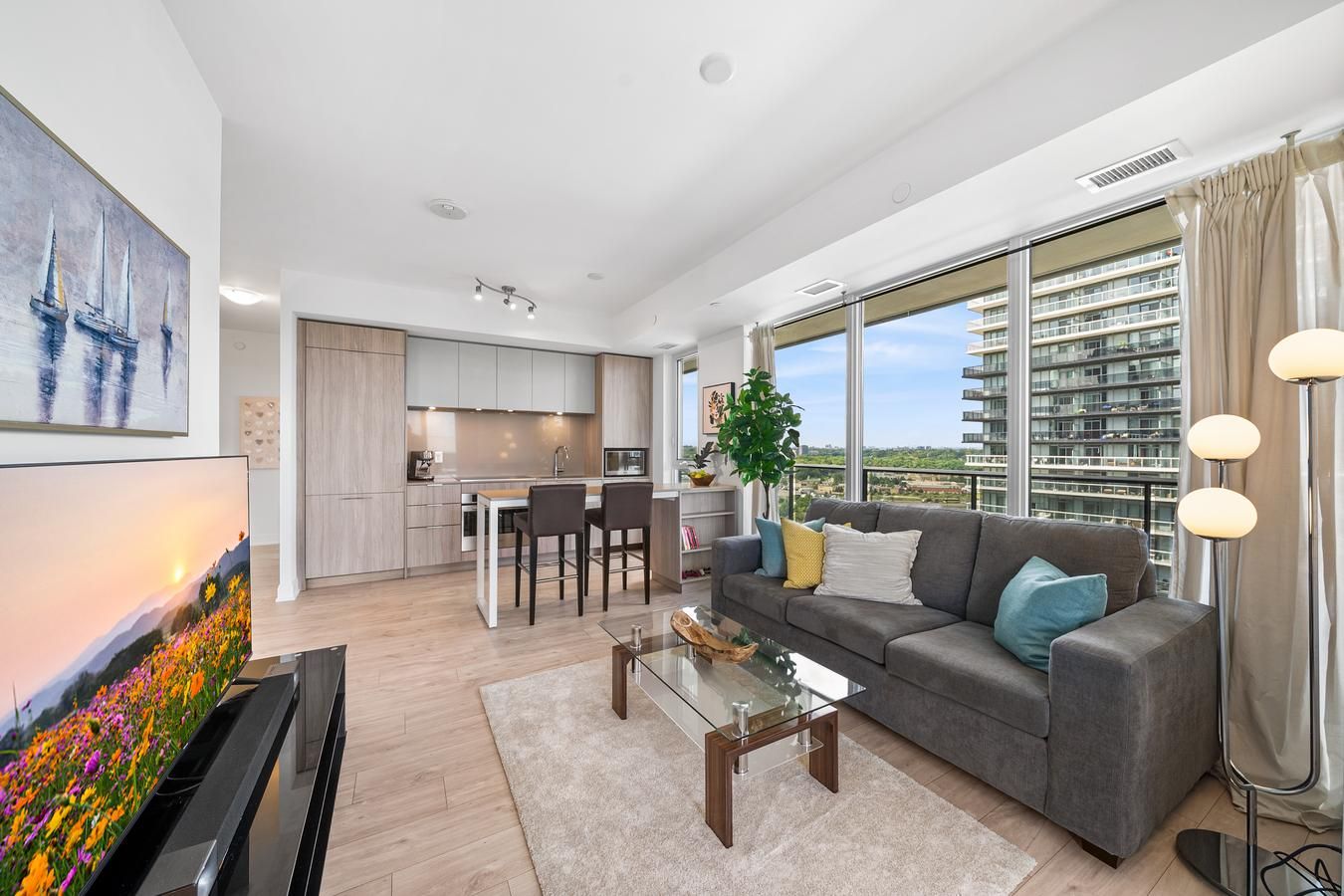 Stunning Views Of The Lake From The Wraparound Balcony (Over 315 Sqft) Of This Modern & Open-Concept Suite At The "Vita On The Lake" (1 Yr Old Building)! The Super Bright Kitchen Includes Built-In Appliances, Plenty Of Cupboard Space, Sleek Countertops & A Center Island Making It A Perfect Space For Cooking And Entertaining. Large Windows Flood The Open Space With Lots Of Natural Light, Creating A Serene & Cozy Setting For Relaxation & Enjoyment In The Living Room With Walkout To The Balcony. Primary Bedroom Features A 4pc Ensuite, Large Closet, As Well As A Walkout To The Balcony! Work From Home? Den Offers The Perfect Space For A Home Office. Fantastic Amenities Such As: Gym, Outdoor Pool, Sauna, Billiard Room, Party Room, Communal BBQs & Gathering Area Perfect For Socializing & Unwinding. Near QEW, 10 Min Drive From Downtown Toronto. Steps To Variety Of Shops & Restaurants, Waterfront Cycling/Walking Trail And Humber Bay Park, Shores And Beaches. A Must See Place!Excellent Location! Don't Miss Out On This Luxurious & Desirable Condominium!