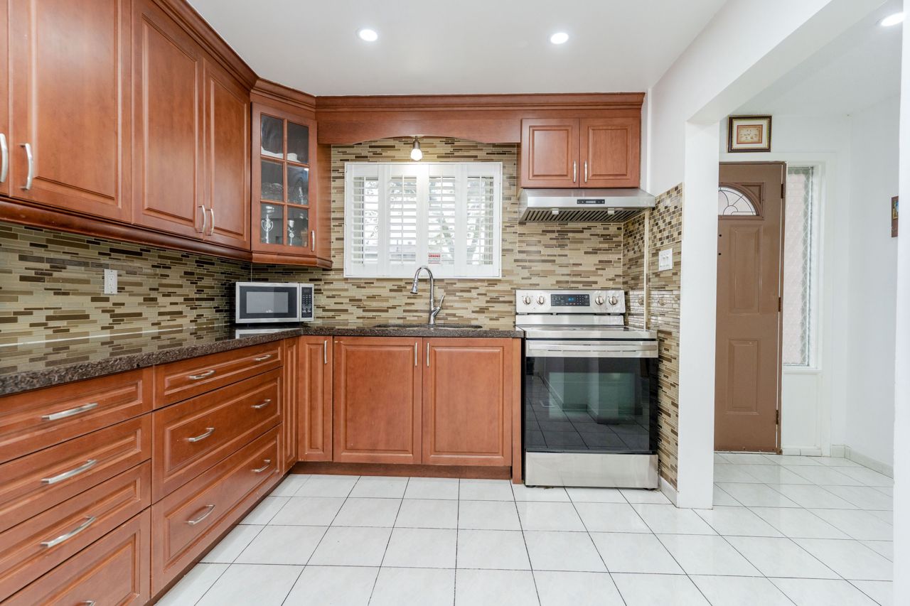LOCATION!!! This Beautifully Kept 3 +1 Bedroom Family Home!! UPGRADED WASHROOMS, DRIVEWAY, PATIO, granite countertops in kitchen, sepertae enterance to the 1 bed 1 bath basement apartments. Close To 401, Schools, Shopping, Transit, Place Of Worship (nugget Mosque closeby), Private Backyard Backing Onto Park,, New Bathrooms 2023, Sunken Living Room, And So Much More.Washer, Dryer, Window Coverings, Elf's, Fridge, Stove, basement appliances. *Additional Separate Shower In Basement* Buyers Agent To Verify All Measurements And Taxes