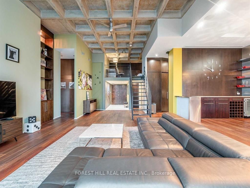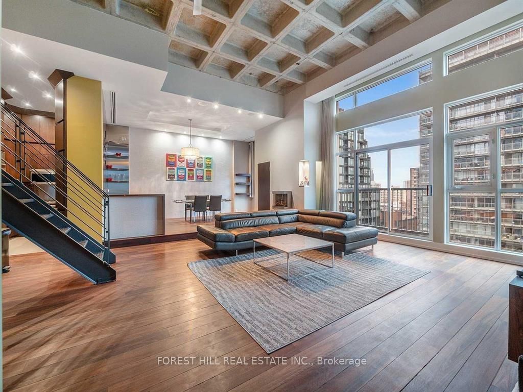 Welcome to the entertainer's dream loft. This stunning 2+1 penthouse loft is in the heart of the city and just steps to Yorkville. Boasting 1,507 sq.ft of exquisite space, this boutique condo offers an unparalleled blend of style, comfort, and convenience. 8 Wellesley is a rare investment opportunity as it falls into a small group of condominiums which allow for STRs (short term rentals). Capitalize on Toronto's thriving hospitality industry and maximize your investment potential with ease. Whether you're looking to generate passive income or establish a place to call home in this lively neighbourhood, this residence offers endless possibilities. Soaring 13.5-foot concrete coffered ceilings and an expansive layout provides ample space for relaxation, work, and entertainment. Experience the meticulous attention to detail throughout, including a custom industrial iron staircase to the mezzanine, mahogany flooring, a fully upgraded 6 piece ensuite in the primary bedroom, and a beautiful galley kitchen. The large windows flood the interior with natural light, creating a warm and inviting ambiance. From trendy cafes and boutiques to world-class cultural institutions, everything you desire is just steps away. Embrace the vibrancy of city living while enjoying the tranquility of your private sanctuary.