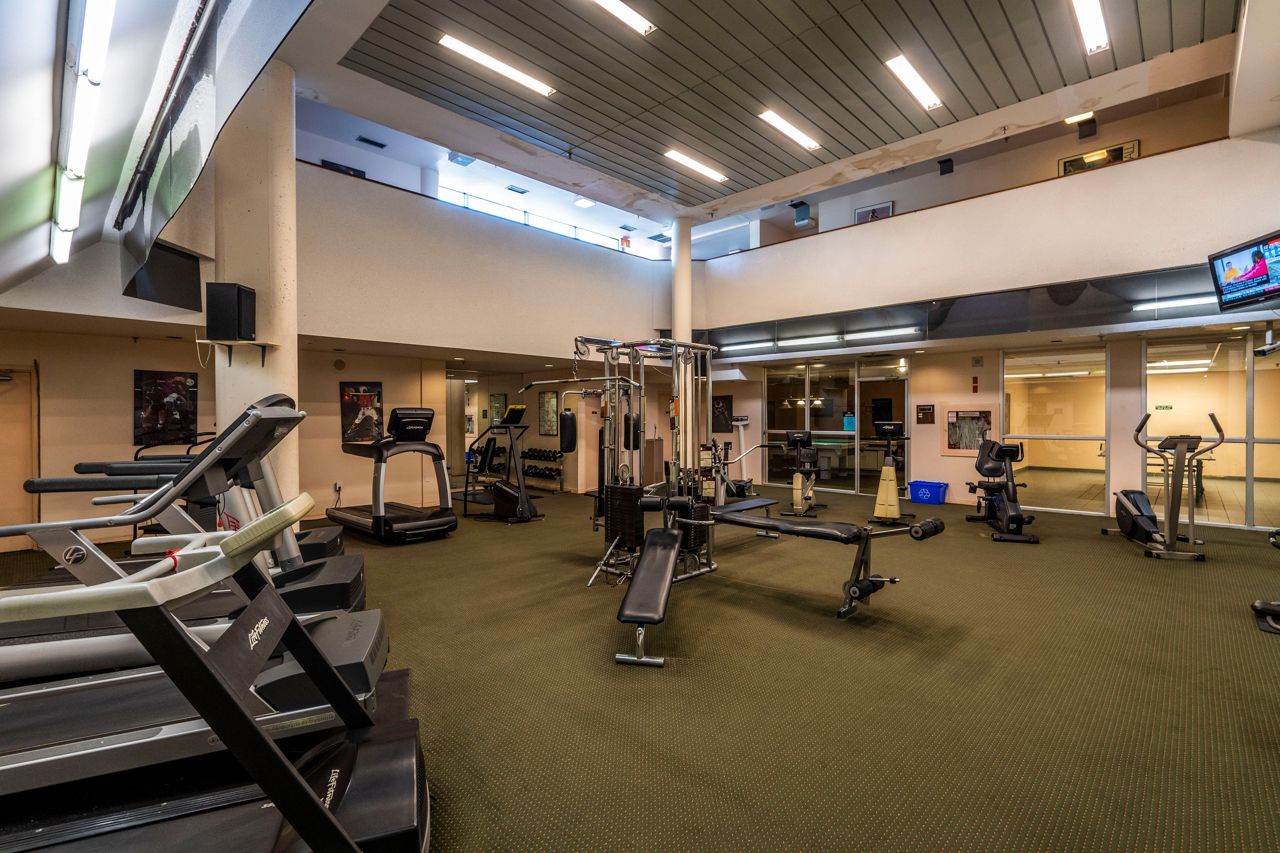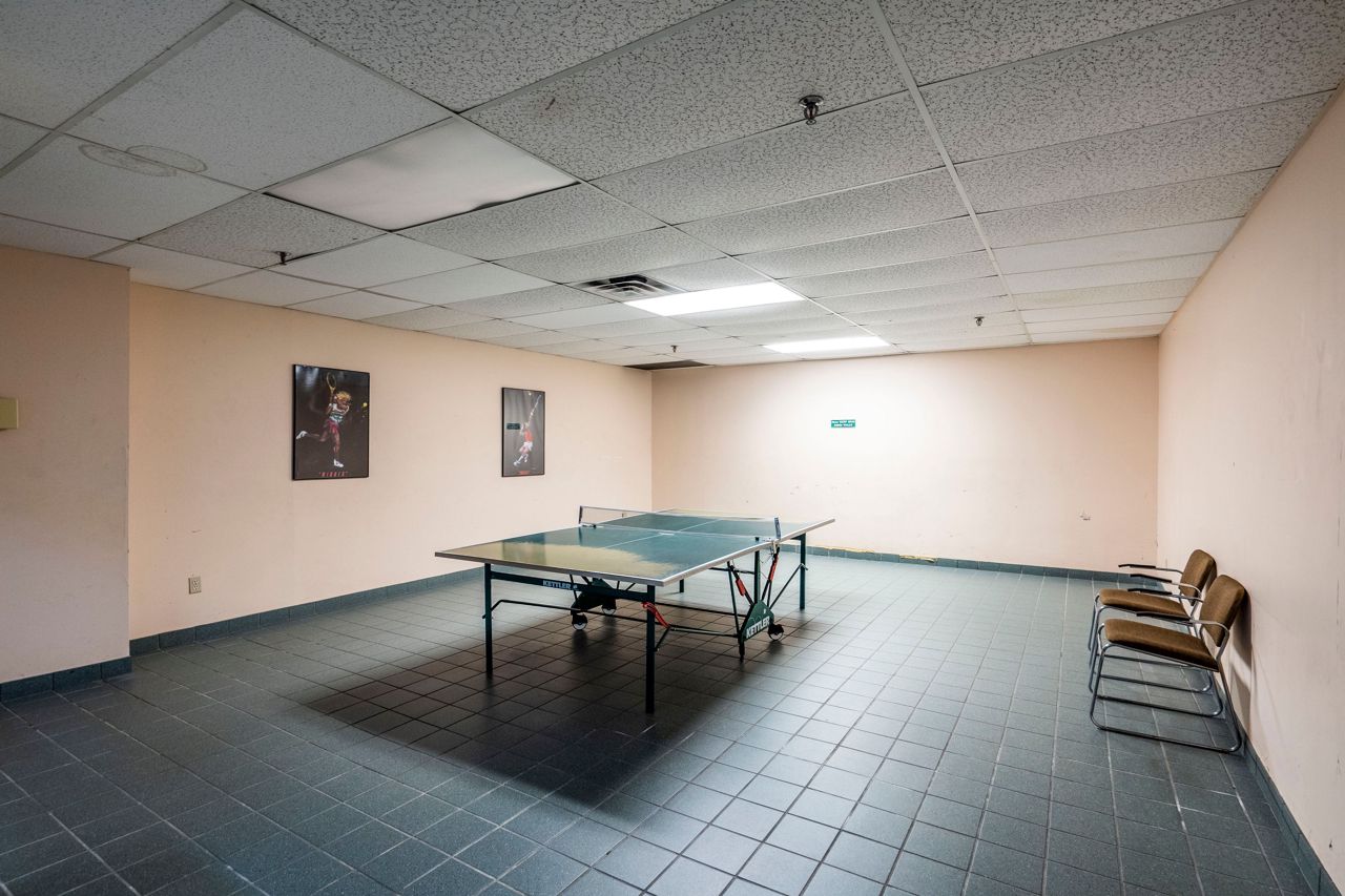 这栋大楼设有许多便利设施:游泳池、健身房、桑拿房、派对室、壁球场、室外网球场、台球桌和乒乓球桌。