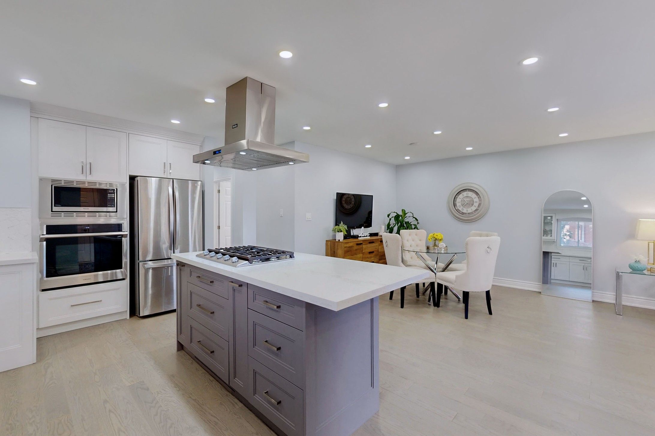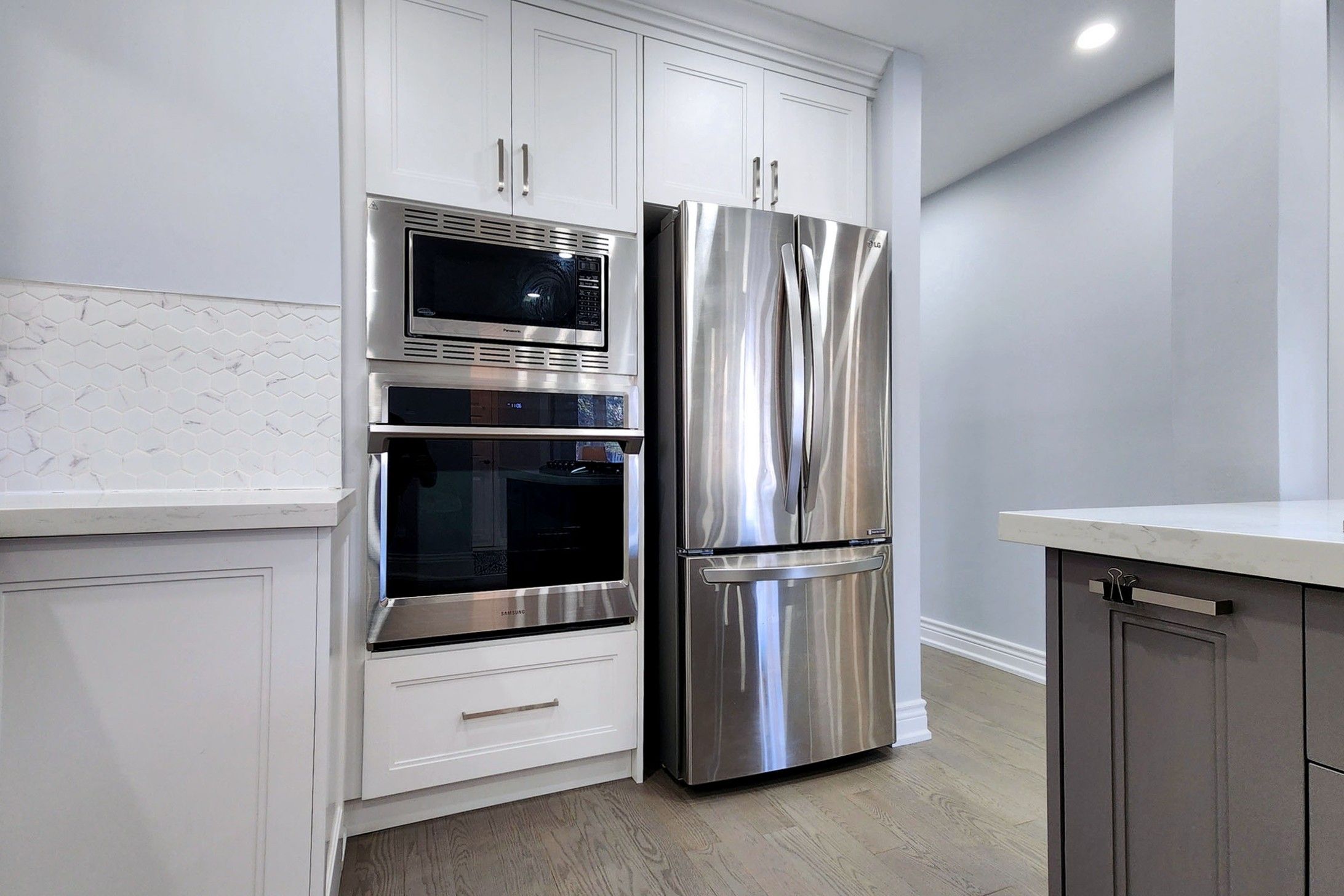 A beautiful home nestled among lush trees with a backyard merging seamlessly with Bellbury Park, offering privacy and space. A picturesque setting with fruit trees and pristine lawns awaits. Inside, a contemporary upgrades, including a modern kitchen with sleek cabinets, built-in microwave, and oven to the cabinet. Enjoy pot lights, hardwood, and laminate flooring throughout. A cozy rec room and office space offer entertainment options. Relax in the Cedar Sauna room or exercise in your private space. Ample storage with covered shelves and a workshop. An inviting interlocking pathway leads to a stunning backyard with park views. Front and backyard sprinklers simplify lawn care. Upgrades include appliances, window coverings, roof, fences, furnace, AC, garage door, and entrance door. More than a house; it's your luxurious sanctuary!Built-In Cabinet Oven & Microwave, Built-in Gas Stove on Island, S/S Ceiling Mount Range Hoods, S/S Refrigerator, S/S Dishwasher, Front Load Washer & Dryer, all existing windows coverings and light fixtures, Garage opener/remote