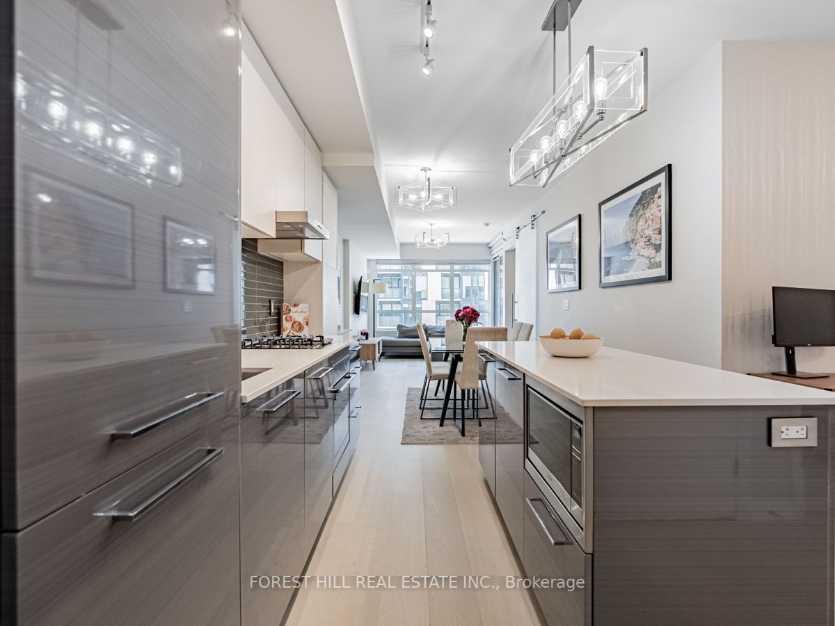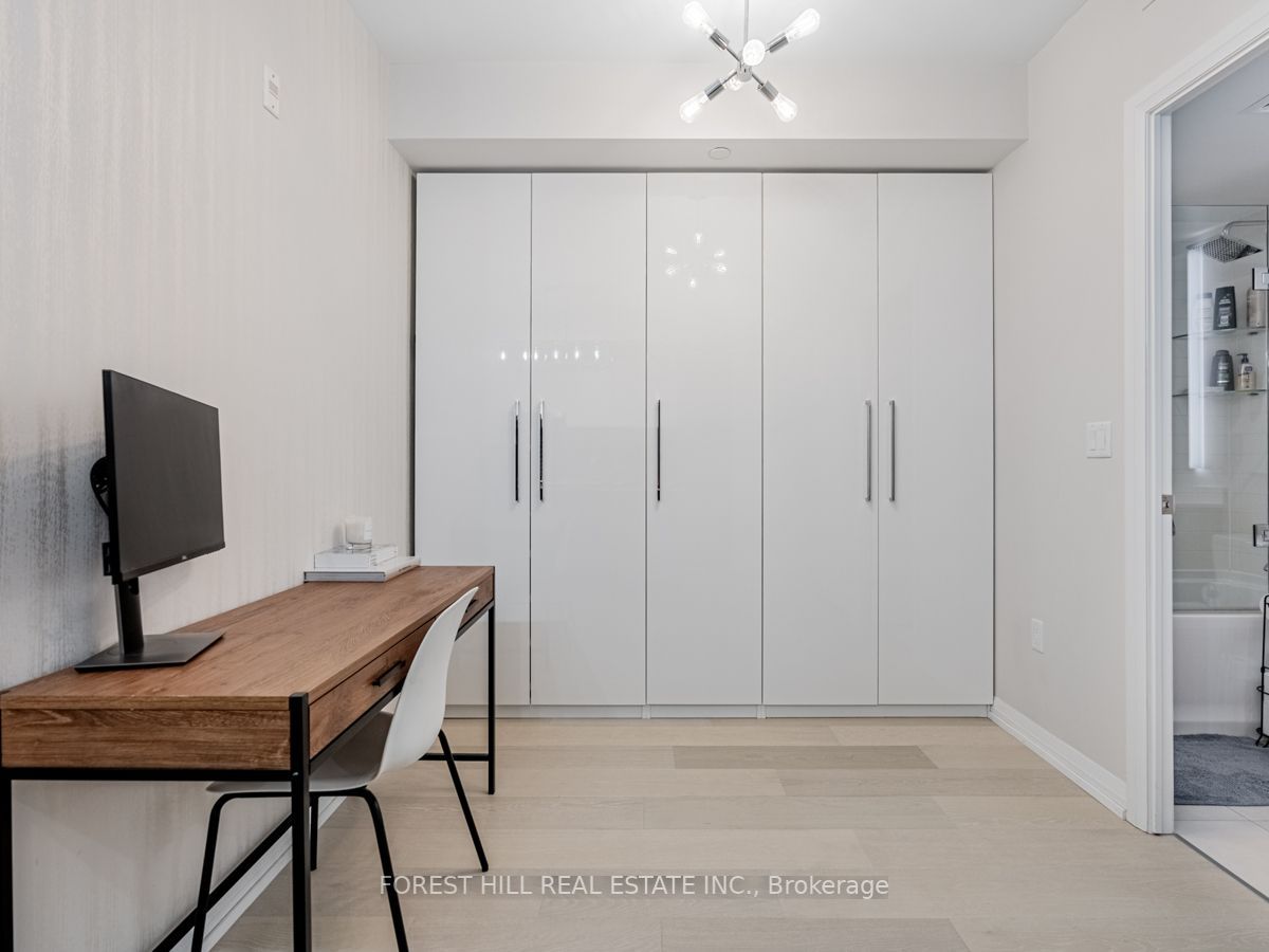 Gorgeous, modern, spacious move in ready condo @ The Nest in the Heart of Wychwood! 1+1 bedroom, 2bathroom unit with efficient floor plan. Plus one can be used as home office! Kitchen w/ integrated apps, great sized island, quarts countertops gas cooktop, cabinets/built ins throughout. Room for dining table that seats 6-8 people, remote blinds for floor to ceiling window in family room. BBQ gas line on balcony. Steps to all St.Clair west shops, restaurants, subway and TTC. Do not miss this one!New hardwood floors throughout. Speak to LA about closet bedroom