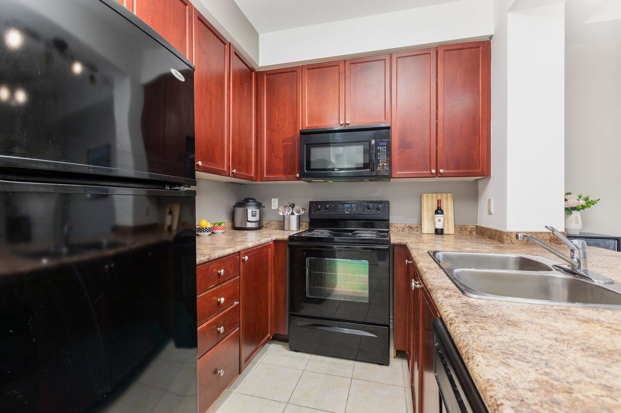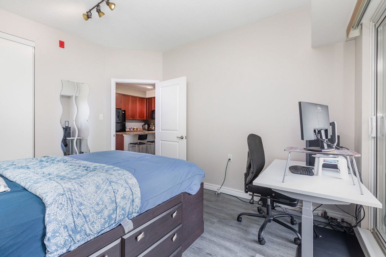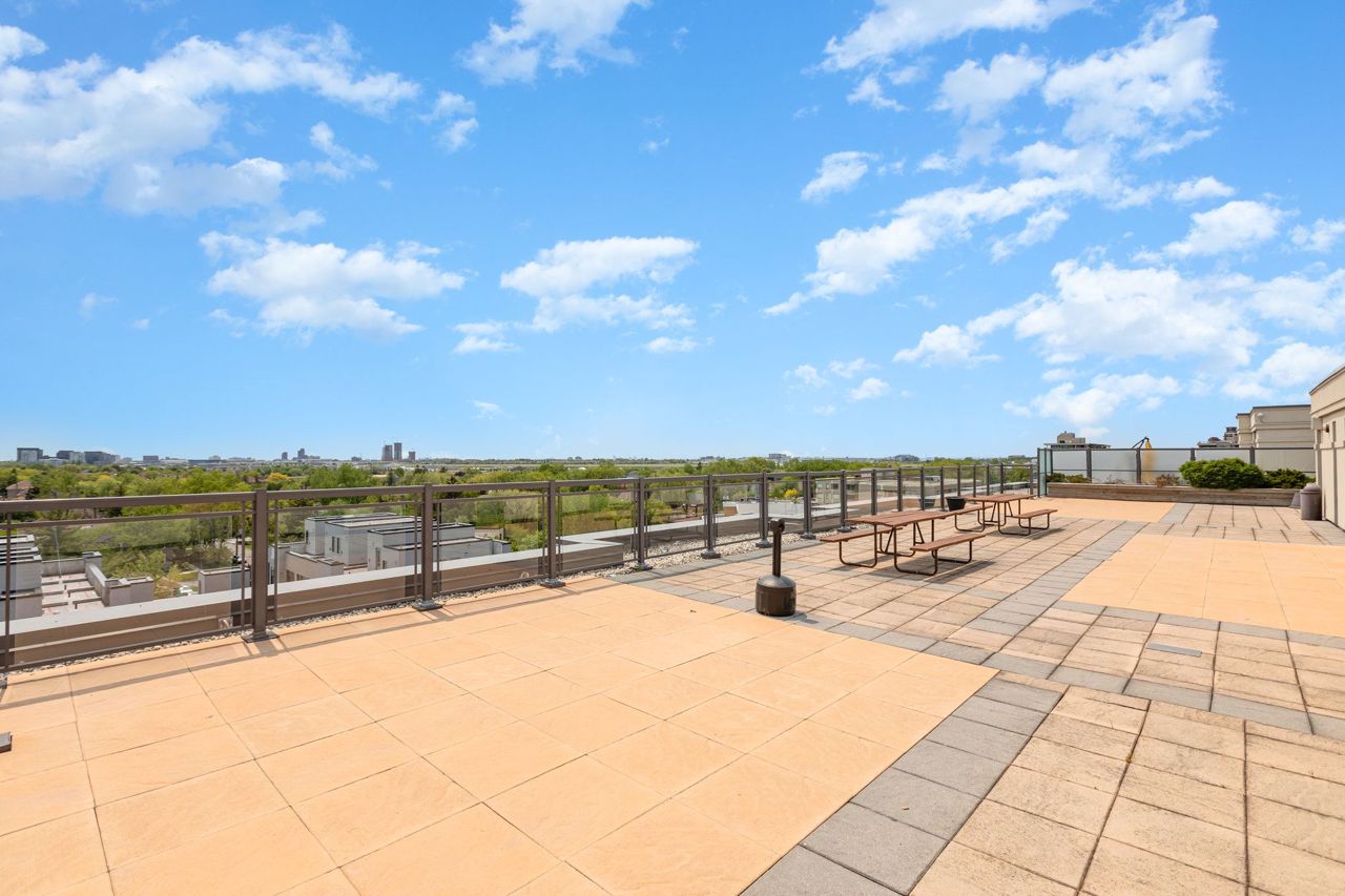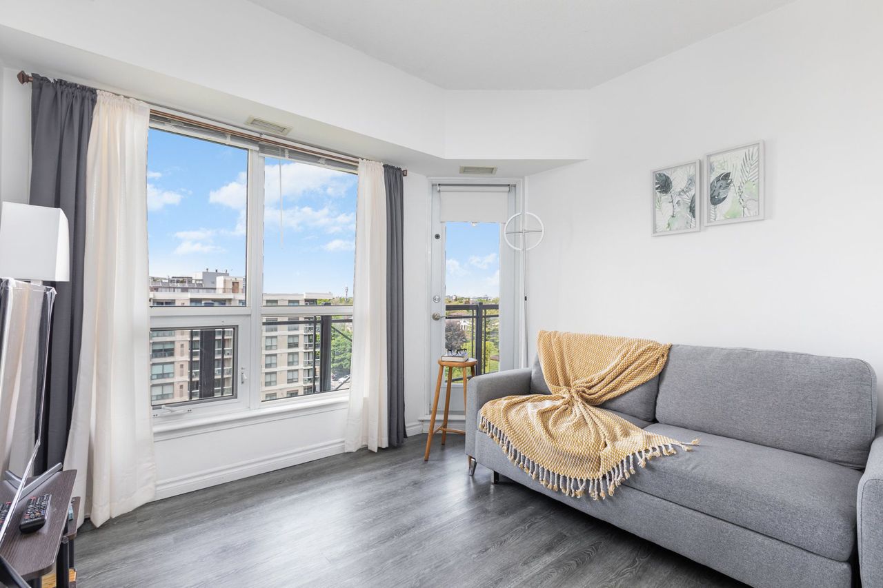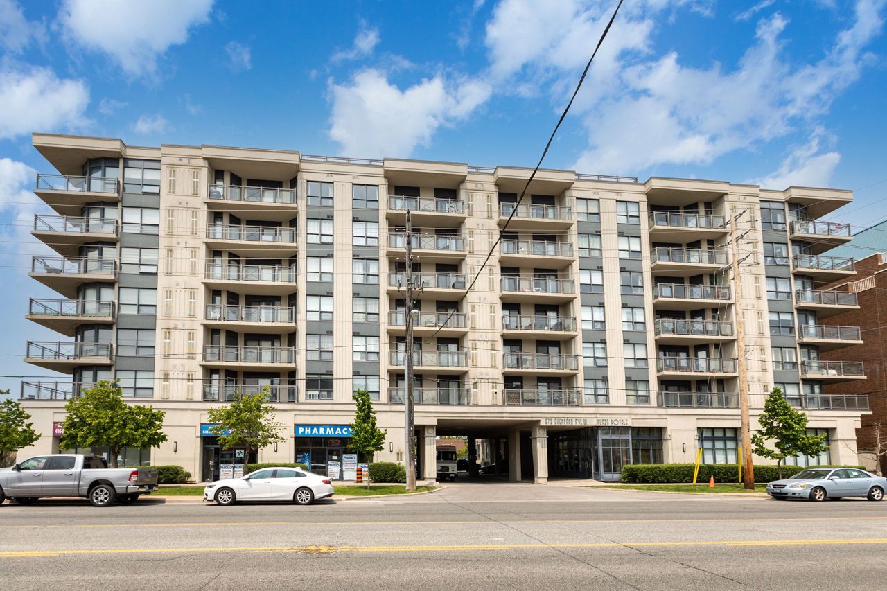 Beautiful and naturally bright 1 Bed + 1 Den West Facing Condo Apartment at The Plaza Royale! Features a Spacious Kitchen w/ Breakfast Bar, Balcony with Sunny West View, and Renovated with Vinyl Flooring Throughout. Great sized den with door for added privacy, can be used as a second bedroom. Unbeatable central location just a short walk to Sheppard West TTC Subway Station. Features close proximity to Highway 401, TTC Subway Station, Costco, Yorkdale Mall, Groceries, Downsview & Earl Bales Park, and more! Very low maintenance fees and very well managed building. Terrific Building Amenities Include Sauna, Gym, Party Room, Rooftop Terrace w/ BBQ, Visitor Parking, Bike Storage.All existing Appliances and Fixtures Included: Fridge, Dishwasher, Stove, Microwave, Stacked Washer+Dryer, Electrical Light Fixtures, Blinds. One Underground Corner Parking Unit + One Storage Locker Included.