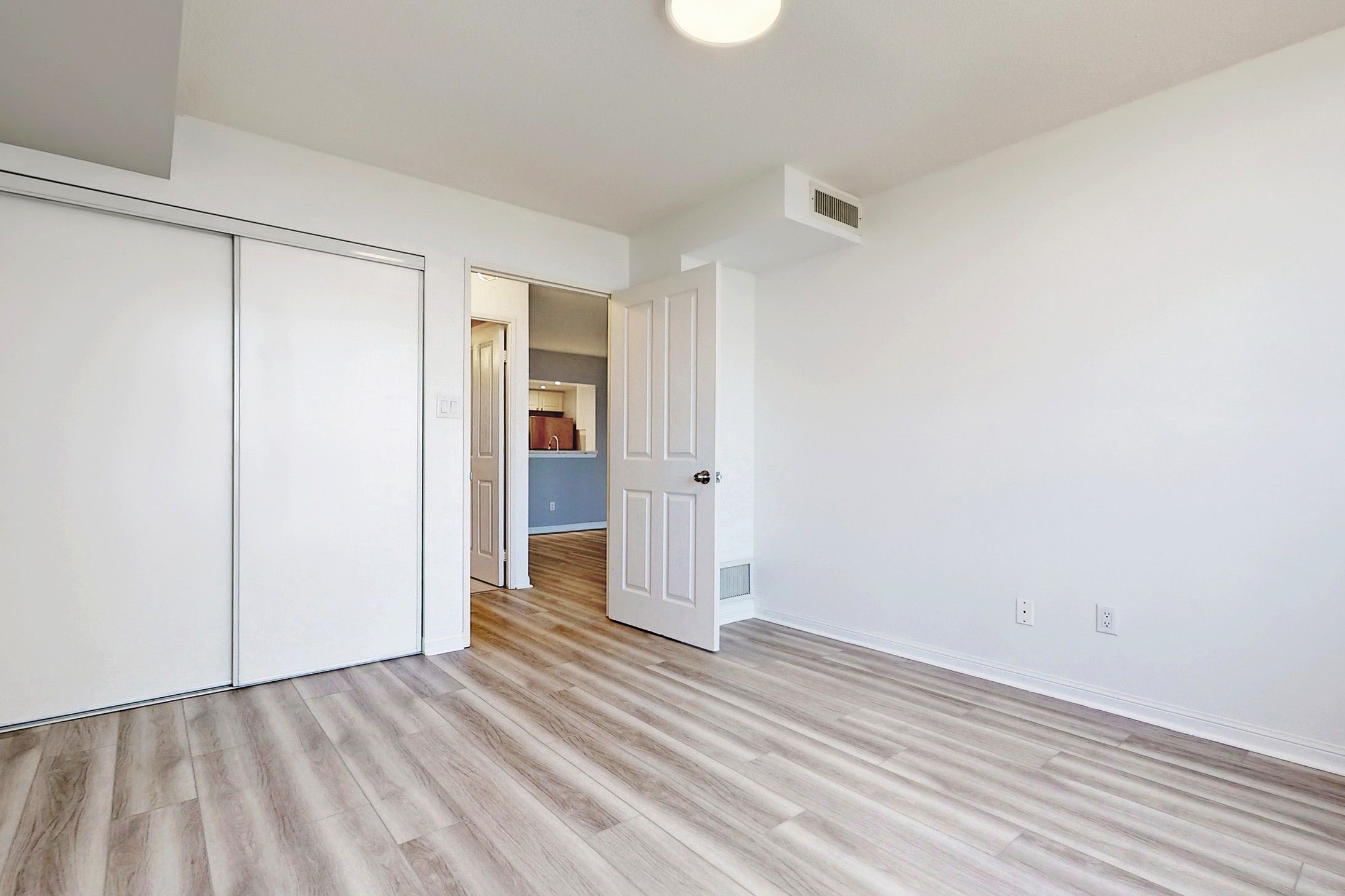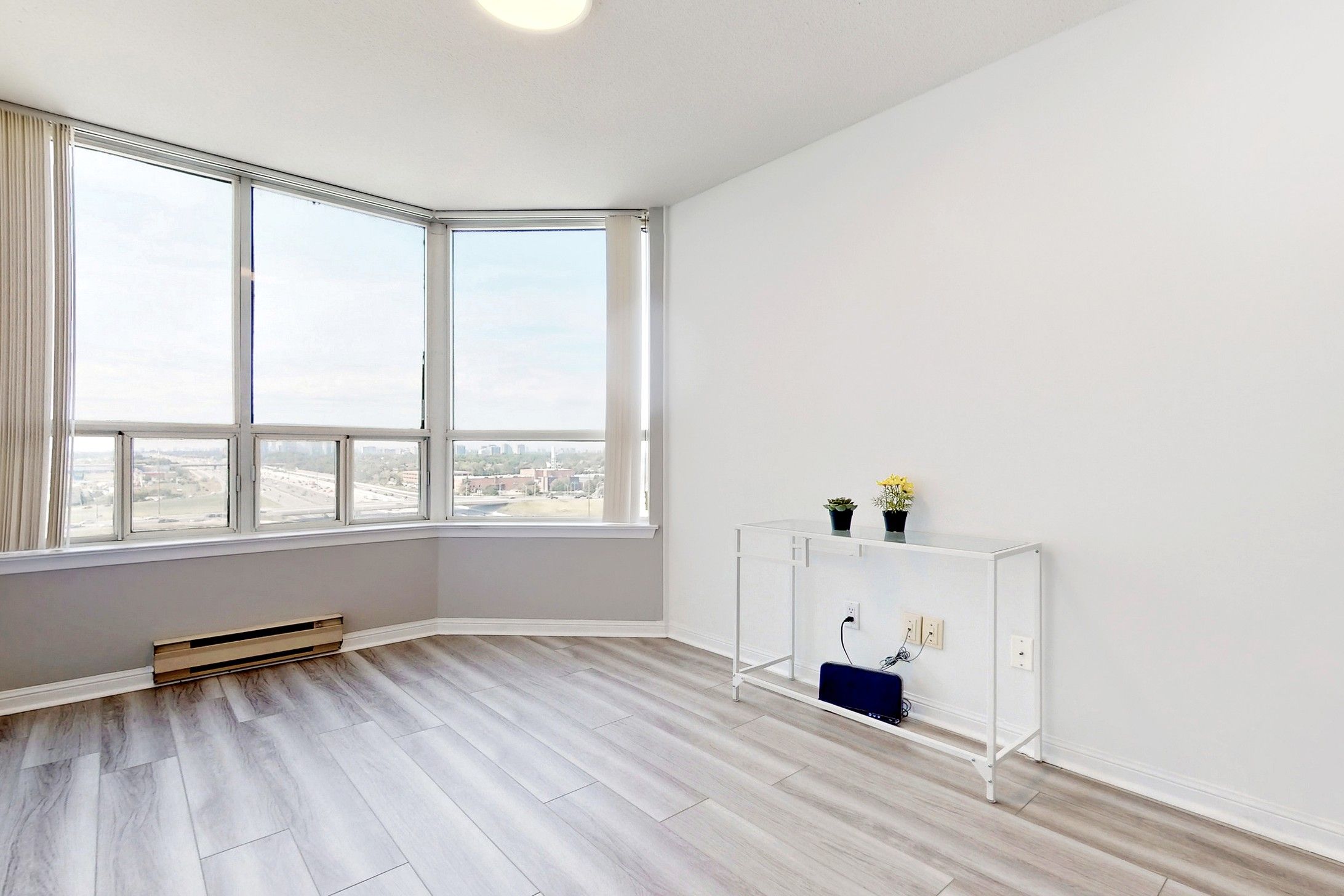 LIVE IN THE LAP OF LUXURY AT 88 CORPORATE DR...IT'S SPACIOUS (SEPARATE LIVING 7 DINING AREA) & SOUGHT AFTER, SUPPER COVENIENT TRIDEL CONDO WITH THE MILLION DOLLAR FACILITIES! TASTEFULLY COMPLETED HALLWAY RENOVATION ON ALL FLOORS (EN-SUITE SECURITY SYSTEM, WALLS, CARPET, NEWLY PAINTED SUITE DOORS) THIS BEAUTIFULLY KEPT, 16TH FLOOR, WEST FACING 1=1 BEDROOM CONDO HAS BEEN FRESHLY PAINTED AND CLEANED. IT SHOWCASES RECENTLY INSTALLED RICH COLOURED VINYL FLOORING, A WARM AND INVITING SOLARIUM (AS GOOD AS SECOND BEDROOM/HOME OFFICE/KIDS ROOM ETC) & AN IDEAL SIZE BEDROOM WITH TONS OF CLOSET SPACE. EXCELLENT VIEWS OF OUTDOOR SWIMMING POOL AND TENNIS COURT FROM BOTH ROOMS. IT INCLUDES SUPER CONVENIENT ONE UNDERGROUND PARKING SPACE, EN-SUITE LAUNDRY AND BIG SIZE LOCKER. RECENTLY UPGRADED WHITE KITCHEN WITH QUARTZ COUNTERTOP AND POT LIGHTS. HI GH QUALITY APPLIANCES UPGRADED IN SEPT 22: PERFECT PLACE TO OWN OR INVEST.GREAT AMENTIES INCLUDE BOWLING, SQUASH, TENNIS, A GYM, SAUNA, BILLIARDS, INDOOR/OUTDOOR POOLS, PARYY ROOM, FREE CAR WASH STATION, 24 HOUR SECURITY, AMPLE VISITOR PARKING, ROOFTOP PATIO, GUEST SUITES, BADMINTON COURTS, LIBRARY, CARD ROOM...