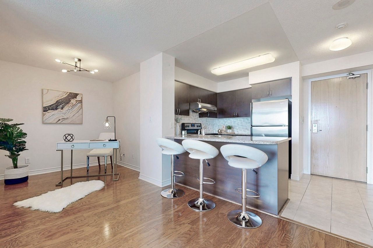 Move in ready! Well Kept 1+1 Bdrm Unit, Functional Layout In The Highly Desired Altitude Condos! Spacious & Bright, Unobstructed East View. Open Kitchen w/ Granite Counters, A Breakfast Bar & S/S Appliances. Parking, A Locker & Ensuite Laundry. Excellent Amenities Includes A Theatre, Gym, Library, Pool, Guest Ensuites & 24/7 Security. Shopping, Restaurants, Ymca, Ttc/Rt/Stc/401 All Within 5 Min Drive/Walking. Don't Miss This Great Opportunity To Own A Unit In This Amazing Tower!Fridge, Stove, Washer And Dryer, Dishwasher. Existing Window Coverings.