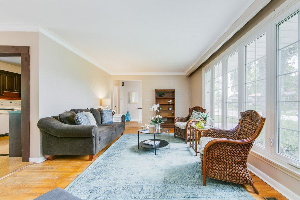 Warm, inviting home; great lot; attractive enclave of nice homes between Kipling/Martingrove, S of 401. Spacious 3+2 bdrm, bungalow. Approx 2400 sq.ft. finished space. Large L-shaped living room/dining room w/ huge south-facing window. Patio door walk-out to one of two decks. 2nd patio door exit to cosy 2nd deck overlooking beautifully-treed yard. Original hardwood thru LR, Hall, 2 Bdrms. Fully-finished lower level. Well-lit rec room, and large den leading to add’l bdrms, 2-pc bath, laundry. Single garage w/ overhead storage + large recently-sealed, double drive. Public, separate, secondary and French-emersion schools and parks within walking distance. Great location! Only 1 minute to the 401 or 427, two minutes to GO, five minutes to Airport or 400, ten minutes to Sherway Gardens, QEW or bus to Bloor subway. Whether commuting, visiting out of town, heading north to the cottage, or grabbing an airline flight south, this home gives you EZ-PZ access to virtually every destination.Former senior's home. Gas FP not used in years & not warranted. Roof around 5 yrs. Stove, DW in working as-is condition & likewise, SS Fridge/Washer/Dryer/AC @ approx 2 yrs old. Very clean Home Inspection Report available. Flexible closing.
