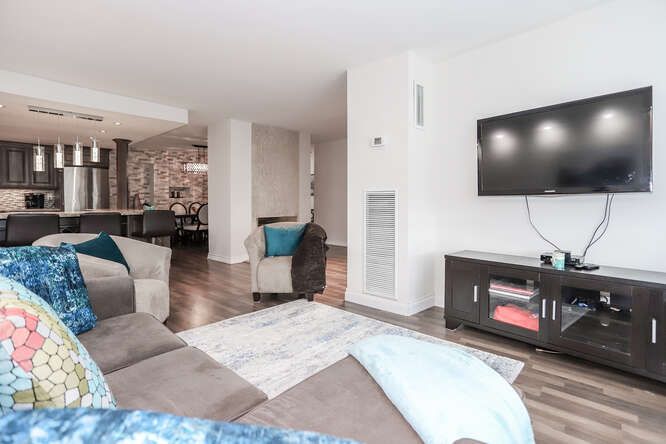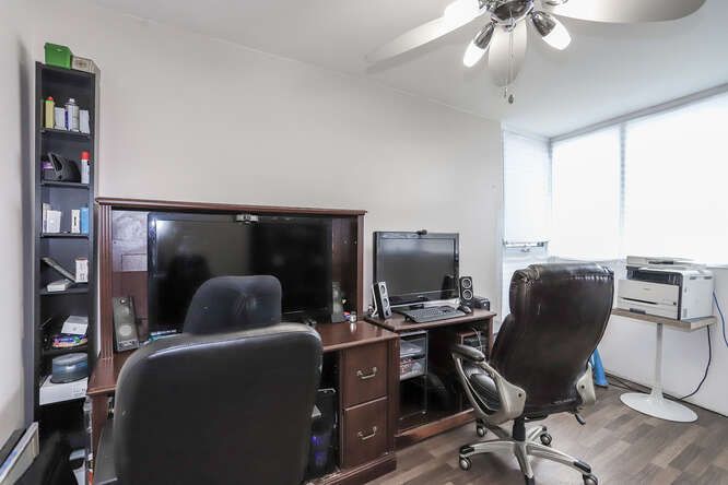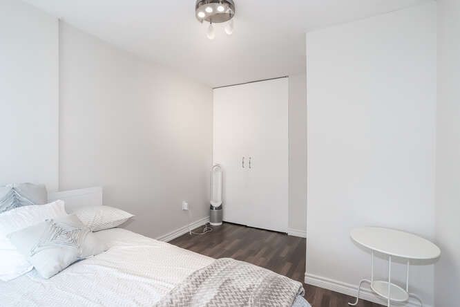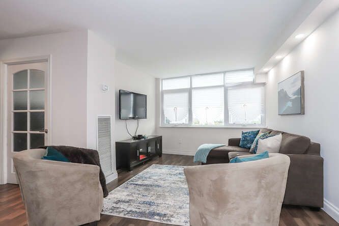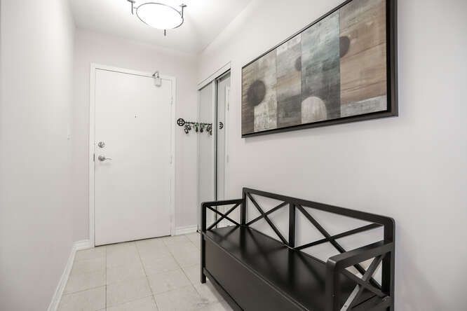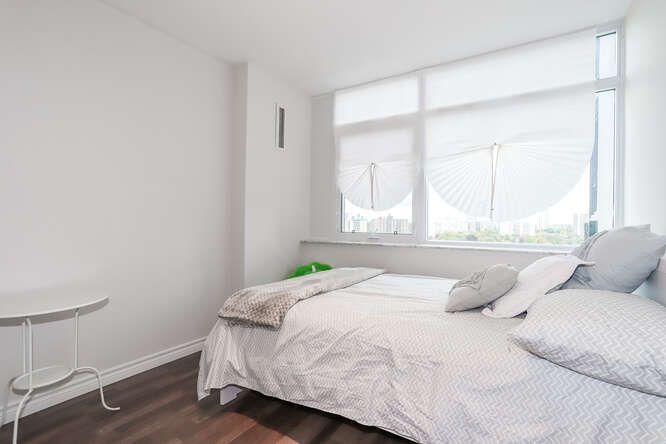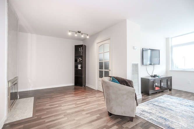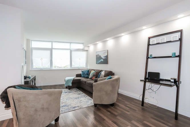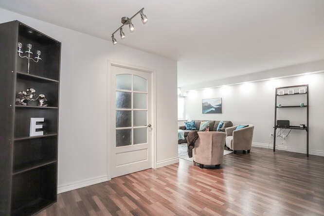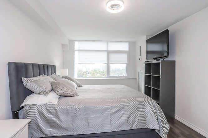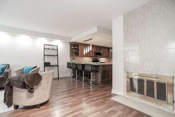 Located in a prime area, this property is within walking distance to parks and essential amenities. Enjoy the convenience of easy access to highway 401 and a bus stop right at your doorstep, offering direct routes to the subway and York University. The unit has undergone extensive renovations, featuring a custom-designed kitchen and bathrooms. The open-concept layout is bathed in natural light and offers a stunning view of downtown. Notable features include custom mirrored closet doors in both the hallway and primary bedroom. The solarium, currently used as an office, is spacious enough to serve as an additional bedroom if desired. Relax by the fireplace in the cozy sitting area or entertain guests in the generously sized dining and living rooms. The kitchen boasts extra-deep cabinets, a stylish backsplash, and modern pot lights. Storage won't be an issue with ample cabinet space and a dedicated linen closet. The laundry area is equipped with a side-by-side washer and dryer.Fridge, stove, built in dishwasher, built-in microwave, washer, dryer, all existing electrical light fixtures, new windows.