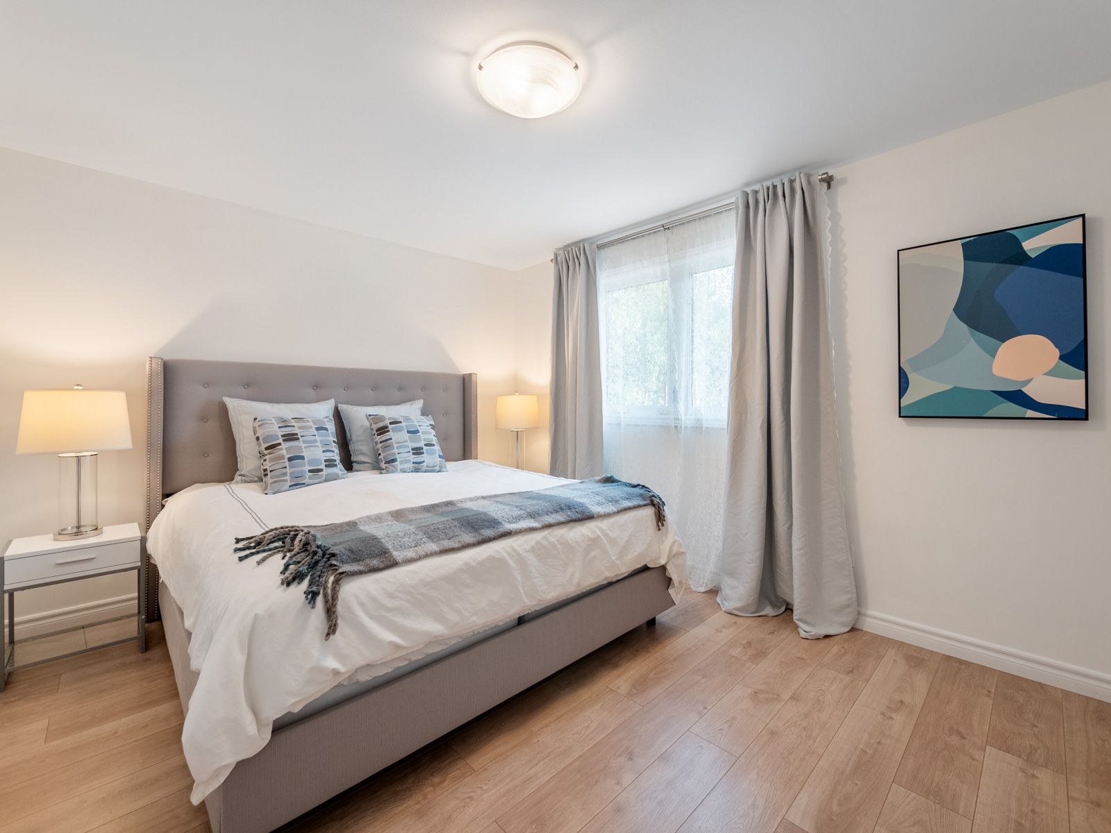 Welcome to 91 Hollyberry Trail, a beautifully upgraded home featuring 3+1 bedrooms and 2 bathrooms. As you step inside, you are greeted by a charming foyer with a convenient mudroom, leading into a sun-drenched living area adorned with sleek laminate floors, modern pot lights, a French door, and sophisticated crown moulding. The spacious, newly renovated kitchen boasts stainless steel appliances, contemporary cabinetry, and a chic subway tile backsplash. The adjoining dining area walks out to a large, interlocked yard that backs onto mature trees, perfect for outdoor entertaining. Upstairs, the primary bedroom offers a walk-in closet for ample storage, accompanied by two additional bedrooms and a luxurious 4-piece bathroom. The finished basement provides a versatile rec room and a 4th bedroom/sleeping space. Located minutes from schools, parks, grocery stores, Old Cummer GO station, CF Fairview Mall, and highways 404, 401, 407, and 7, this home offers convenience and modern comfort! Top-ranked schools nearby include one of the highest-performing elementary schools in Toronto, Arbor Glen Public School, Highland Middle School and one of the top 100 high schools in Ontario, A Y Jackson Secondary School. Oversized detached garage with room to create a workshop inside. *Qualifies for a garden suite build, in the rear portion of the lot, under Toronto's new garden suite program*Full kitchen renovation with sink, appliances, cupboards all replaced and installed. All flooring completed 6 years ago, patio was re-stained summer 2024.