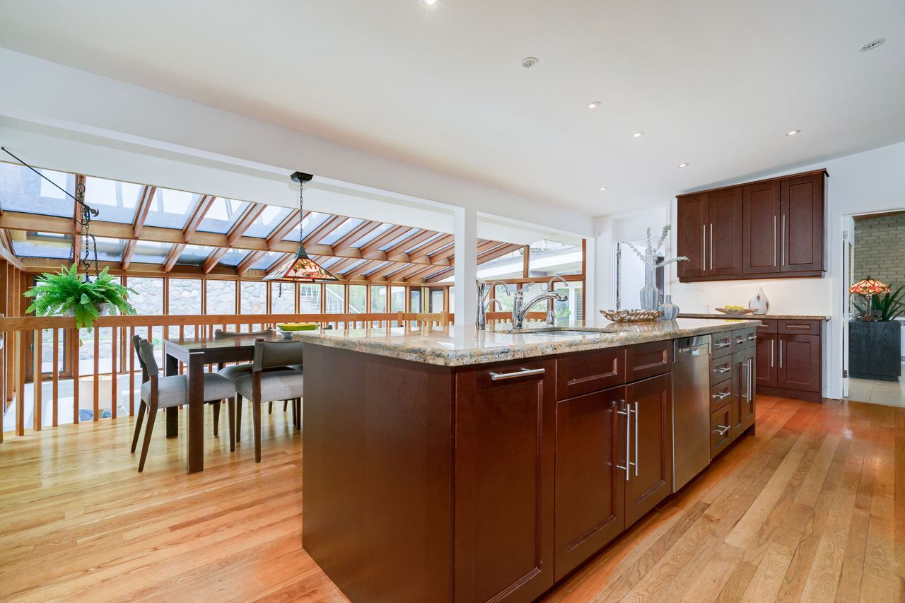 A Serene Setting - 93 Laurentide Drive. This substantial, over 5,800 sq.foot Mid-Century modern home sits on an impressive lot. Custom designed post and beam construction built into the hillside and thoughtfully set among mature trees give beautiful views in every direction. This clever split level plan affords privacy and yet has generous living spaces. An expansive kitchen looks over a skylit family area for easy entertaining. The .6 of an acre property complete with fieldstone walls, provides an opportunity to update a classic mid century design or create your own dream home. Located near a local tennis court, the prestigious Donalda club, excellent schools,TTC, nature trails, restaurants and shopping. A built-in 2 car garage plus ample parking along with proximity to highways and the downtown complete the picture . A country oasis in the city!