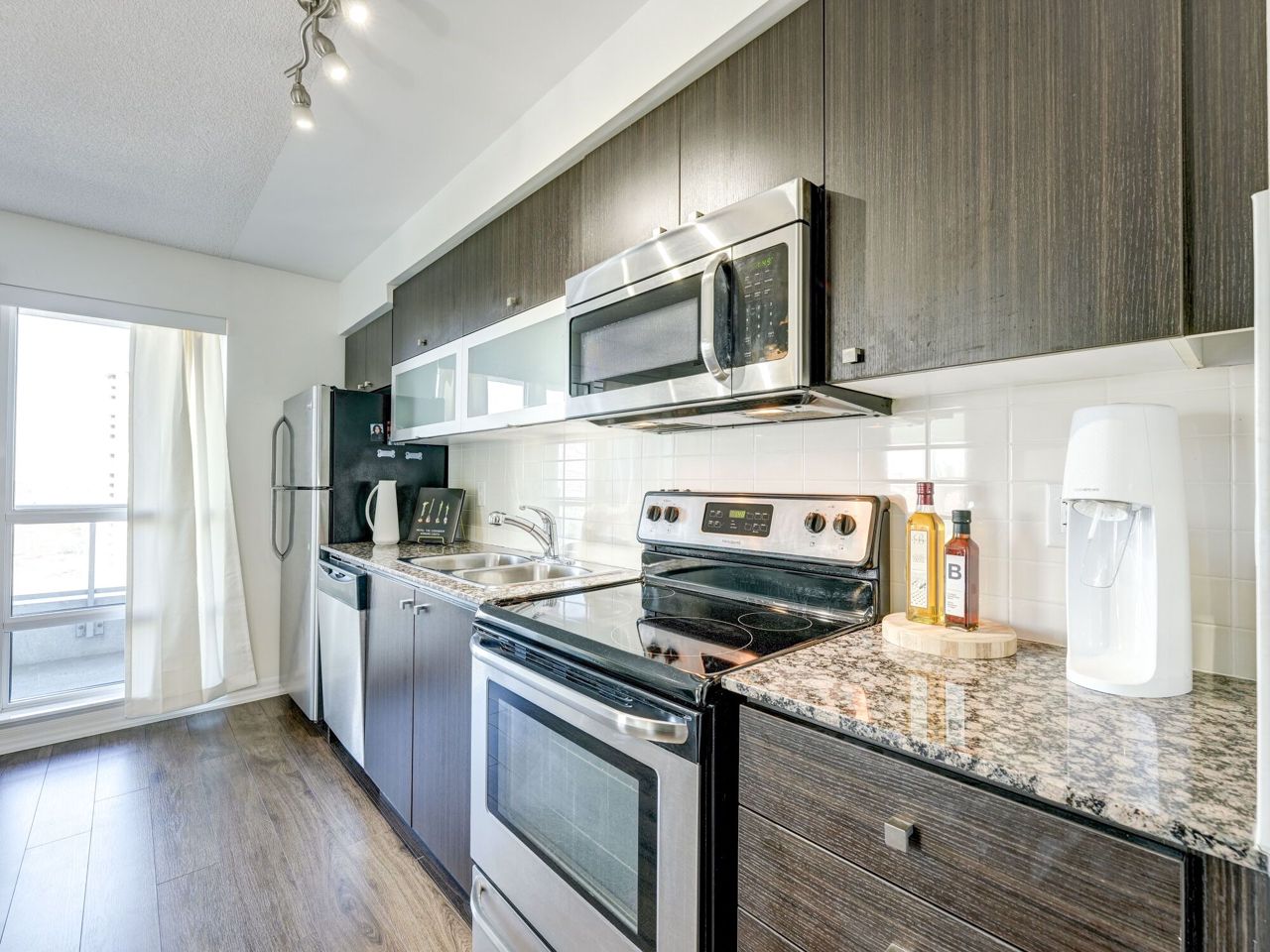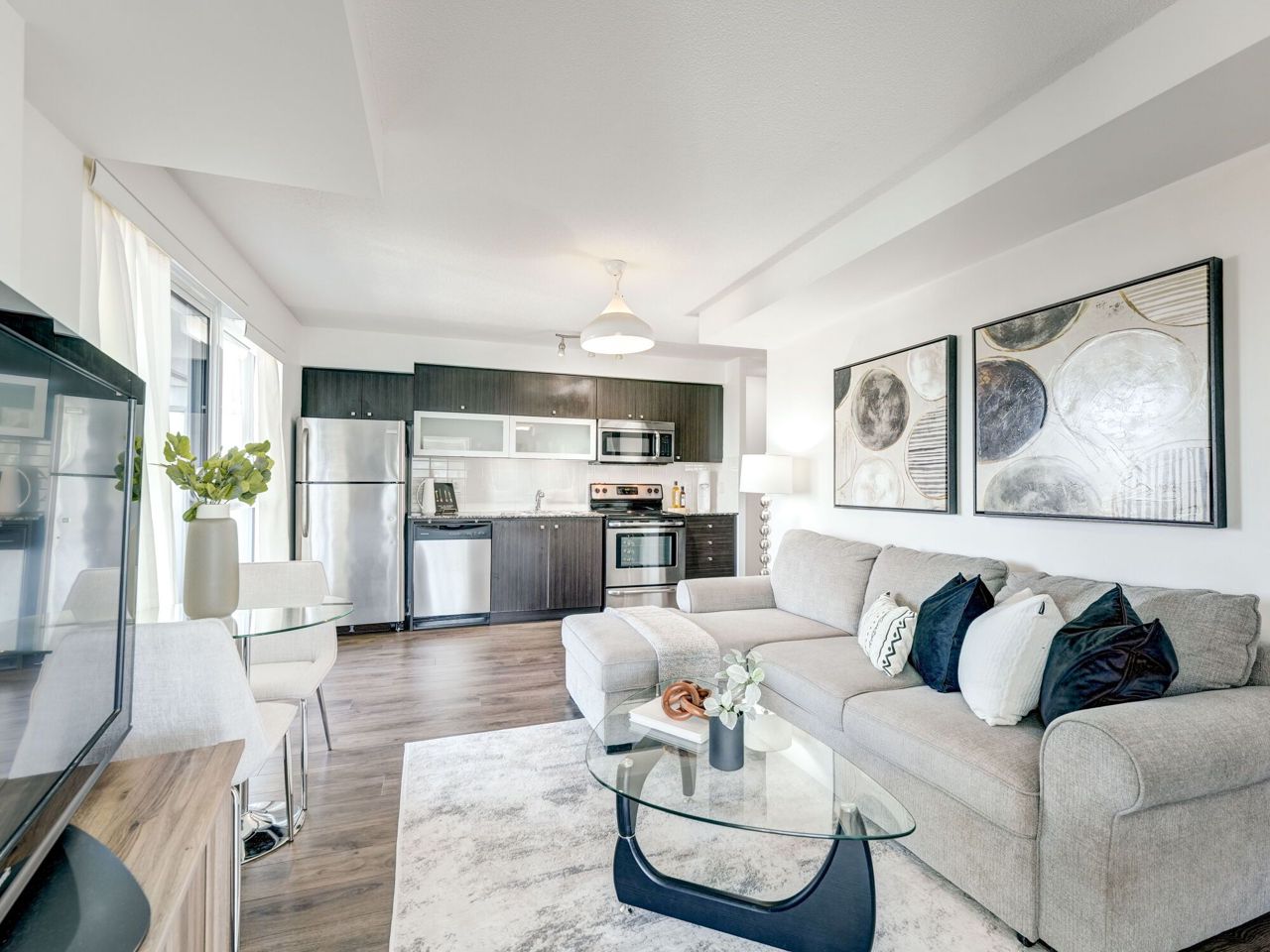 Discover the perfect blend of convenience and comfort at the Ultra building by Herons Hill. This 1-bed + den corner unit boasts stunning views, close proximity to highways & public transit, schools, universities, and hospitals nearby. Commuting is a breeze with educational and healthcare facilities just around the corner. Inside, with 665 sq/ft to play with, enjoy a spacious layout with a balcony that offers breathtaking cityscape views. Whether working from home or not, this unit provides ample space so that you can set up your home how you want to. The complex includes enticing amenities, 24/7 security, gym, pool, sauna and more. With all life's essentials nearby, it is perfect for first time buyers, downsizers and investors alike, so don't miss the chance to make this condo your urban oasis – schedule a viewing today and embrace a life of ease and elegance!Stainless Steel Appliances; Refrigerator, Oven, B/I Microwave/Hood Fan, B/I Dishwasher, Stacked Washer/dryer. Building amenities; concierge, gym, pool, sauna, carwash & more. Pet policy, 2 pets max with 1 dog under 30lbs.
