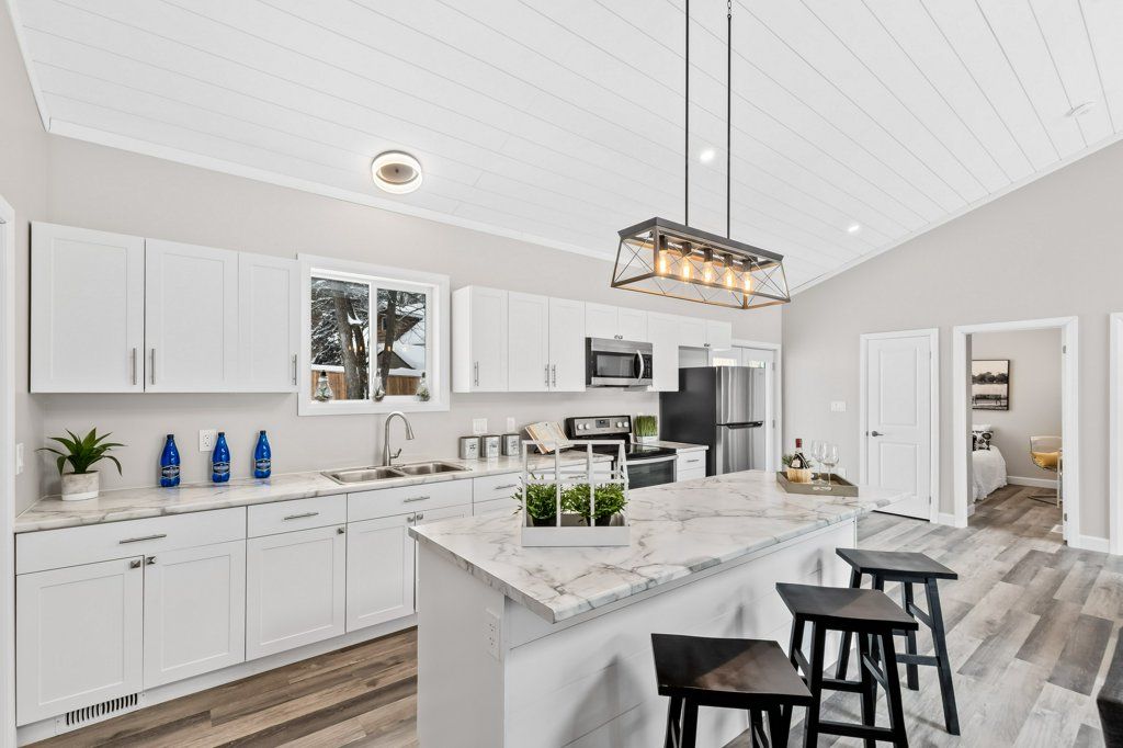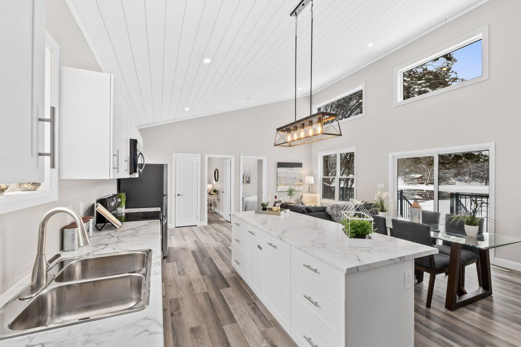 Luxurious 4 season, 3 bedroom home on the Crowe River. This outstanding property has been completely rebuilt from top to bottom in 2022. Offering an open concept design with soaring cathedral ceilings, expansive river views, and an abundance of natural light. Walkout to the large deck to enjoy your morning coffee. Located in a bay, with much calmer waters than many areas on the river, providing excellent swimming with wade in sandy bottom waterfrontage, or dive in off the new dock. Take advantage of the boat launch right down the road. The level lot allows for a great area to have a bonfire or activities. 2 exterior buildings could be used for storage or bunkies for guests. Enjoy the conveniences of this extremely low maintenance cottage with all amenities a short drive away. Nothing to do here but relax and enjoy!