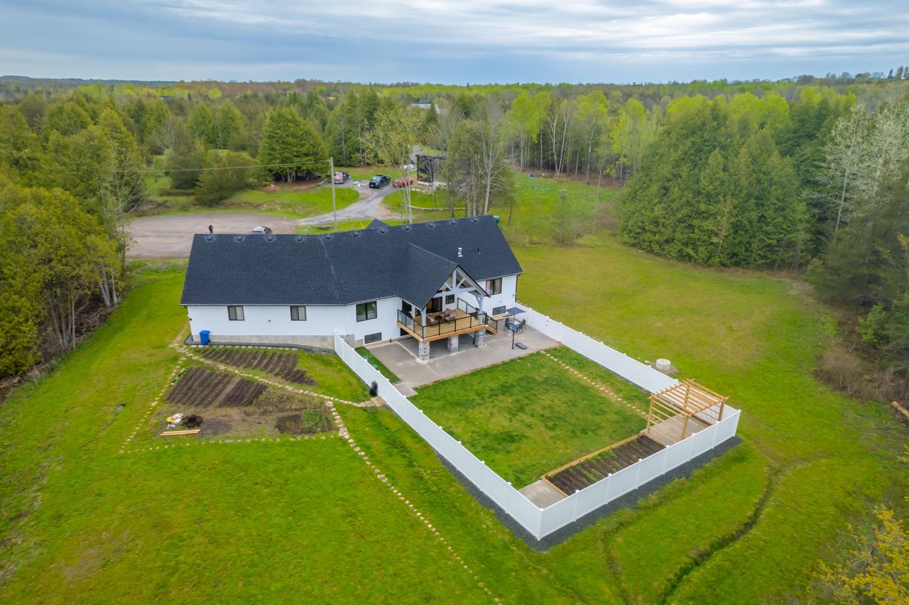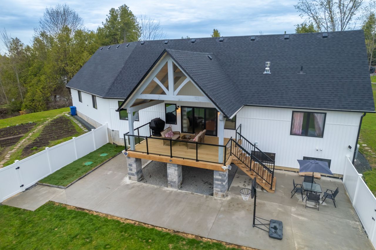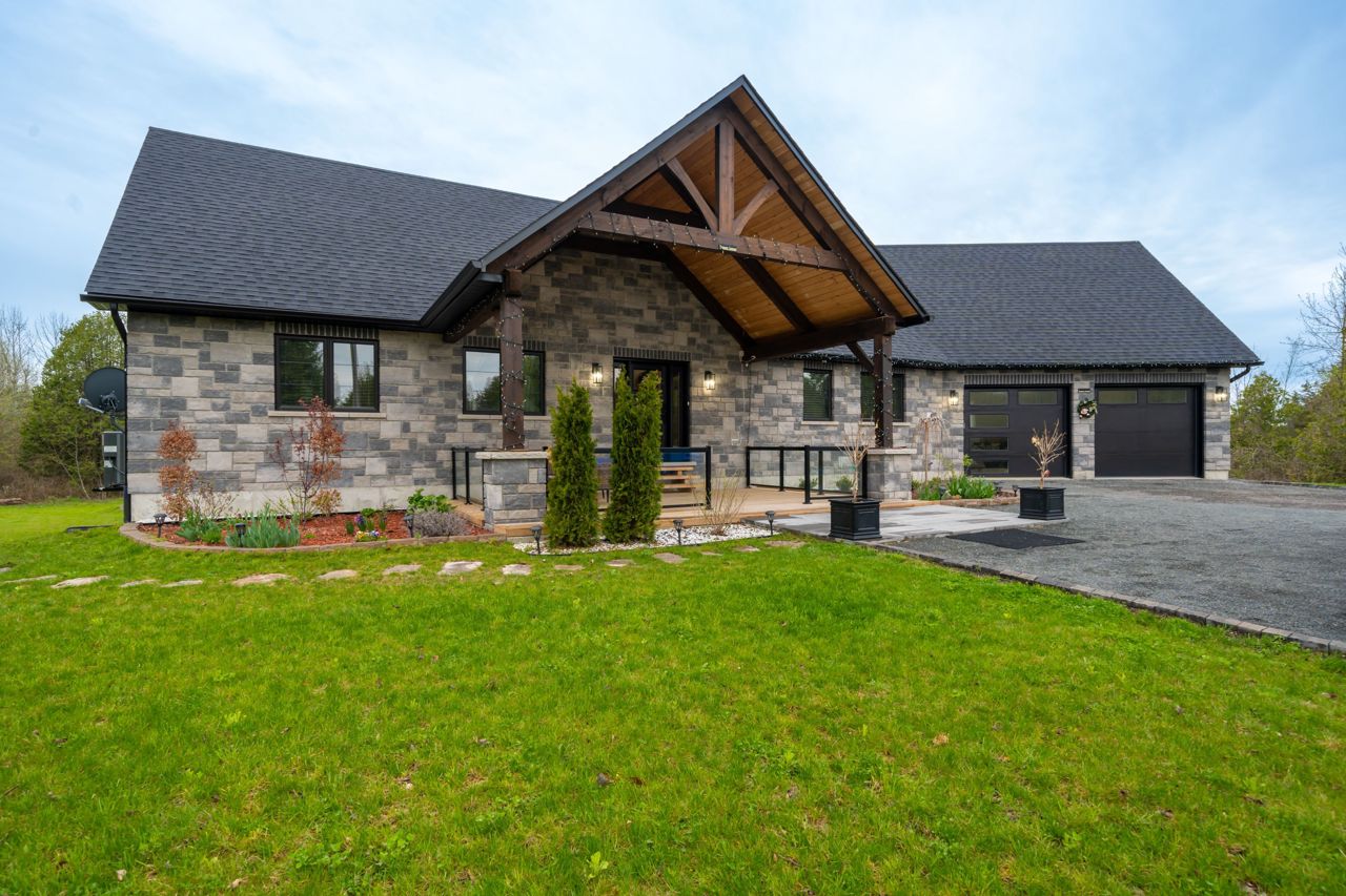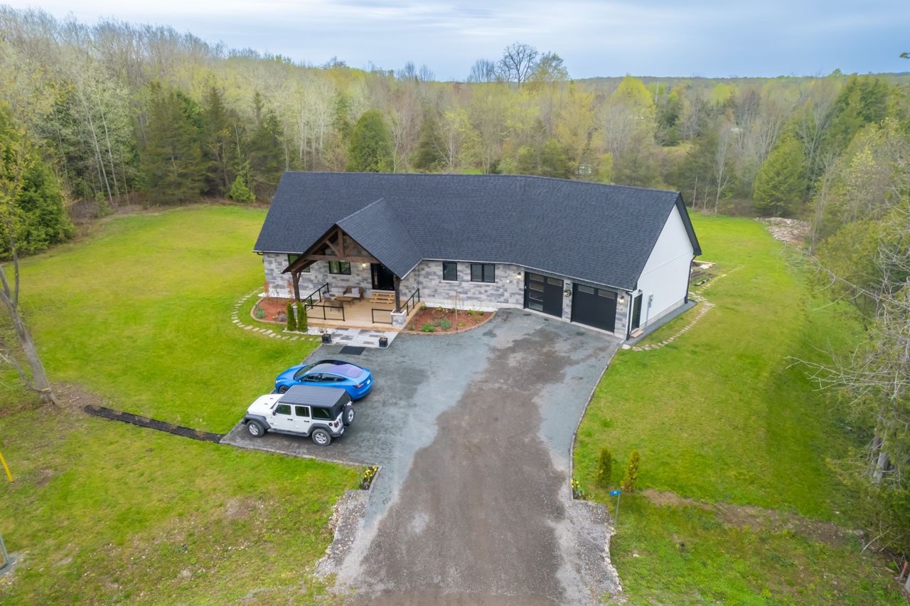 STUNNING ONE AND HALF YEAR OLD CUSTOM BUILT BUNGALOW WITH 1792 SQ FT + FINISHED BASEMENT. FENCED YARD WITH WELL MAINTAINED LAWN AND LANDSCAPE. A WHITE PINE TIMBER FRAME ENTRY LEADS TO A SPACIOUS FOYER OVERLOOKING THE OPEN CONCEPT FLOOR PLAN! AN EXECUTIVE STYLE KITCHEN W/LARGE CENTRE ISLAND, WHITE QUARTZ COUNTERS, B/I PANTRY & STAINLESS STEEL APPLIANCE PACKAGE OVERLOOKS THE DINETTE WHICH OFFERS ACCESS TO THE COVERED, UPPER LEVEL DECK. A GLASS RAILING SYSTEM ALONG WITH THE MAIN FLOOR FAMILY ROOM FEATURING CUSTOM BUILT-INS & A PROPANE FIREPLACE. A LARGE PRIMARY SUITE W/5PC. ENSUITE & WALK-IN CLOSET OVERLOOKS THE COUNTRY LANDSCAPE WHILE A 2ND BED, 2 PC BATH AND EXPANSIVE MUDROOM COMPLETE THE MAIN LEVEL. THE FINISHED LOWER LEVEL ENCOMPASSES VINYL FLOORING, 3 SPACIOUS BEDROOMS, A 4 PC BATH, LARGE REC ROOM. ADDITIONAL FEATURES INCLUDED ARE A 2-CAR GARAGE (APPROX 895 SQFT),FORCED AIR PROPANE FURNACE, CENTRAL AIR, HRV, INSUATED GARAGE DOORS, POT LIGHTING, 200 AMP SERVICE, CUSTOM CABINETRY IN THE LAUNDRY ROOM & POT LIGHTING. OFFERING INCREDIBLE VALUE IN A BEAUTIFUL RURAL LOCATION.