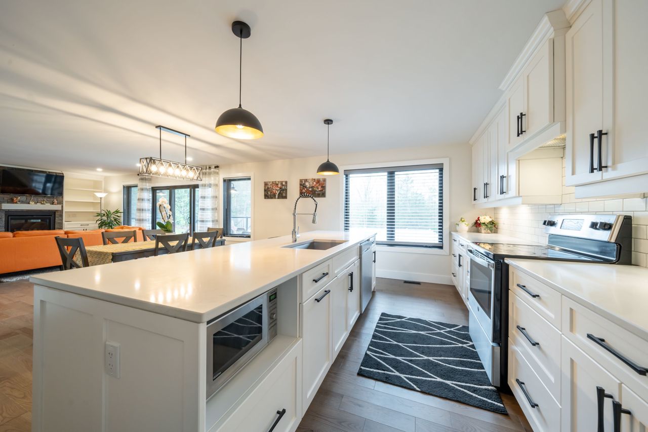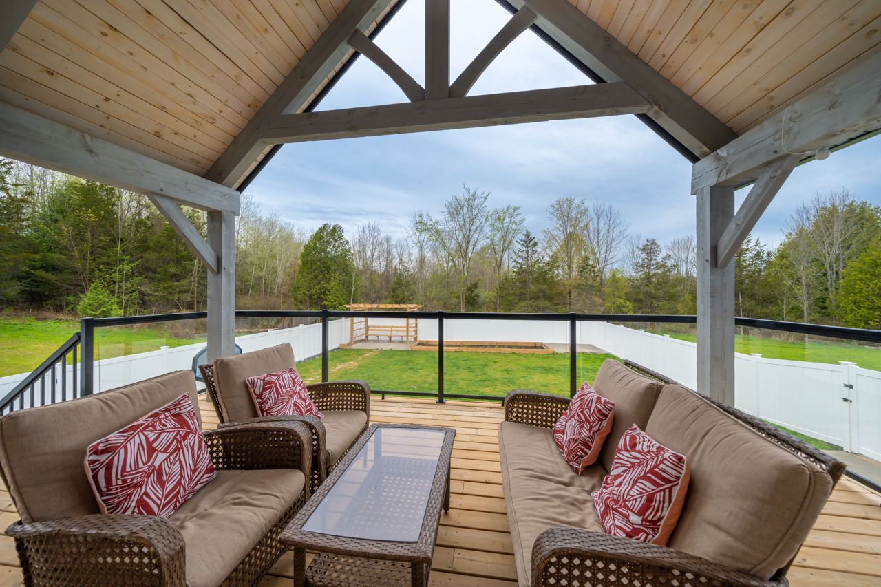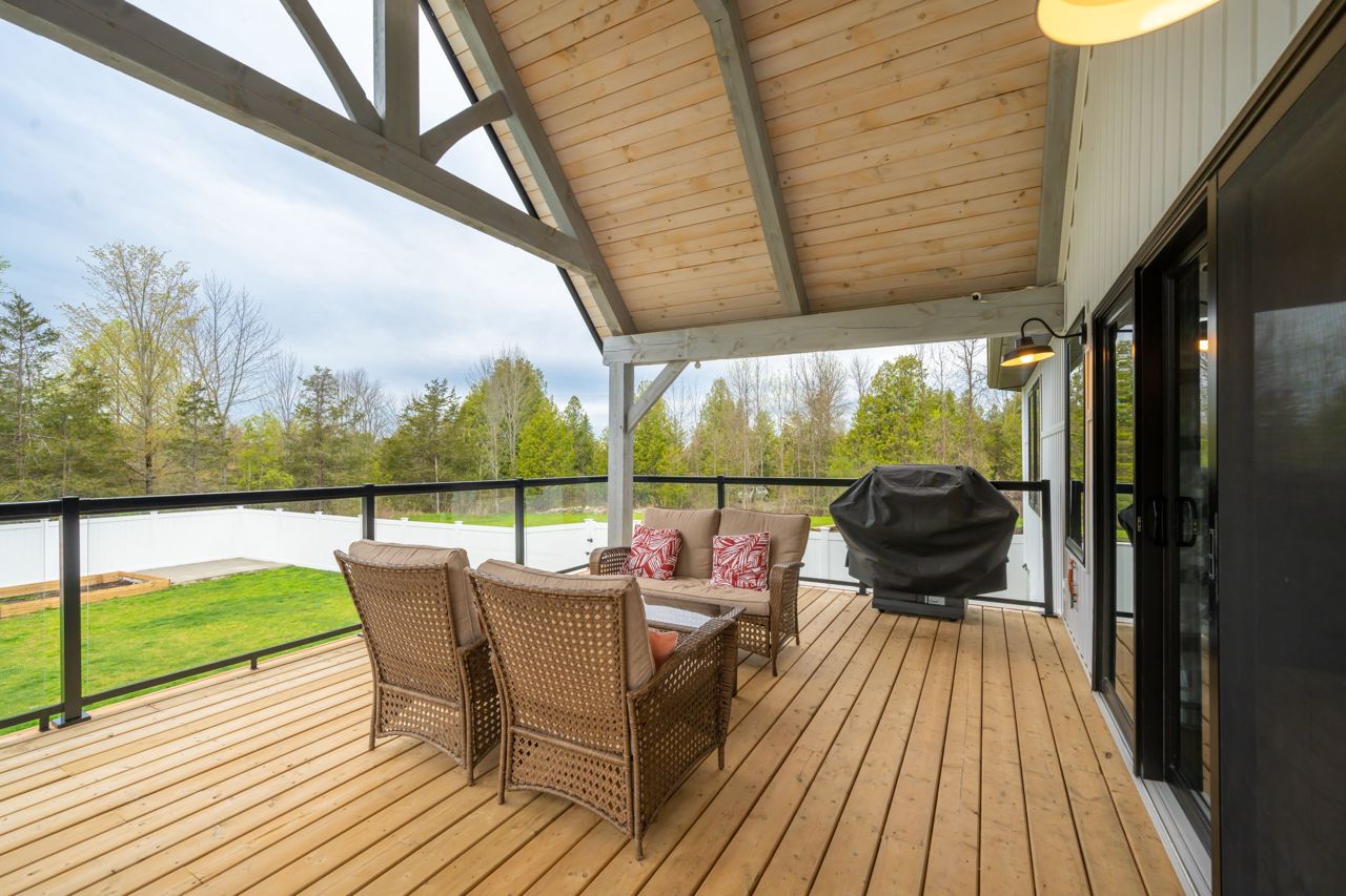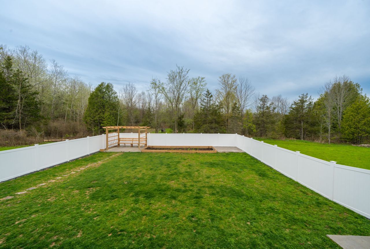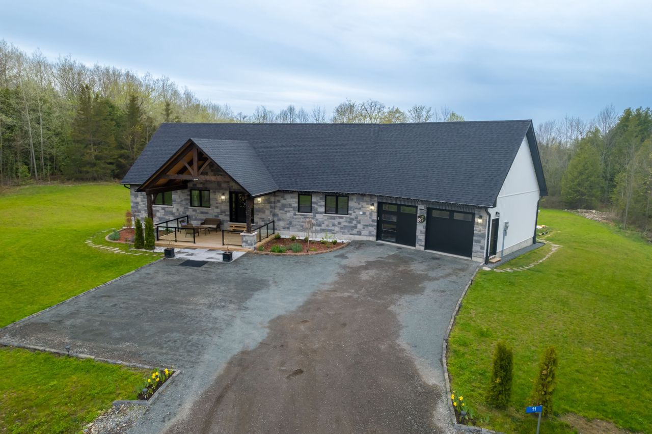 STUNNING ONE AND HALF YEAR OLD CUSTOM BUILT BUNGALOW WITH 1792 SQ FT + FINISHED BASEMENT. FENCED YARD WITH WELL MAINTAINED LAWN AND LANDSCAPE. A WHITE PINE TIMBER FRAME ENTRY LEADS TO A SPACIOUS FOYER OVERLOOKING THE OPEN CONCEPT FLOOR PLAN! AN EXECUTIVE STYLE KITCHEN W/LARGE CENTRE ISLAND, WHITE QUARTZ COUNTERS, B/I PANTRY & STAINLESS STEEL APPLIANCE PACKAGE OVERLOOKS THE DINETTE WHICH OFFERS ACCESS TO THE COVERED, UPPER LEVEL DECK. A GLASS RAILING SYSTEM ALONG WITH THE MAIN FLOOR FAMILY ROOM FEATURING CUSTOM BUILT-INS & A PROPANE FIREPLACE. A LARGE PRIMARY SUITE W/5PC. ENSUITE & WALK-IN CLOSET OVERLOOKS THE COUNTRY LANDSCAPE WHILE A 2ND BED, 2 PC BATH AND EXPANSIVE MUDROOM COMPLETE THE MAIN LEVEL. THE FINISHED LOWER LEVEL ENCOMPASSES VINYL FLOORING, 3 SPACIOUS BEDROOMS, A 4 PC BATH, LARGE REC ROOM. ADDITIONAL FEATURES INCLUDED ARE A 2-CAR GARAGE (APPROX 895 SQFT),FORCED AIR PROPANE FURNACE, CENTRAL AIR, HRV, INSUATED GARAGE DOORS, POT LIGHTING, 200 AMP SERVICE, CUSTOM CABINETRY IN THE LAUNDRY ROOM & POT LIGHTING. OFFERING INCREDIBLE VALUE IN A BEAUTIFUL RURAL LOCATION.