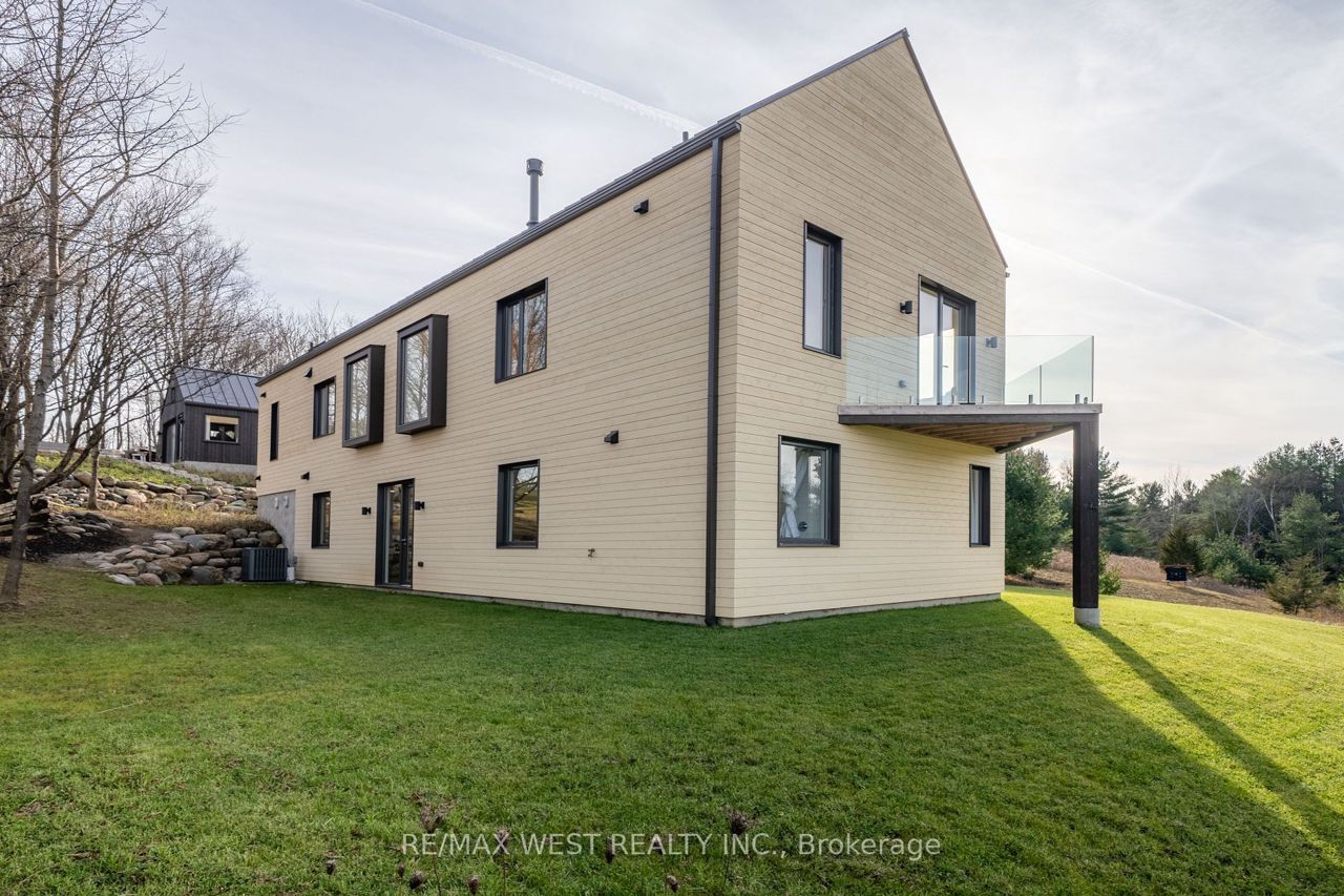 Tranquility Is Yours With This Modern Family Home Surrounded By Nature Yet Minutes To Town And A Short 90 Minute Drive Into Toronto. 9 Foot Ceilings, A Second Suite Downstairs, Loft Style Bedroom, 3 Sided Glass Dining Room, Multiple Patios, A Bridge, Cathedral Ceilings, Fireplace And Built In Shelves, Walk In Pantry Are Just A Few Of The Features In This Modern Barn-Style Home Situated On A Hilly 1.89-Acre Lot, A Custom Kitchen, Featuring Large Cabinet Space, A 10Ft Quartz Island, Stainless Steel Appliances And Pen Concept Must Be Seen. Landscaped Yard With Garage On A Paved Road Has Something For Everyone. This Gem Must Be Seen.