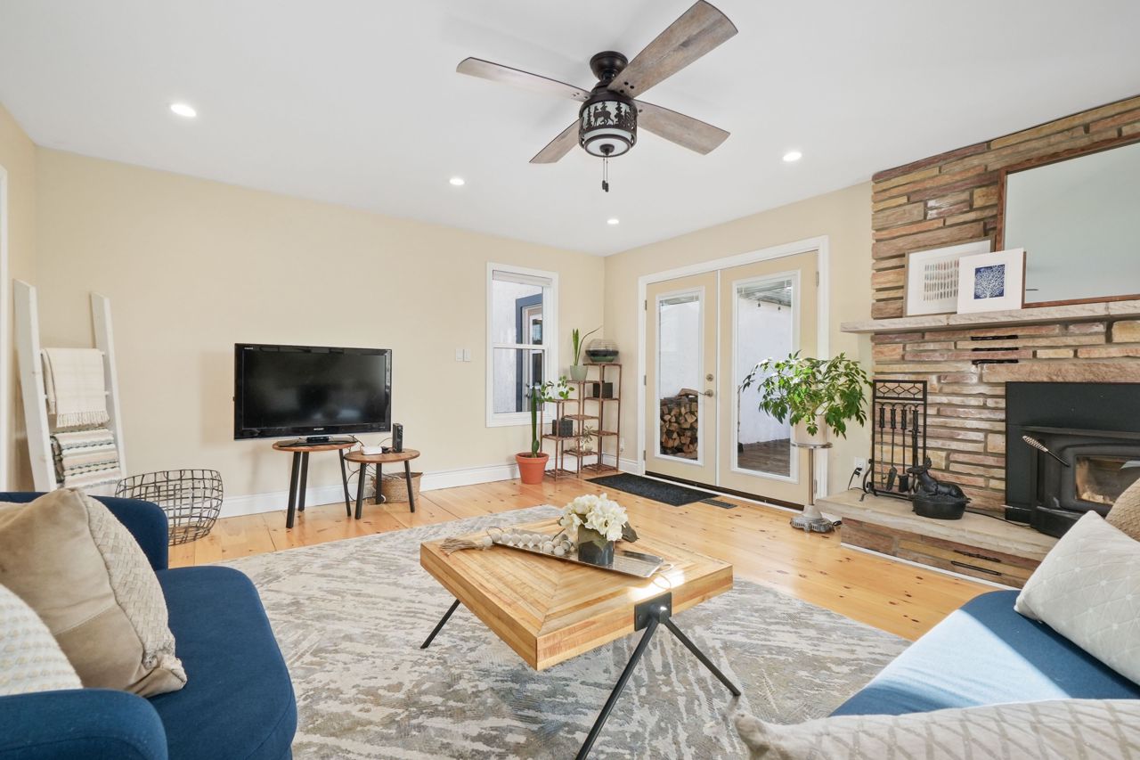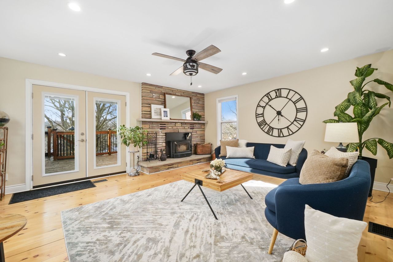 This meticulously maintained home situated in the heart of Campbellford. Graced with 3 bedrooms & 1.5 bathrooms, this home exudes modern comfort and timeless allure. The bright living room features a wood fireplace, seamlessly connecting to a newly constructed deck that overlooks a meticulously landscaped yard. A generously sized dining room adds to the elegance of the main level as well as main floor bedroom/office. The upper floor hosts two spacious bedrooms and a spa-like bathroom. A main floor mudroom, incorporating laundry facilities and a powder room, enhances the home's functionality. The walk-out basement introduces a versatile recreation room, providing an addition layer of living space. The residence effortlessly combines convenience and tranquility, being within walking distance to amenities and in close proximity to the hospital and picturesque Trent River. The detached 2-story, 2 bay garage further complements the property's aesthetics and functionality.See feature sheet for upgrades