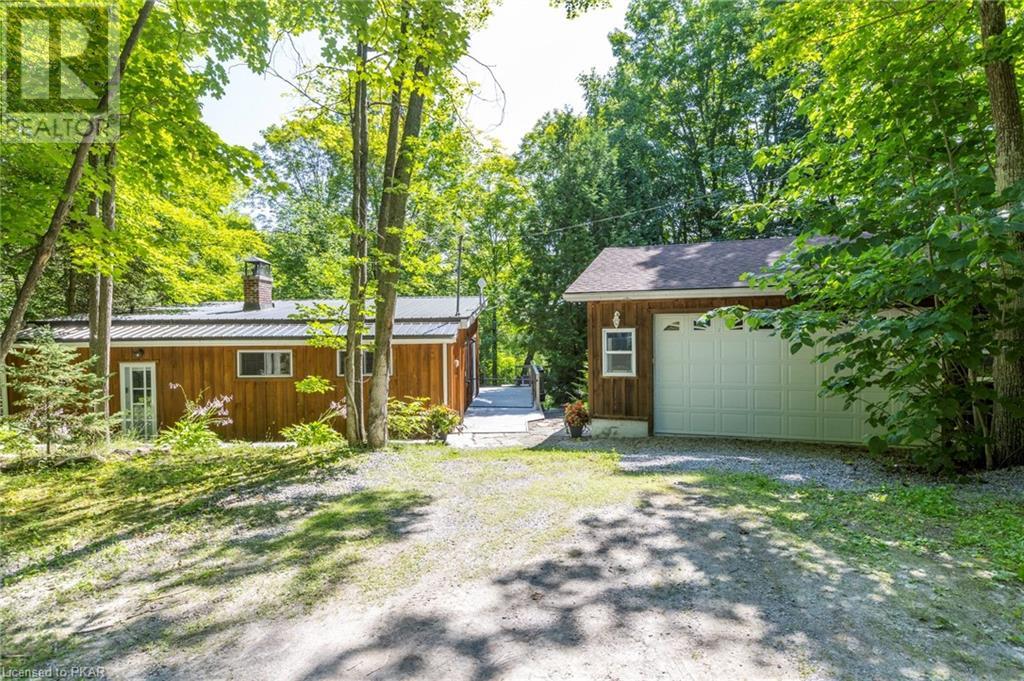 This fabulous 4 season waterfront home with 3 bedrooms/2 washrooms and a double car garage is a Gem. Situated on treed & cleared .84 acre near Buckhorn. An inviting & tastefully decorated open concept cottage/home with living space overlooking meandering decking, screened in gazebo, a quaint flagstone patio, spacious backyard & a gorgeous view of the lake. Watch morning sunrises from your deck! Main floor consists of 2 bedrooms, a 4 piece washroom, kitchen with an island, gas stove & lots of cupboard space. The living room and kitchen have large windows presenting privacy & a beautiful lake view. Located between the kitchen & living room is a woodstove to cozy up to after walks, snowshoeing or skating on the lake in winter. The lower functions as a bedroom or rec room. Outside the lower entrance door, there is a separate entrance to 2 rooms. The first room allows privacy for a gaming room, man cave, craft room & a door from this room leads to the mechanical room. The main driveway can host 3 vehicles & has a detached double size insulated garage. Second driveway at side of property. The property is large enough to host family gatherings & setting up lawn games. The armour stone waterfront has been enjoyed by the present owner with swimming & skiing from the dock & fishing. Close to Buckhorn, restaurants, golf, river tubing, Sandy Lake beach and more. Private road: presently $150 for plowing. (id:22211)