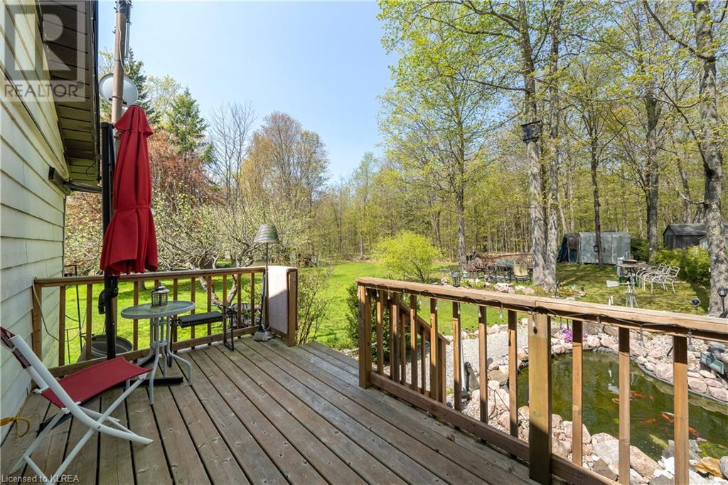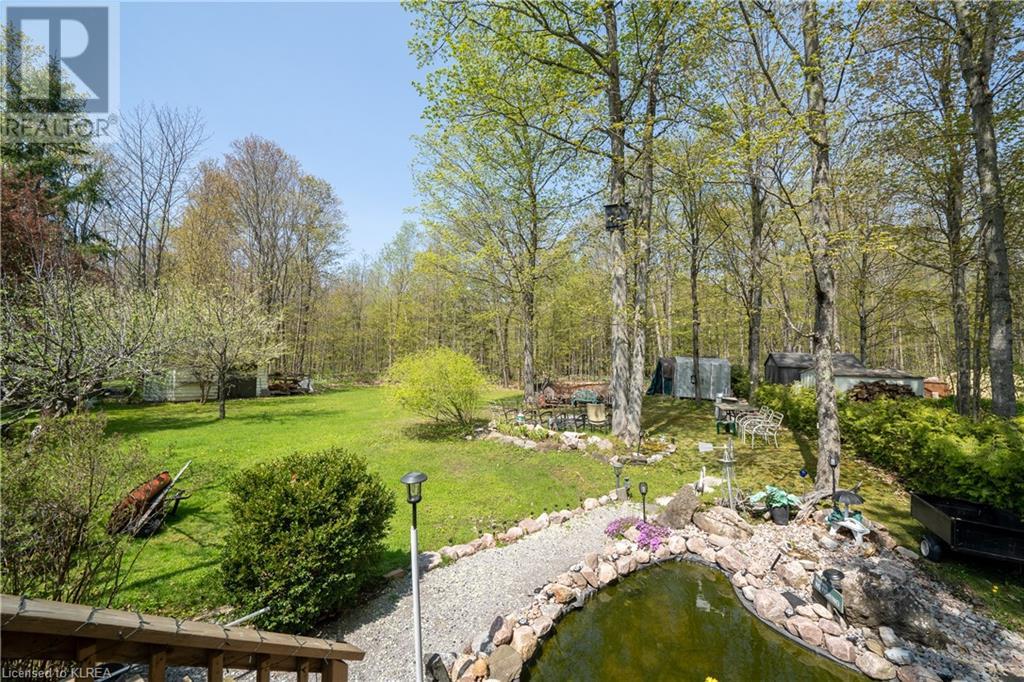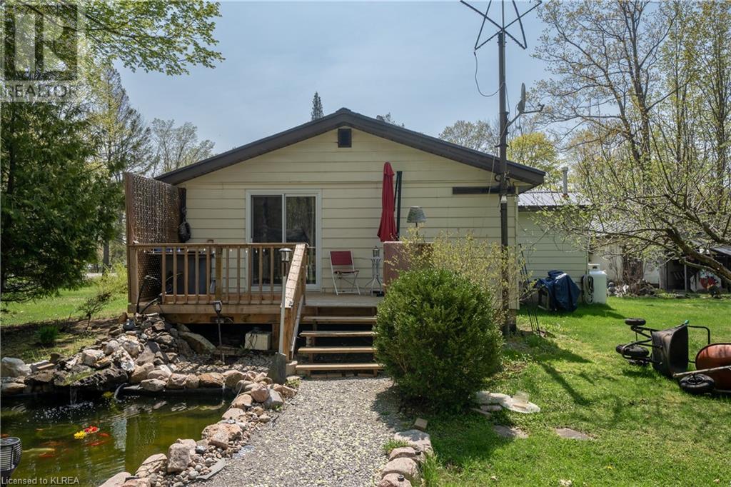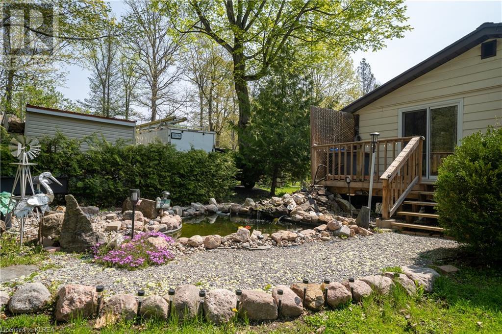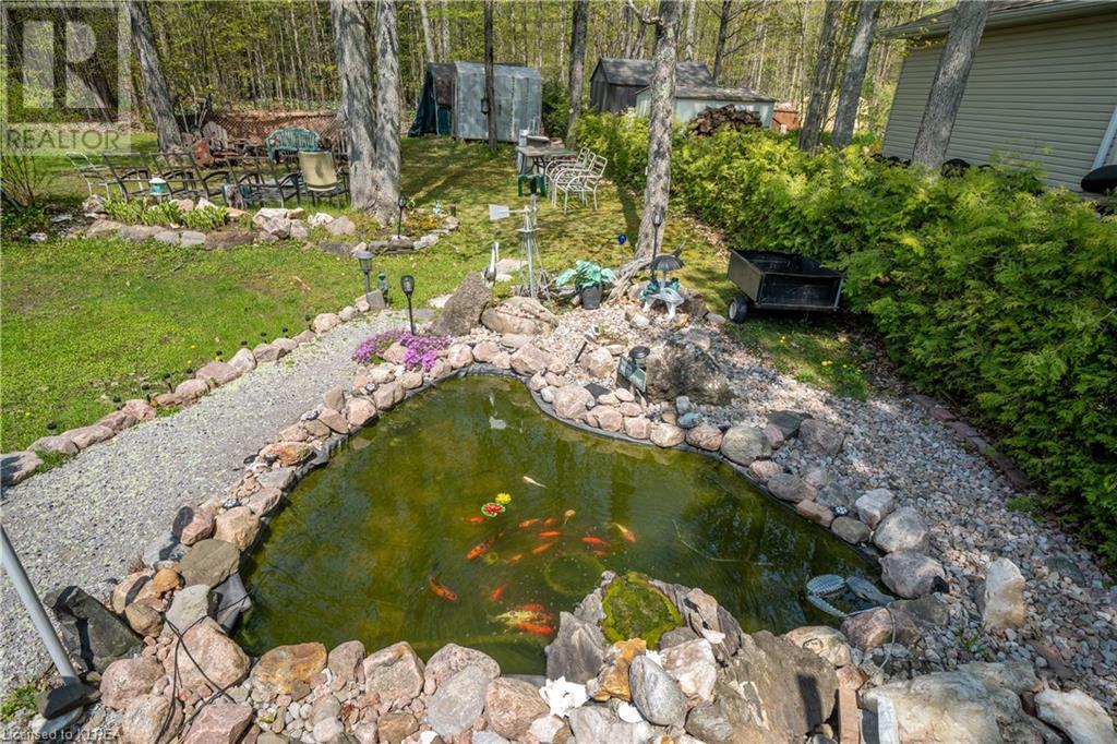 PERFECTLY CHARMING COUNTRY HOME ON LARGE 0.46 ACRES CLOSE TO LITTLE BALD LAKE - Welcome home to this well-loved & maintained 2 bedroom, 1 bathroom home on a wonderfully landscaped 0.46 acre lot dotted with fruit trees (apple, pear, crabapple), a backyard fishpond stocked with Koi (with pump, heater & bubbler), detached 1 car garage, plus storage sheds for all the garden tools! This property feels like coming home & is warm & relaxing. At one time this was a 3 bedroom home, but the owner decided on consolidating 2 beds into 1 to create a larger primary suite with a walk-out to the back deck overlooking the fishpond & expansive back yard. The mudroom creates a practical entry & includes laundry & sink. The kitchen with newer vinyl floors is open to the living room which is spacious yet cozy. Adjacent is the sitting room at the front of the house which is south facing so it's sun-drenched & a perfect place to relax & read a book. There is also a second entrance to the home in the sitting room as another option. Bedroom 2 has newer vinyl floors & is a perfect guest room or office. The bathroom is 4pc with new tile surround & newer flooring. On the outside, soak up all the green space which has been very well cared for & enjoy your very own garden of Eden or sit around the firepit to enjoy an evening with friends. Down the street is a marina to launch your boat. It's time to love where you live. (id:22211)
