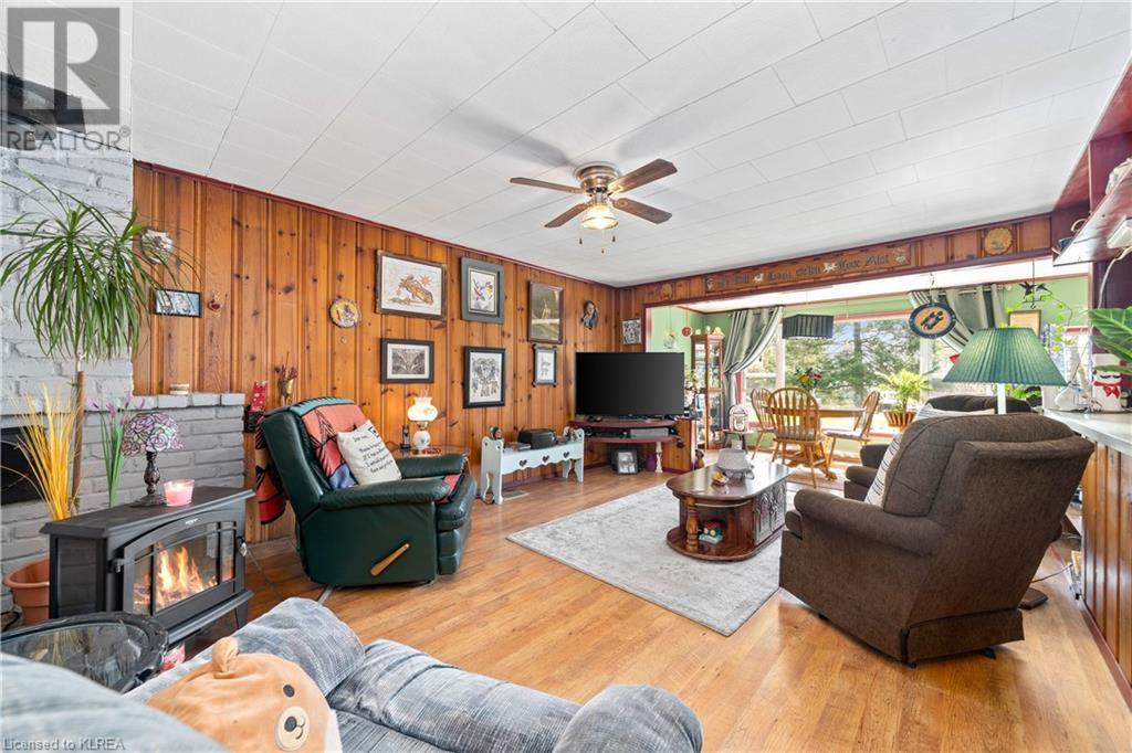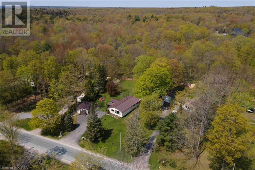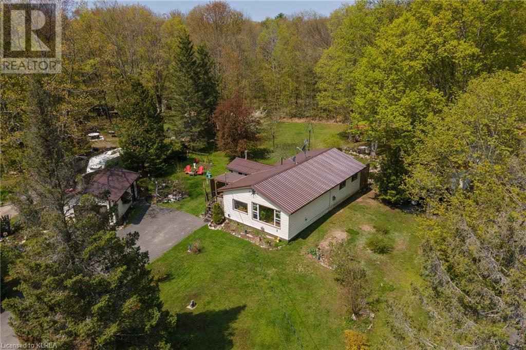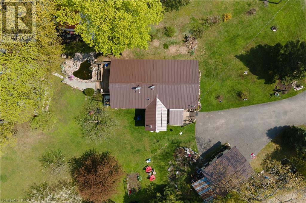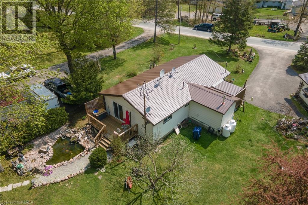 PERFECTLY CHARMING COUNTRY HOME ON LARGE 0.46 ACRES CLOSE TO LITTLE BALD LAKE - Welcome home to this well-loved & maintained 2 bedroom, 1 bathroom home on a wonderfully landscaped 0.46 acre lot dotted with fruit trees (apple, pear, crabapple), a backyard fishpond stocked with Koi (with pump, heater & bubbler), detached 1 car garage, plus storage sheds for all the garden tools! This property feels like coming home & is warm & relaxing. At one time this was a 3 bedroom home, but the owner decided on consolidating 2 beds into 1 to create a larger primary suite with a walk-out to the back deck overlooking the fishpond & expansive back yard. The mudroom creates a practical entry & includes laundry & sink. The kitchen with newer vinyl floors is open to the living room which is spacious yet cozy. Adjacent is the sitting room at the front of the house which is south facing so it's sun-drenched & a perfect place to relax & read a book. There is also a second entrance to the home in the sitting room as another option. Bedroom 2 has newer vinyl floors & is a perfect guest room or office. The bathroom is 4pc with new tile surround & newer flooring. On the outside, soak up all the green space which has been very well cared for & enjoy your very own garden of Eden or sit around the firepit to enjoy an evening with friends. Down the street is a marina to launch your boat. It's time to love where you live. (id:22211)