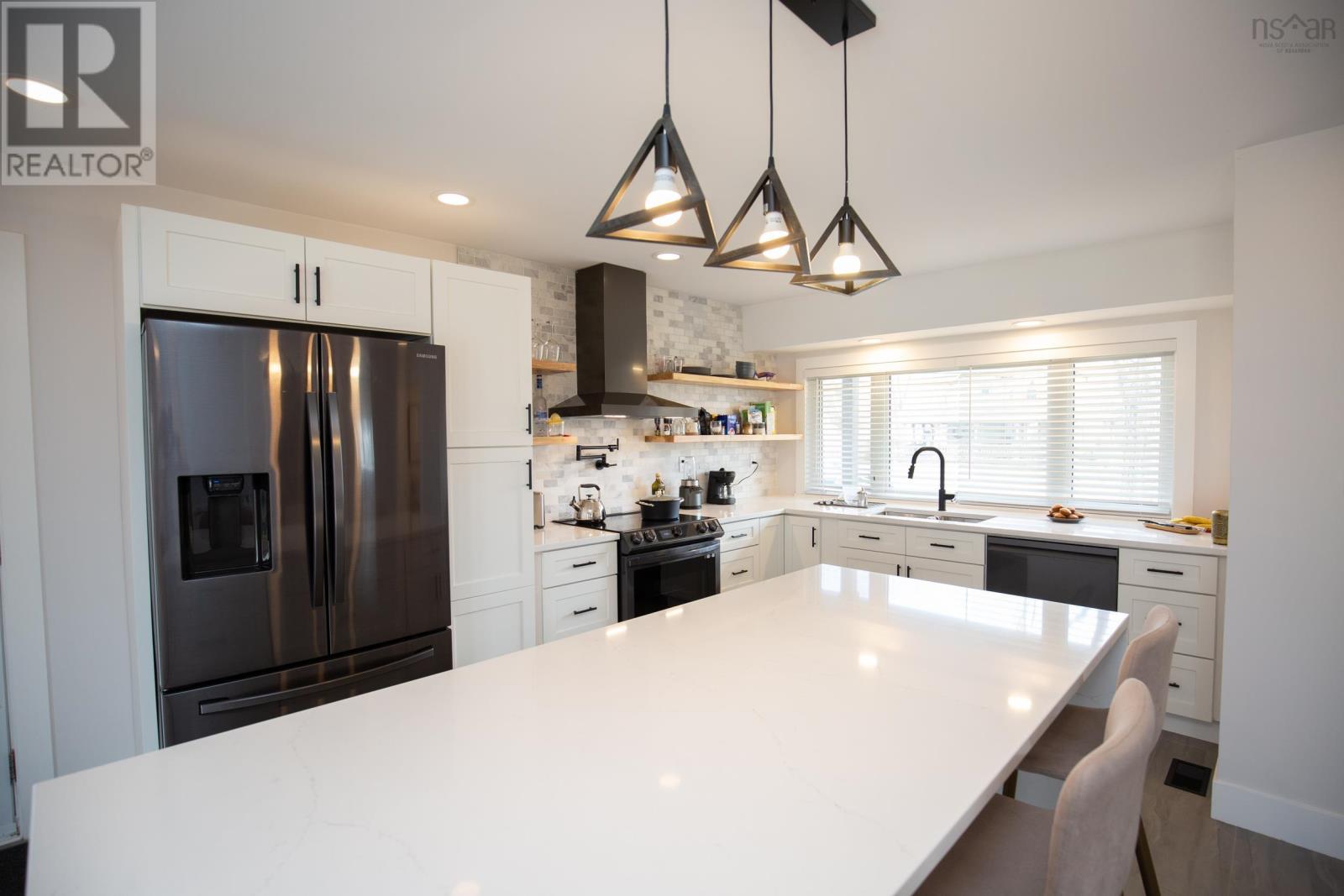 Welcome to this stunning, contemporary & newly renovated home that is available as the owner is relocating abroad. Located in one of Truro's most popular neighborhoods on Smith Avenue, this home offers convenient access to downtown's amazing shops, dining, library, civic square & is just a few minutes walk from an 18-hole Championship Golf Course. With easy access to Hwy & close proximity to Halifax, the hospital & RECC, this location is perfect for a modern lifestyle. As you approach the house, you'll notice the double paved driveway leading to the front door, illuminated by pot lights. Step into the spacious front entry with ceramic floors & coat closet. The brand new kitchen is a chef's dream, featuring a waterfall island with bar seating for 4 stools, open shelving, state-of-the-art appliances, a convenient pot filler faucet by the stove, plenty of white cabinets with black hardware & a large closet by the side entrance from the carport, perfect for bringing in groceries. The double patio doors open up to a new concrete patio & a fenced backyard. Hardwood floors flow through the open dining room & living room. Custom railings on the stairs lead to the 2nd level where you'll find the luxurious primary suite oasis, complete with a huge walk-in closet & an amazing ensuite featuring a vanity with 2 sinks, a free-standing tub & a tiled walk-in shower. The 2nd BR on this level is also spacious with 2 double lighted closets & the 3rd BR is perfect for kids or as a home office with its generous-sized closet. The 2nd full bath on this level is also newly renovated & boasts a lovely tiled walk-in shower. Downstairs, you'll find your own personal cedar-lined sauna, a large family room with a walkout to the side yard, a 4th BR & a 3-pc bath with a tiled shower. There's also a laundry area, office & utility room that houses the newly installed fibre glass oil tank & hot water tank. There is a ducted heat pump. (id:22211)